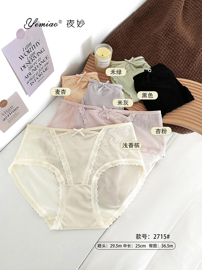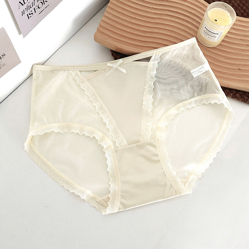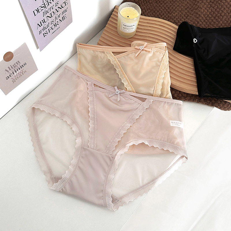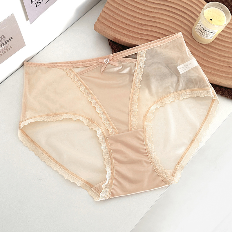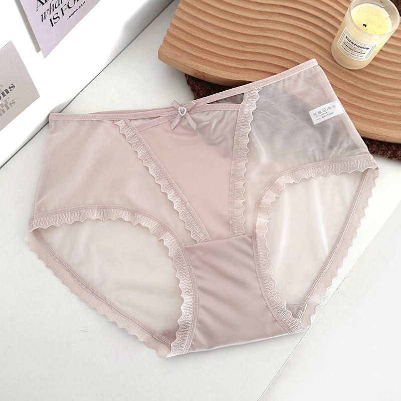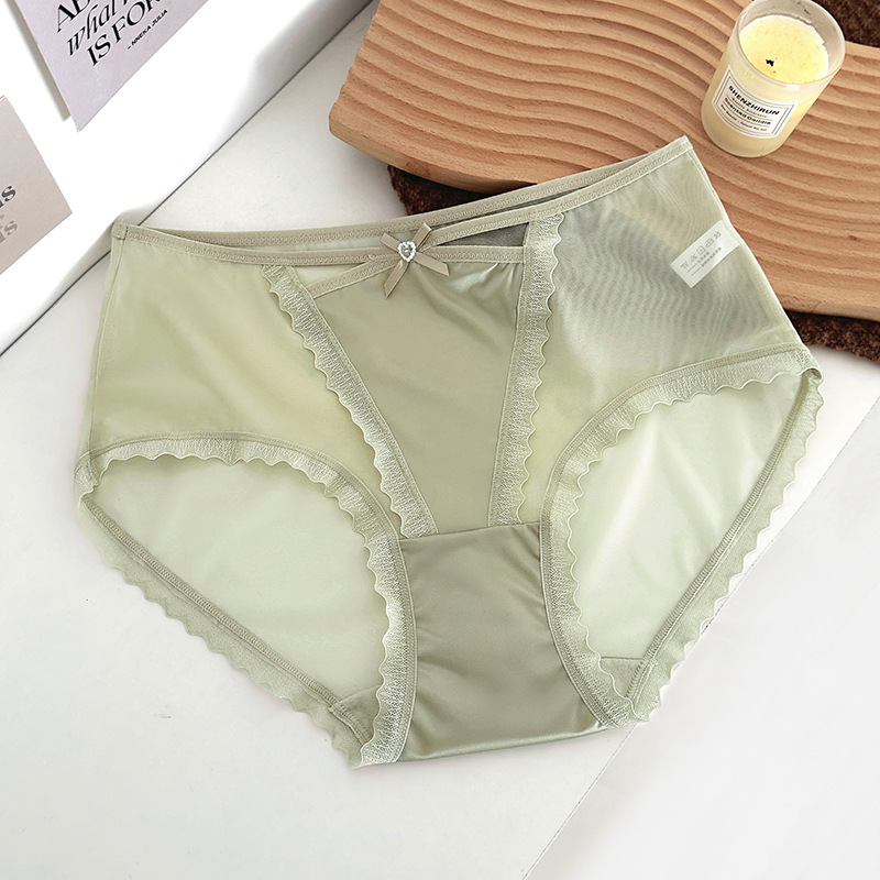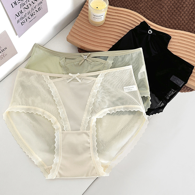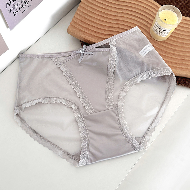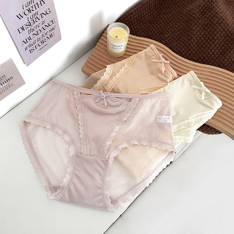 蕾丝内裤女丝滑缎面中腰性感女士内裤7a纯棉裆蕾丝女内裤