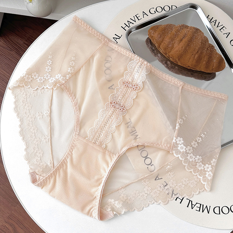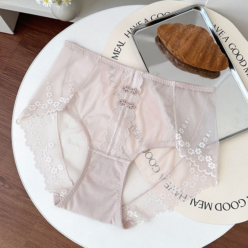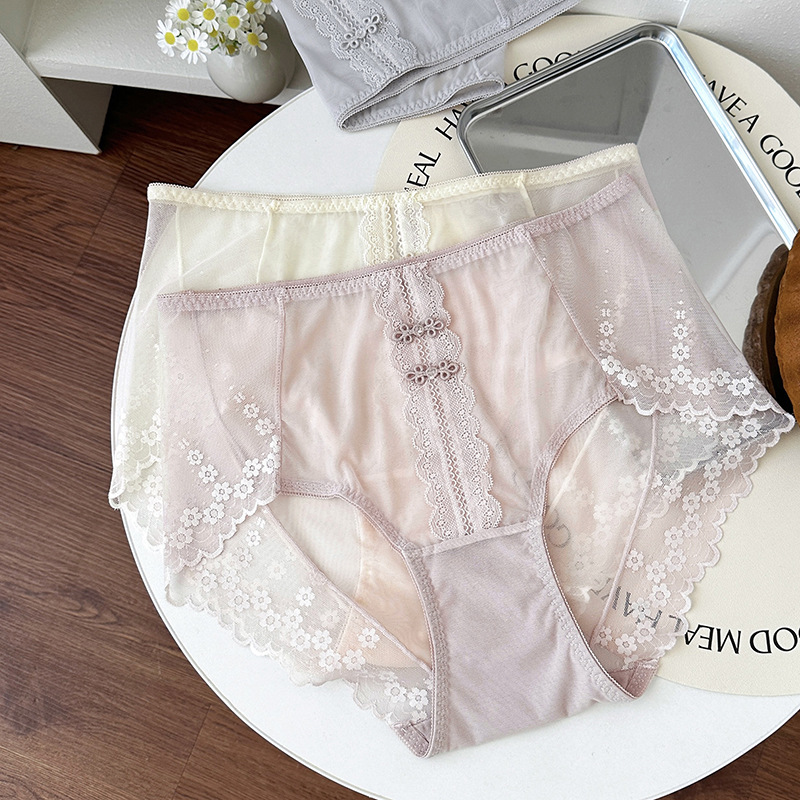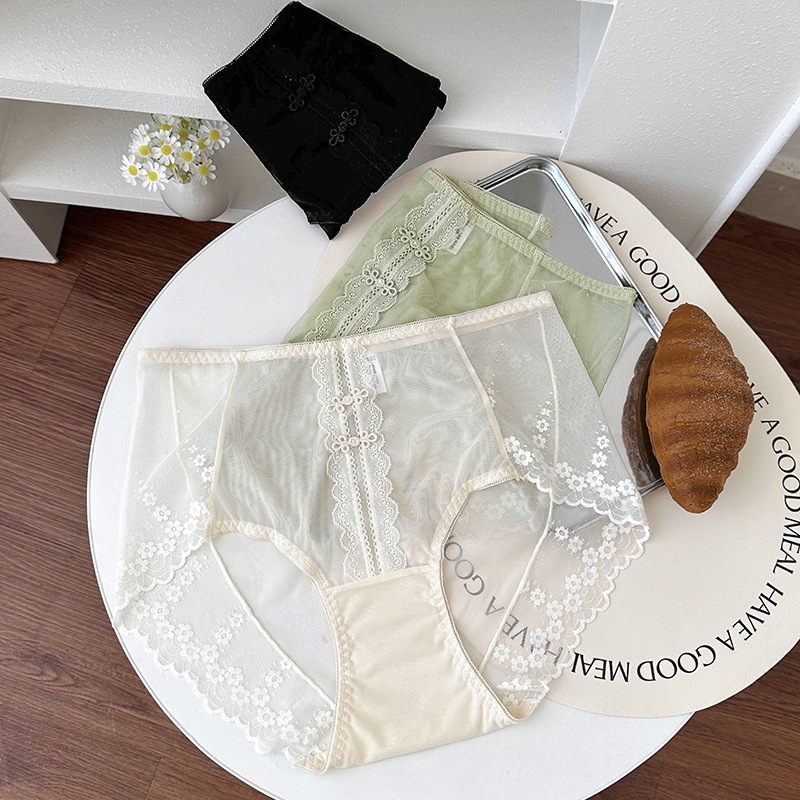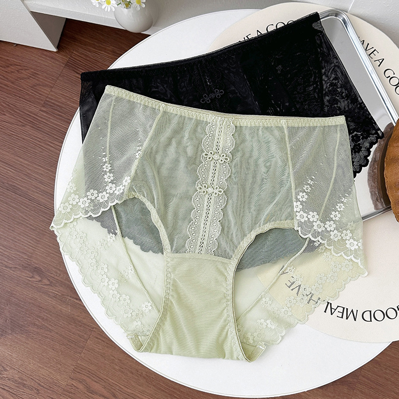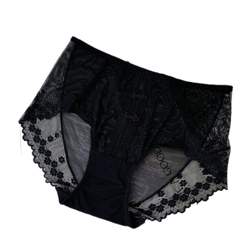 新品蕾丝内裤女中腰性感女士内裤桑蚕丝纯棉裆蕾丝纯欲女内裤大码