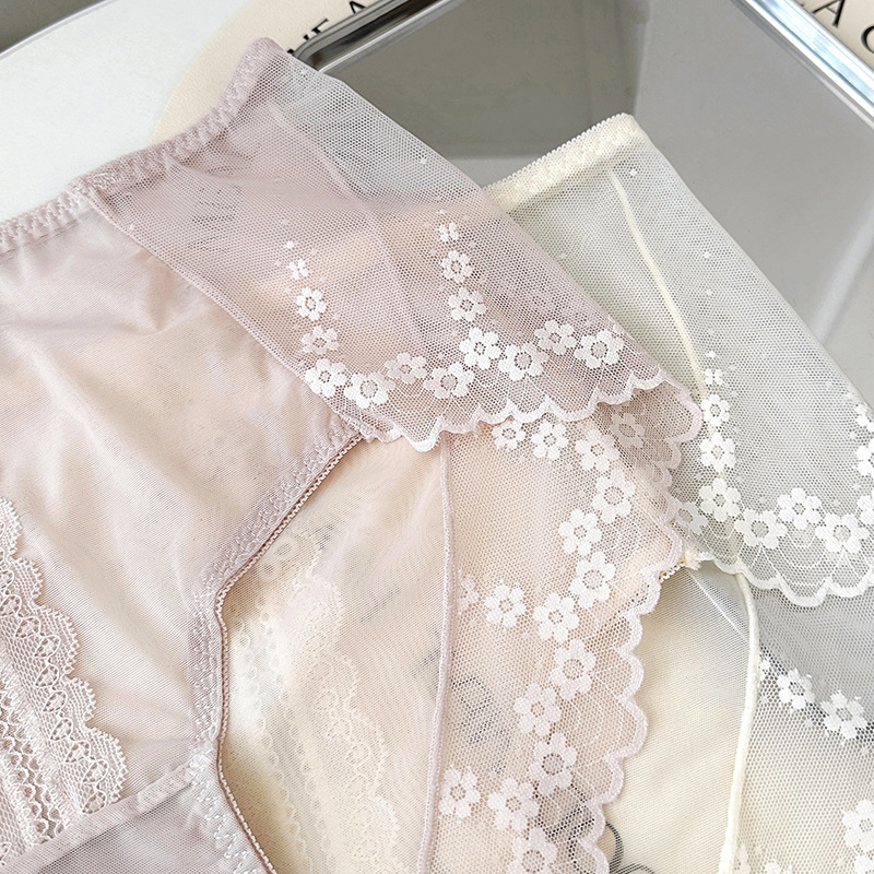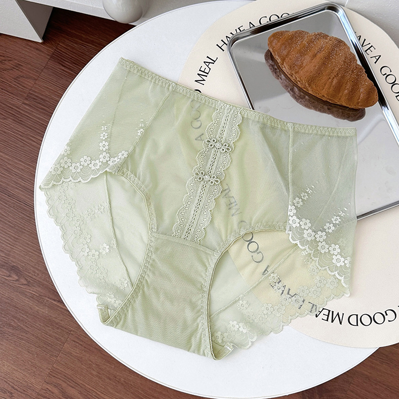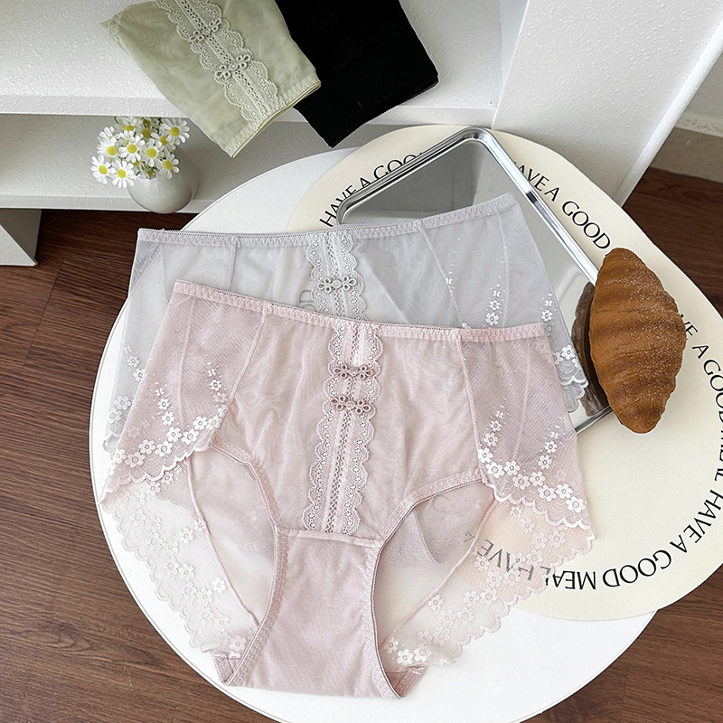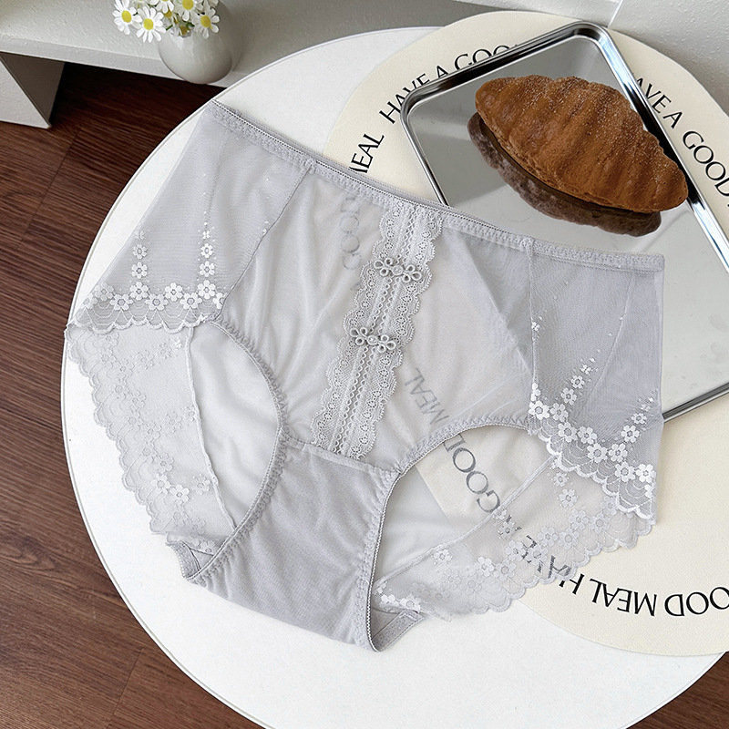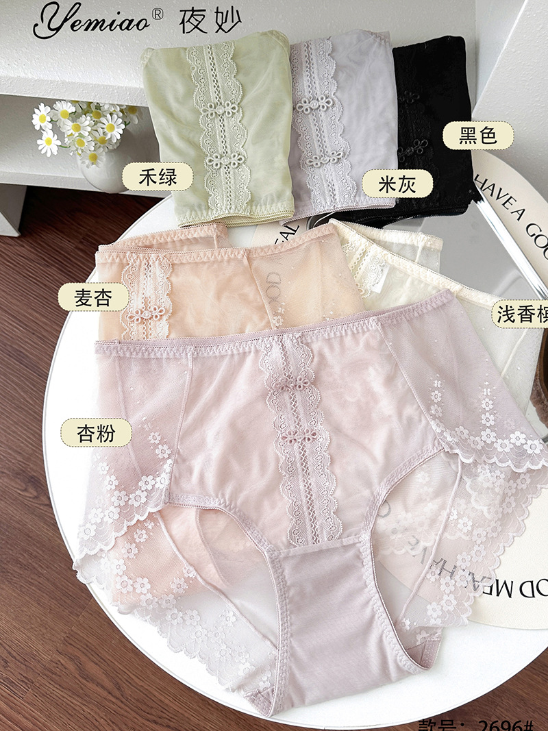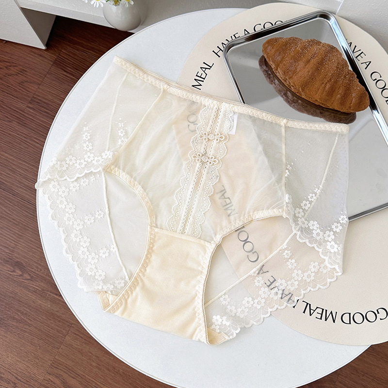 新品蕾丝内裤女中腰性感女士内裤桑蚕丝纯棉裆蕾丝纯欲女内裤大码
