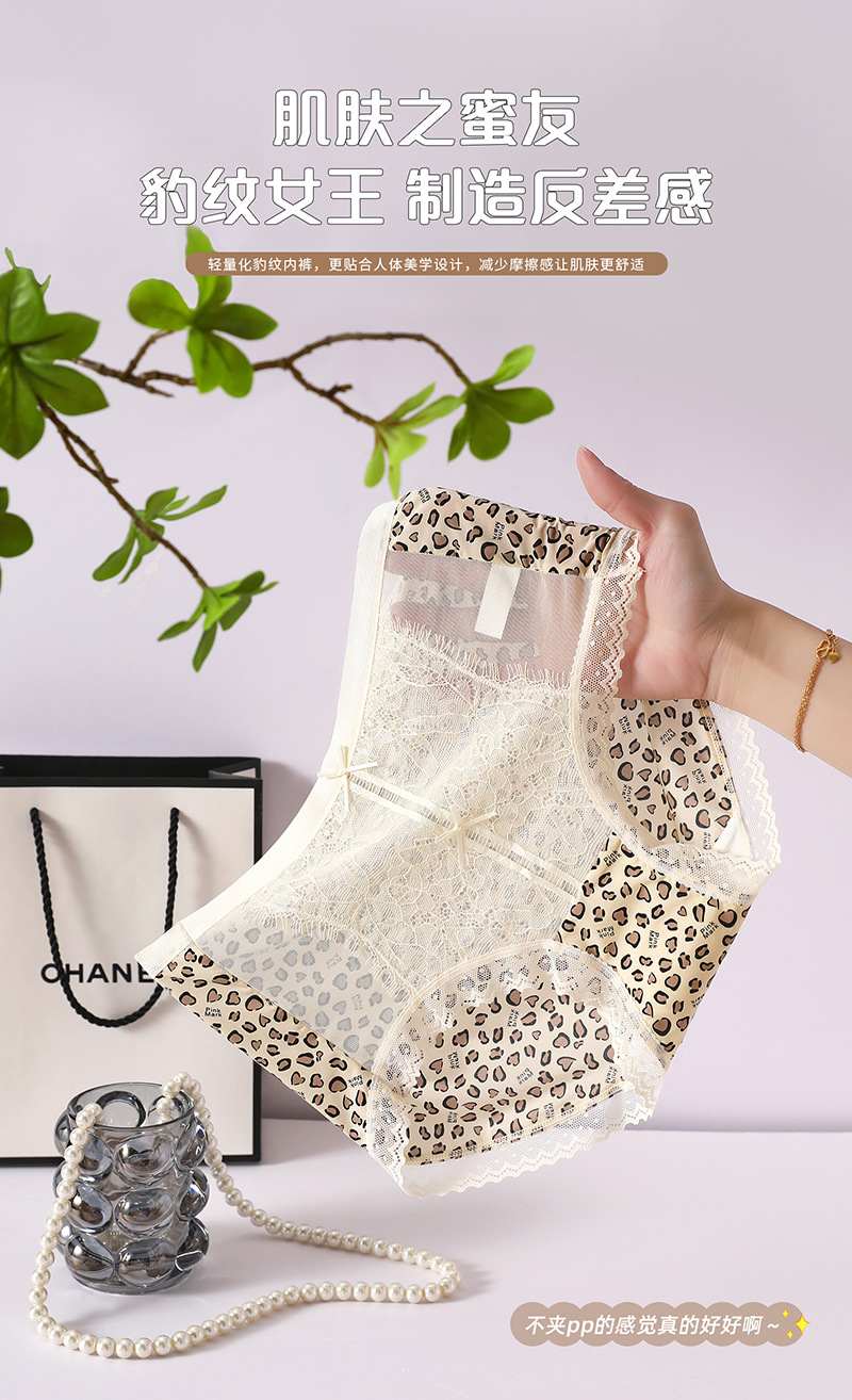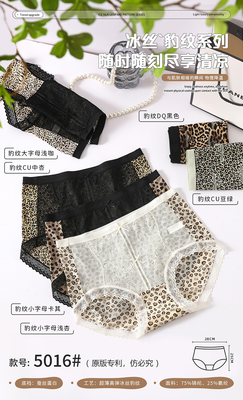 冰丝无痕内裤女火辣豹纹冰丝蚕丝蛋白女士内裤小碎花女内裤