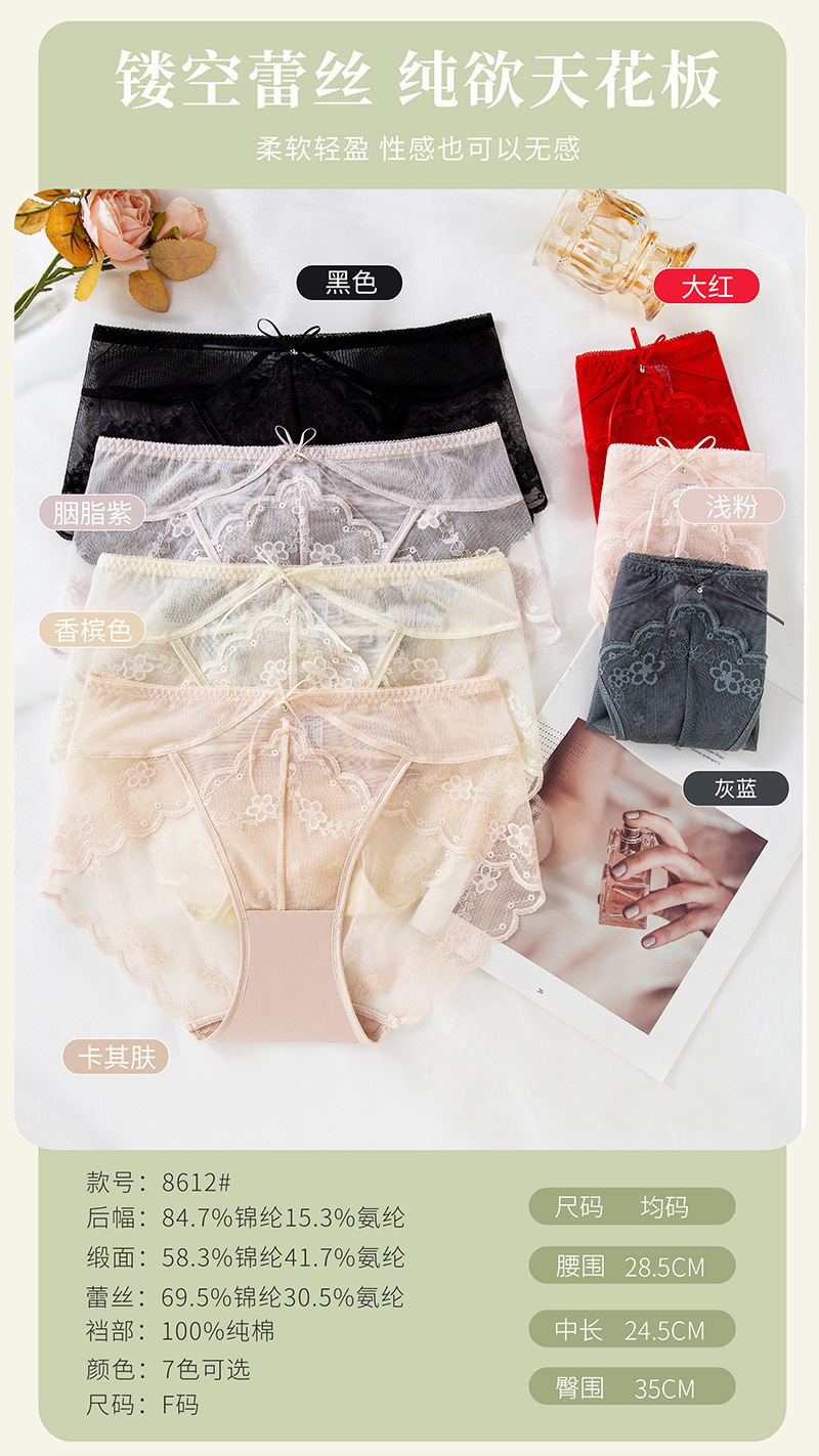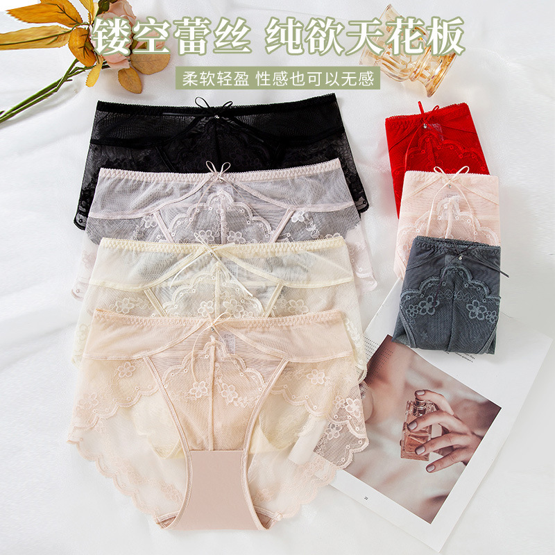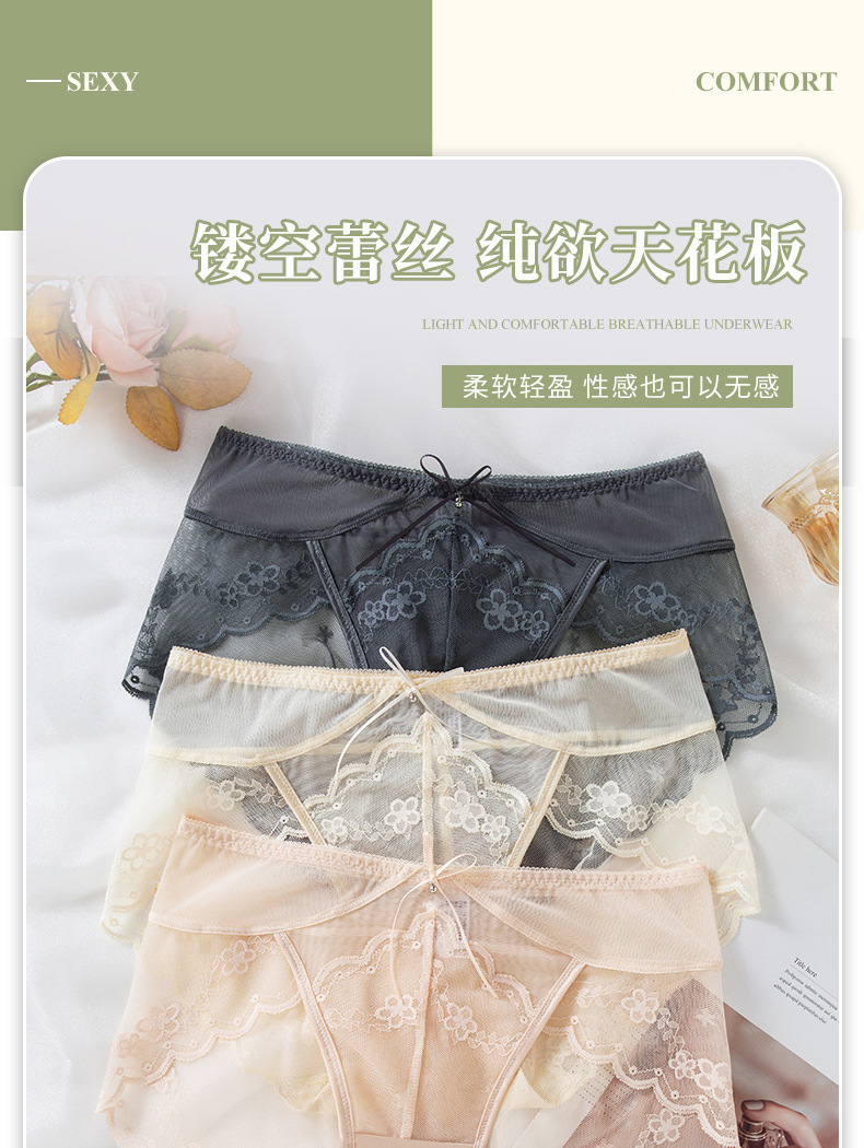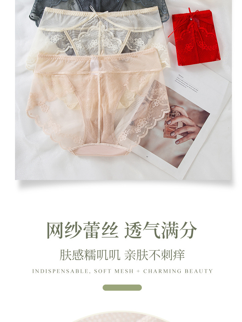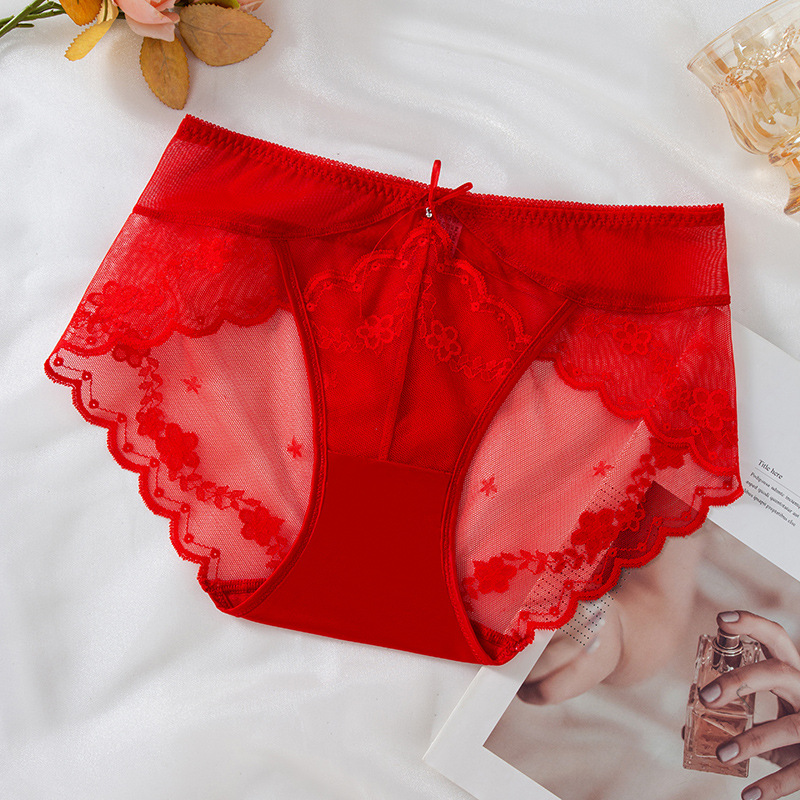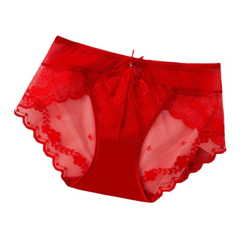蕾丝女士内裤性感中低腰无痕蕾丝内裤速干纯棉裆新品红内裤女批发