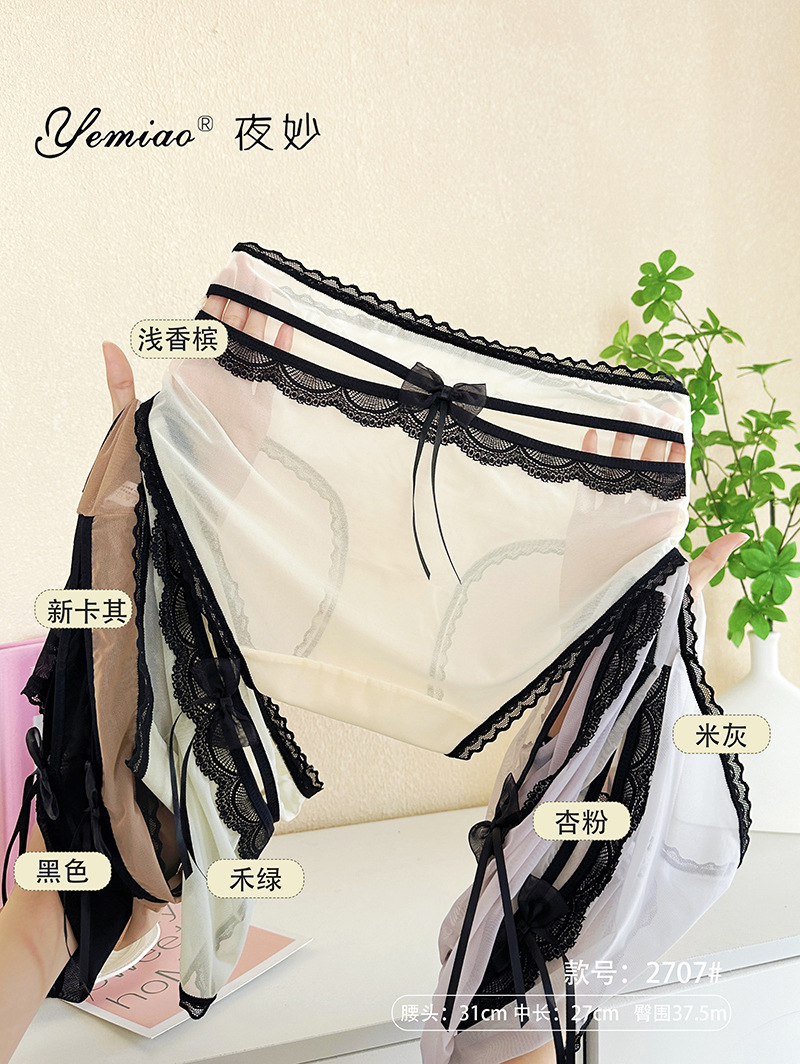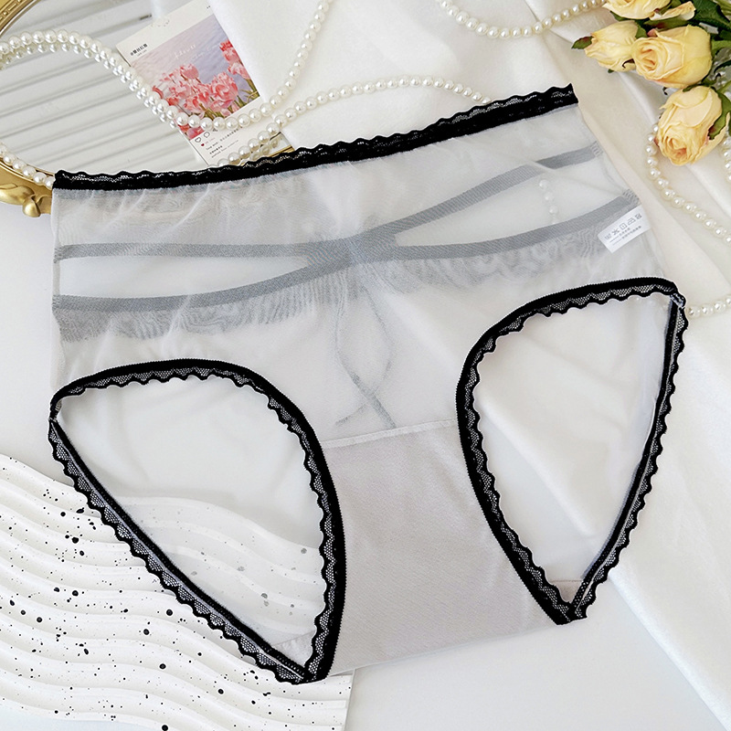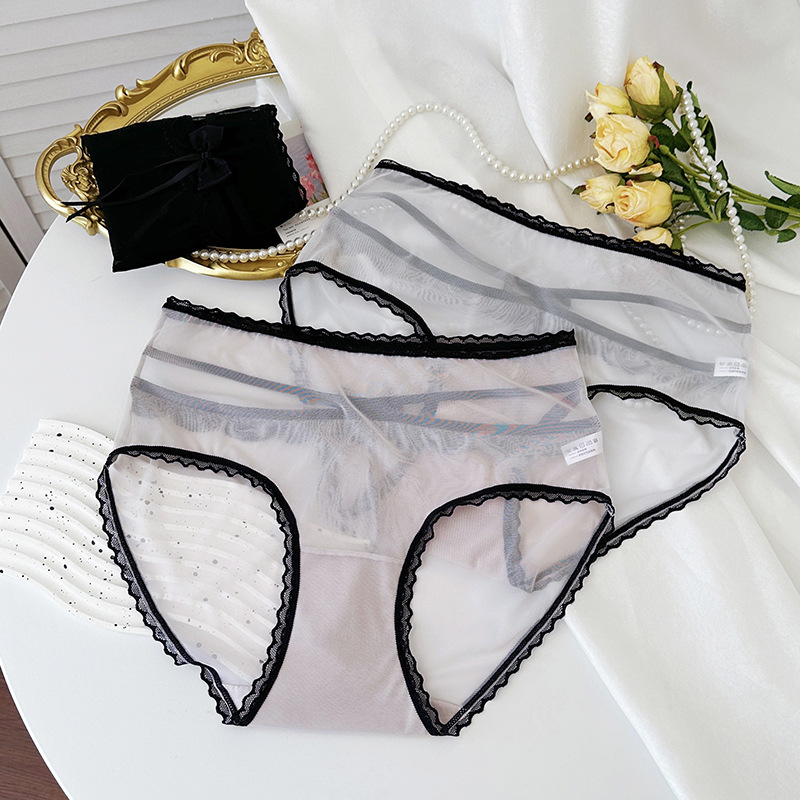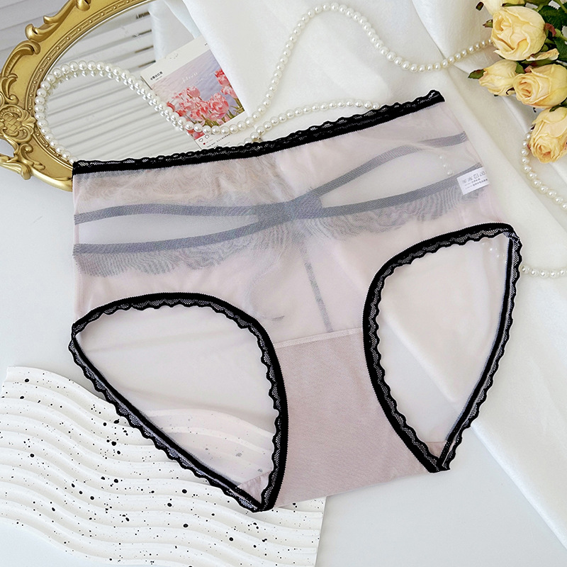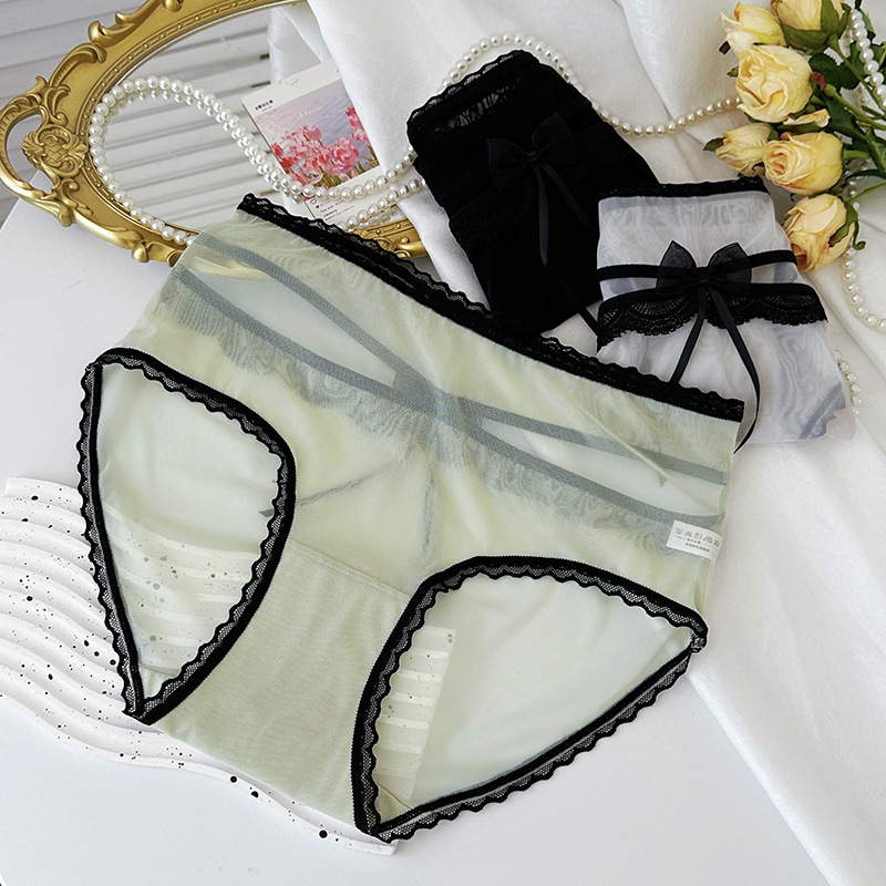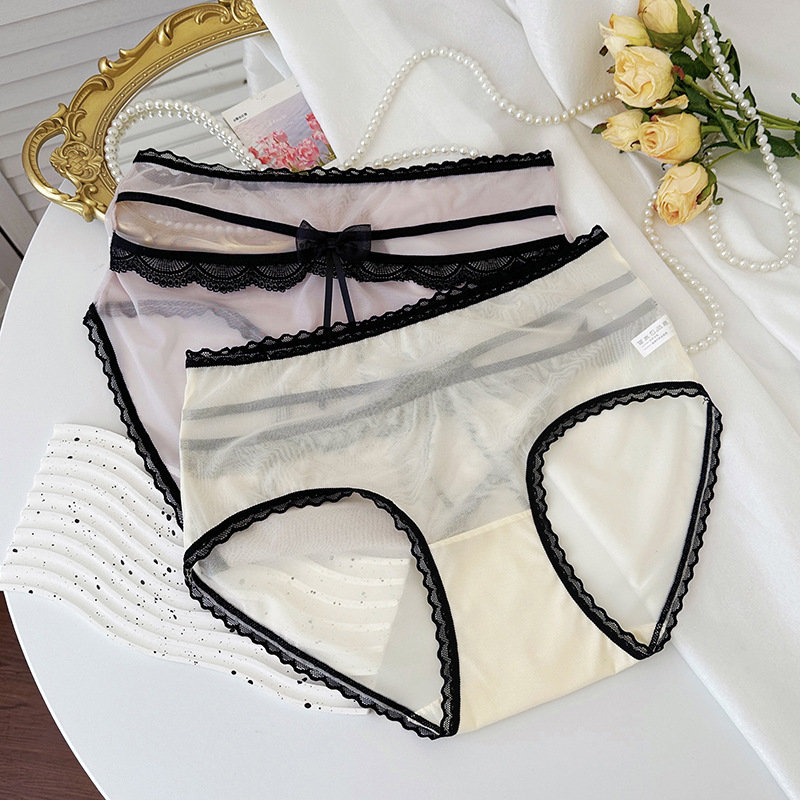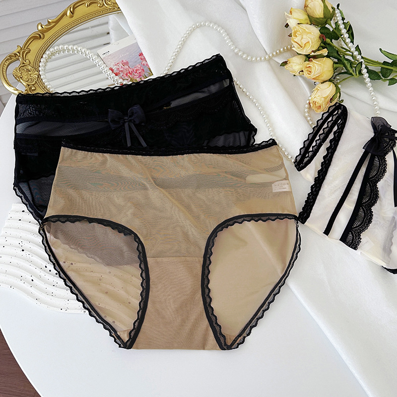 蕾丝内裤女中腰性感女士内裤桑蚕丝纯棉裆柔软蕾丝纯欲镂空女内裤