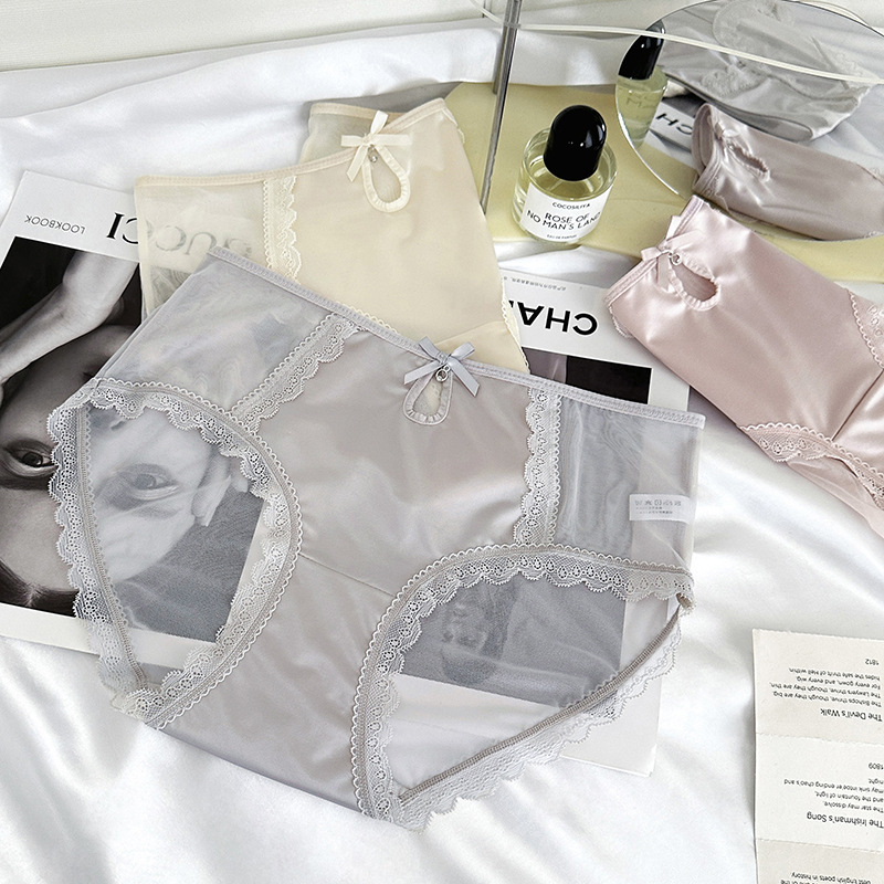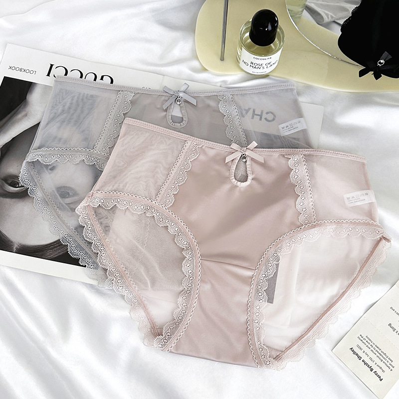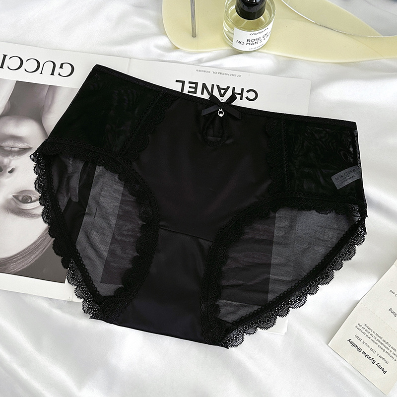 新品蕾丝内裤女丝滑缎面中腰性感女士内裤7a纯棉裆蕾丝女内裤