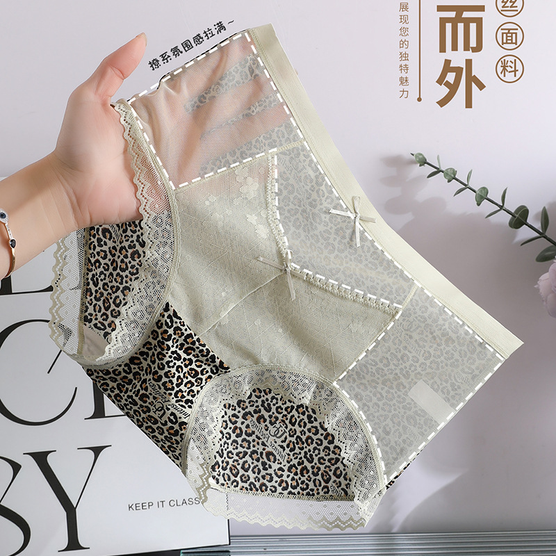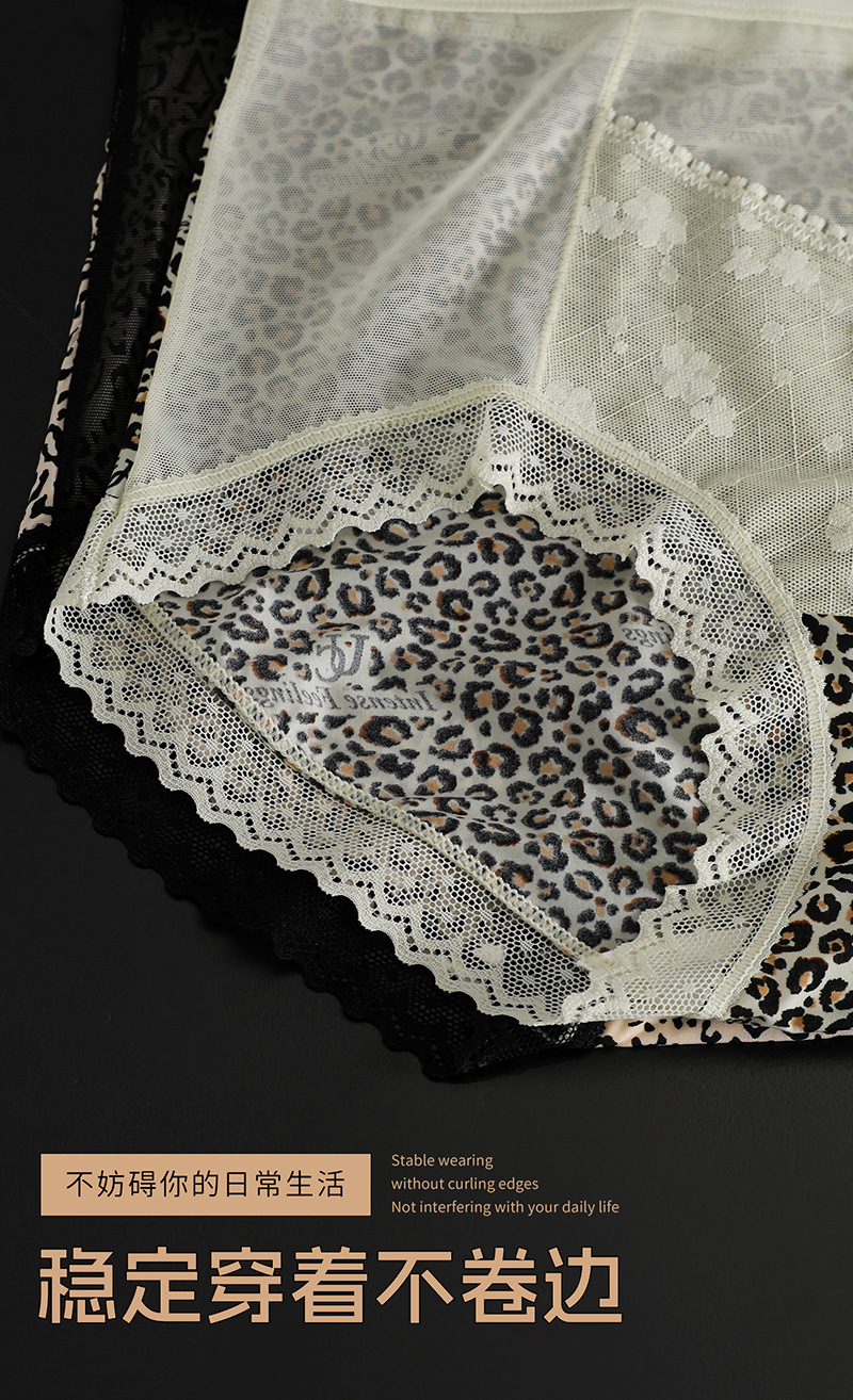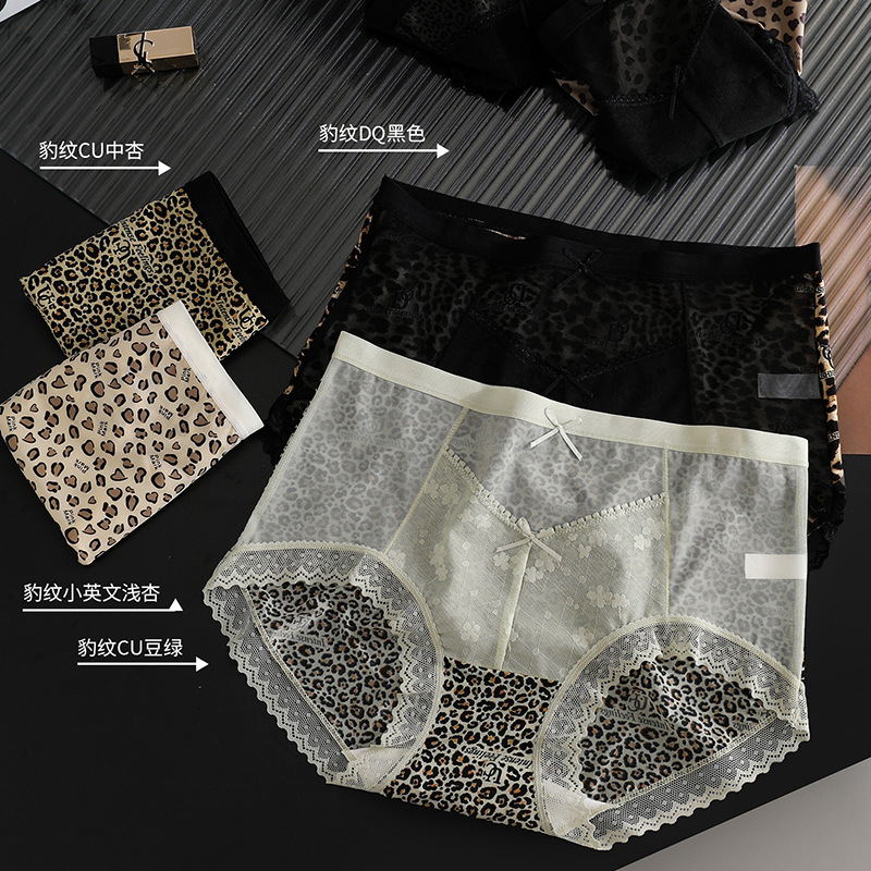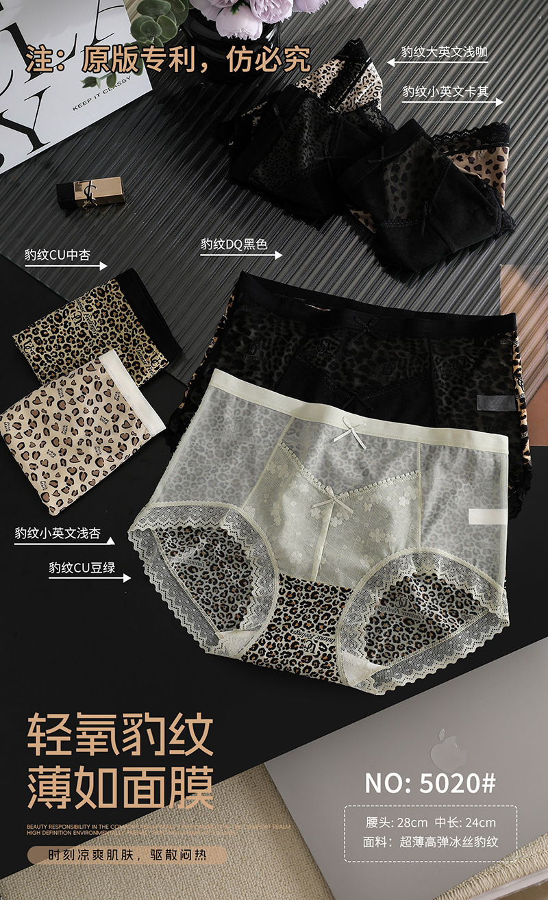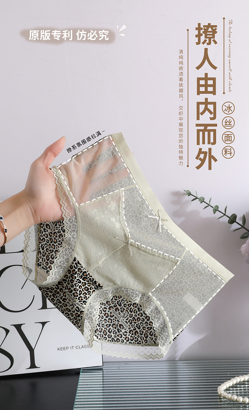 冰丝无痕内裤女火辣豹纹冰丝蚕丝蛋白裆女士内裤小碎花女内裤