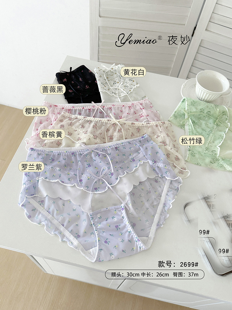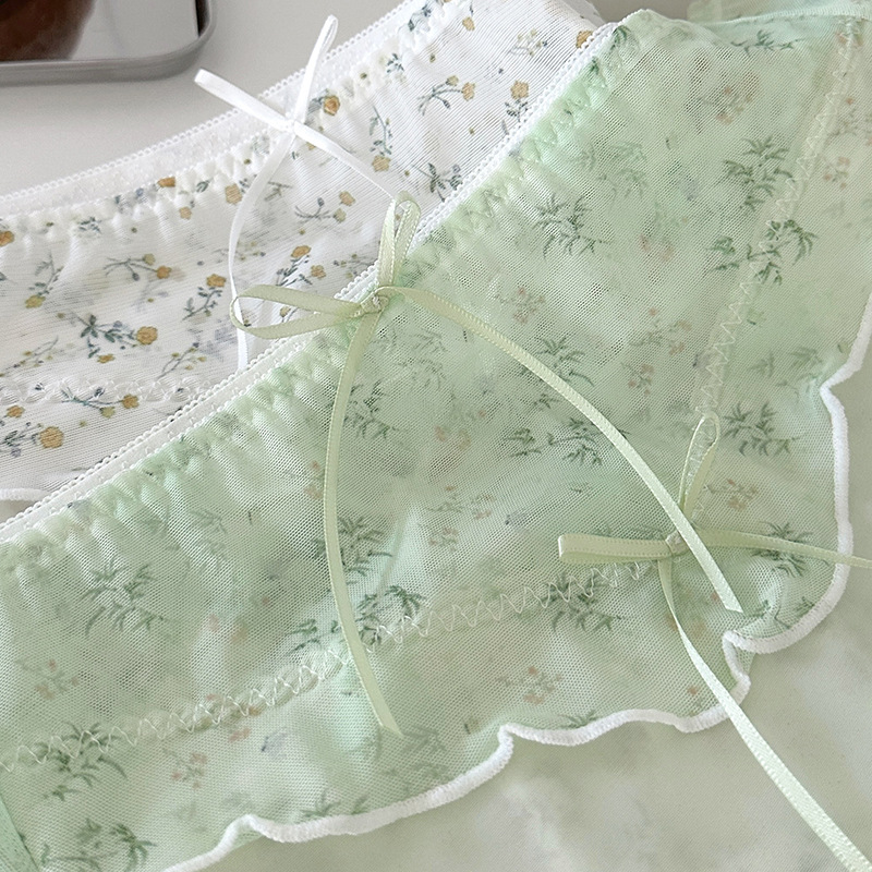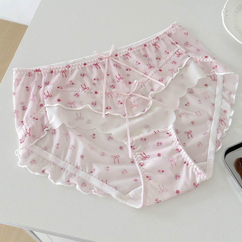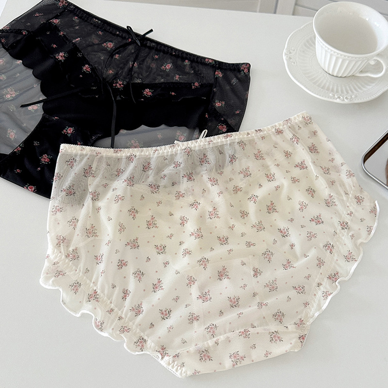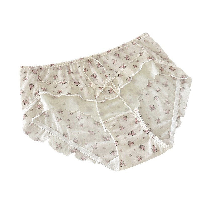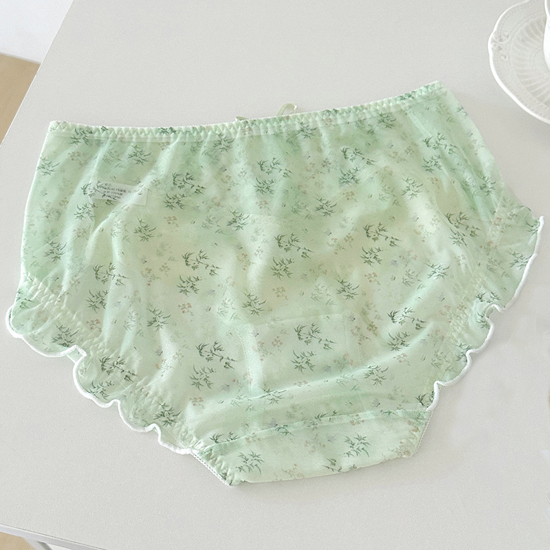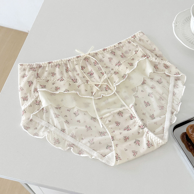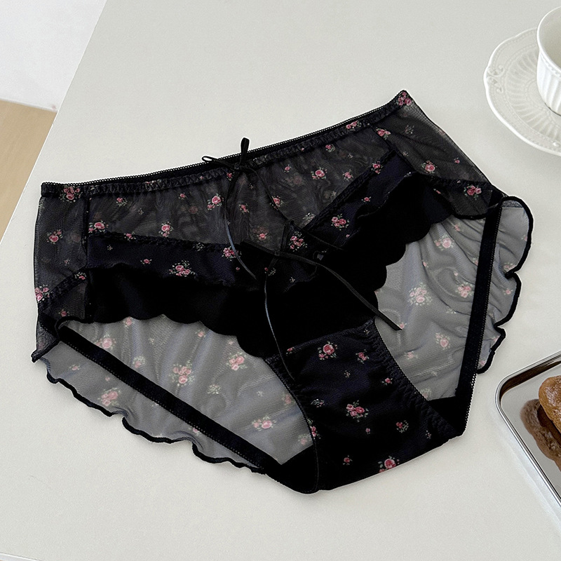 蕾丝内裤女碎花中腰性感女士内裤桑蚕丝纯棉裆蕾丝纯欲女内裤大码