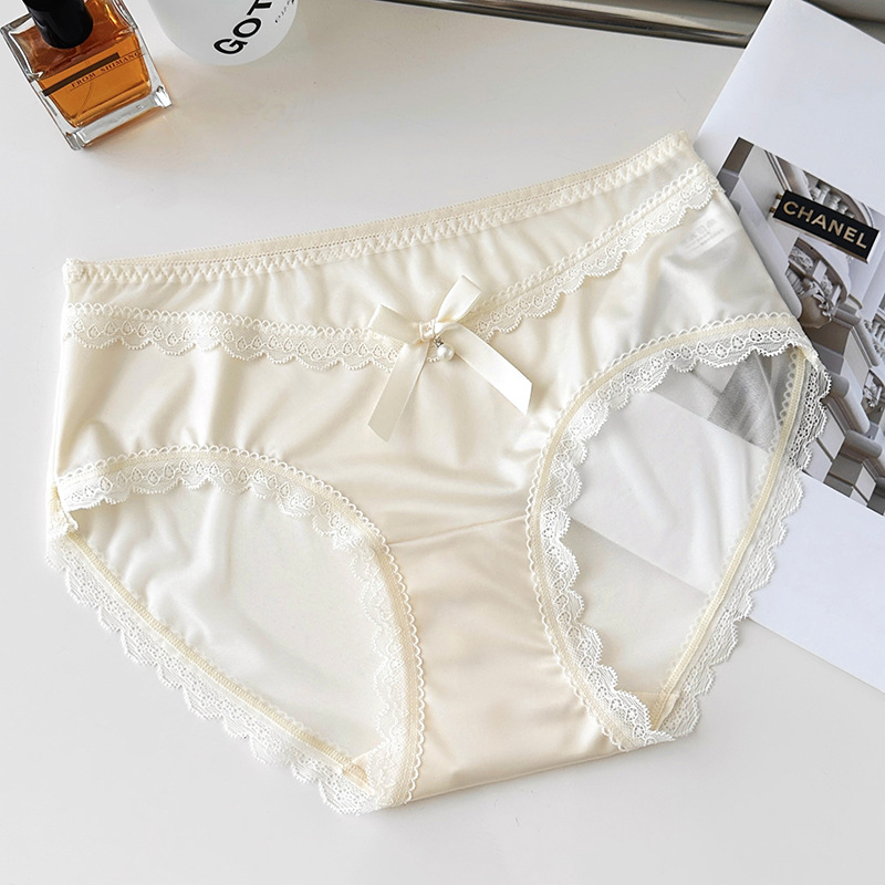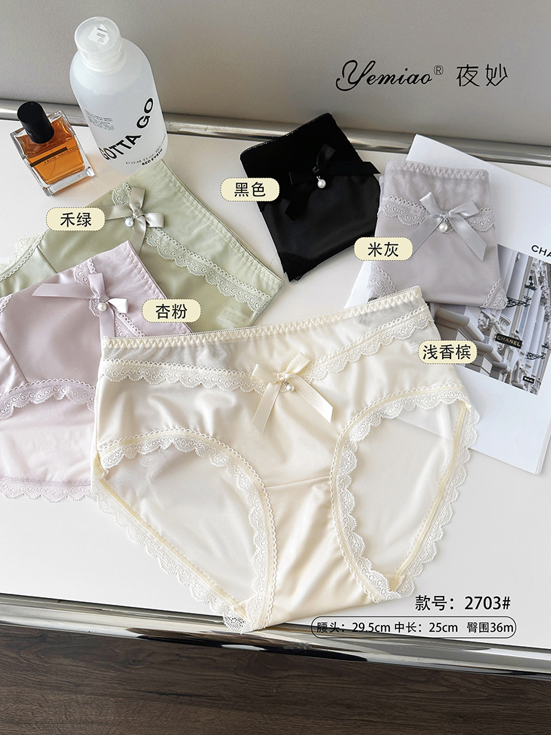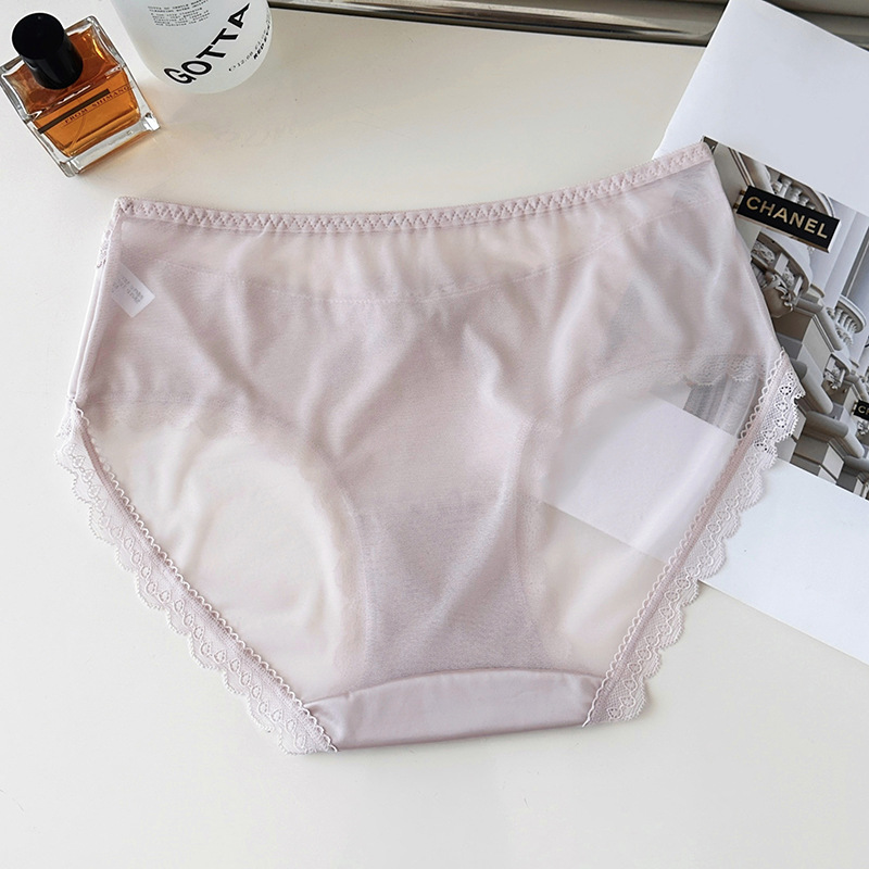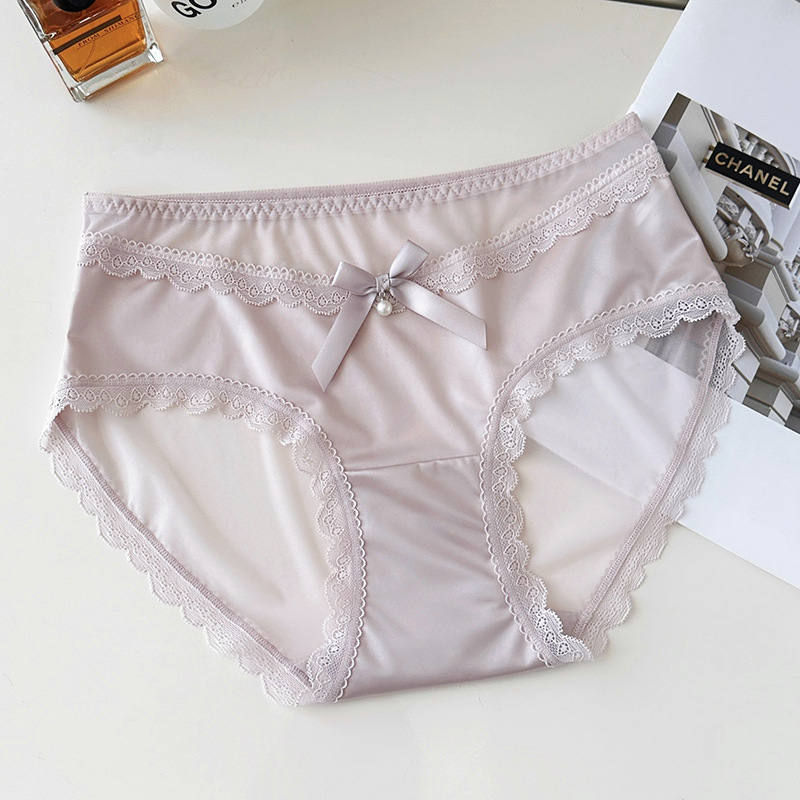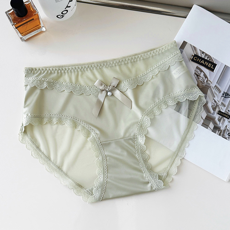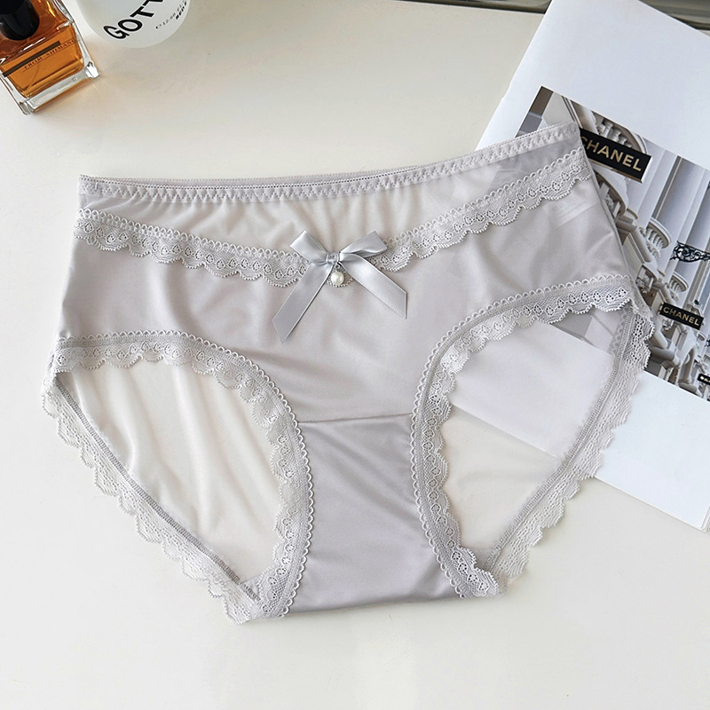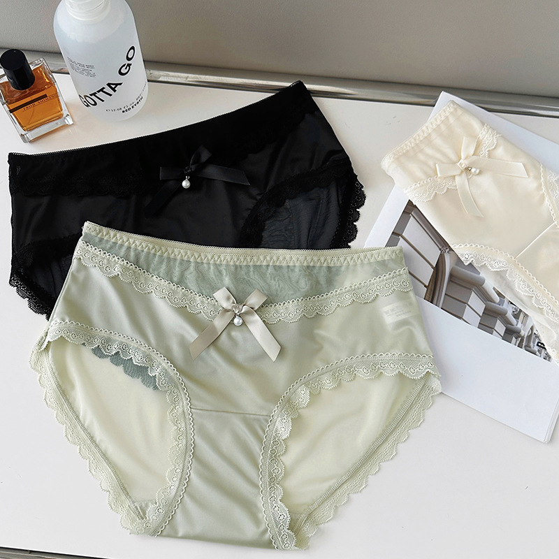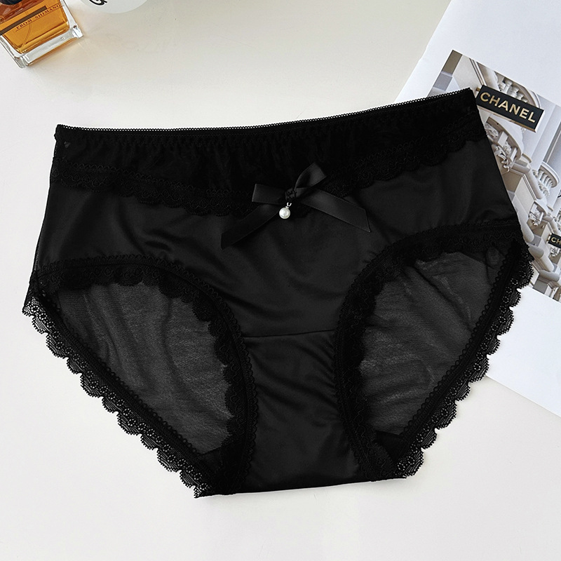 新品蕾丝内裤女丝滑缎面中腰性感女士内裤7a纯棉裆蕾丝女内裤