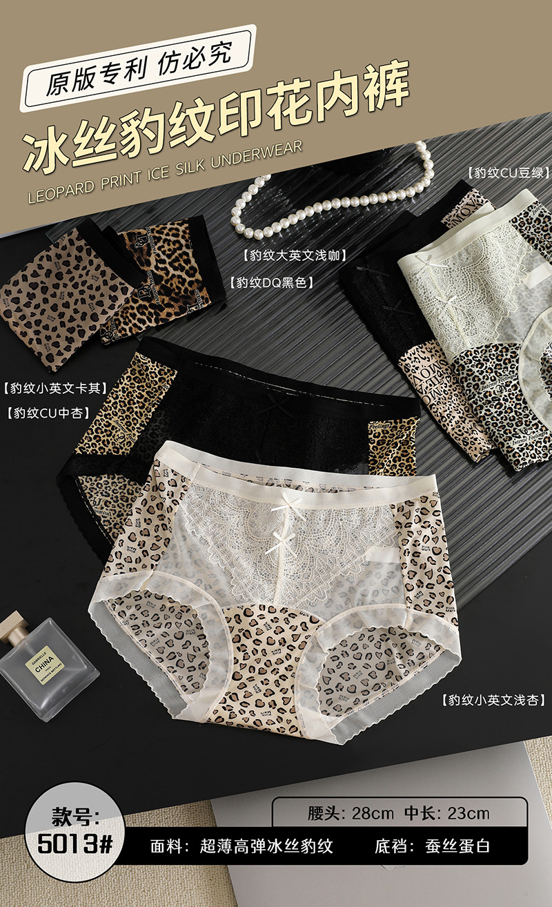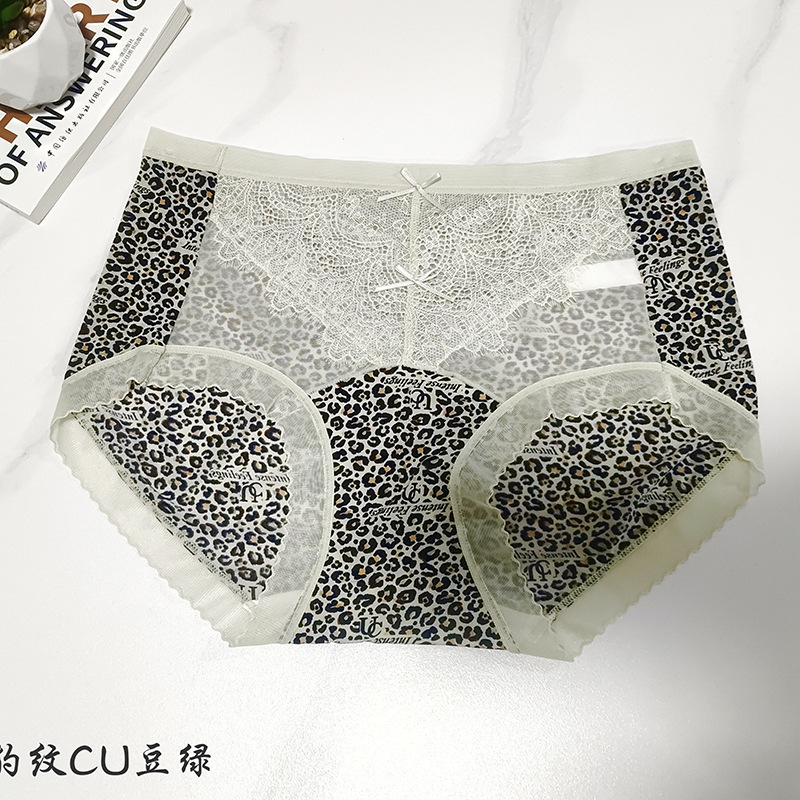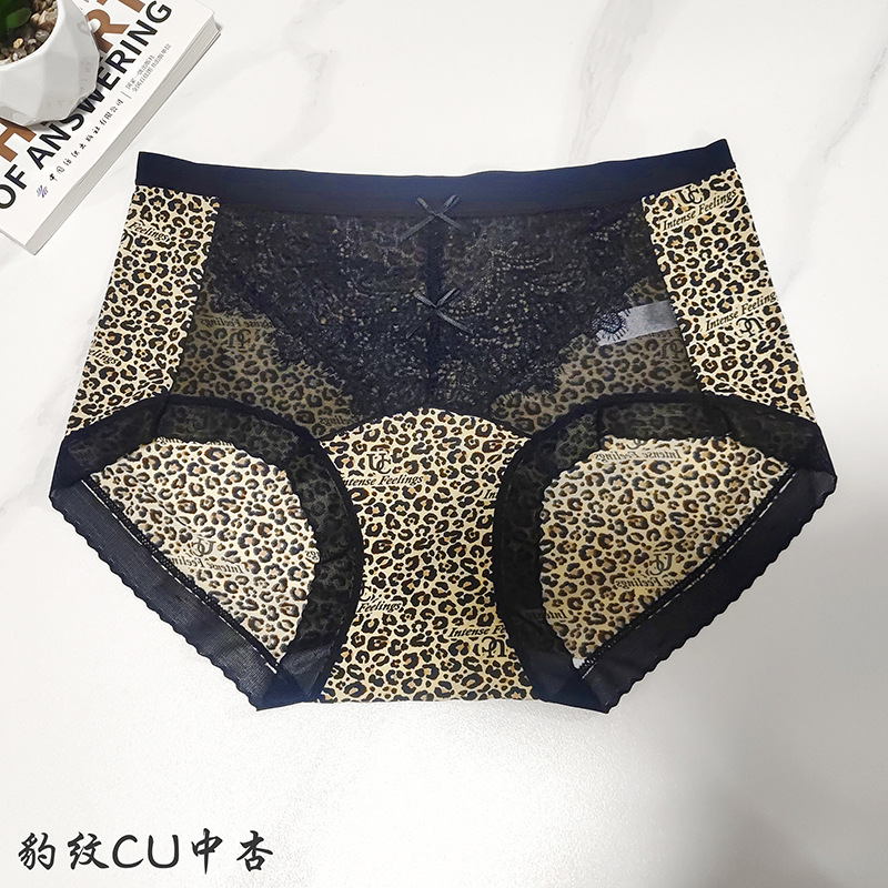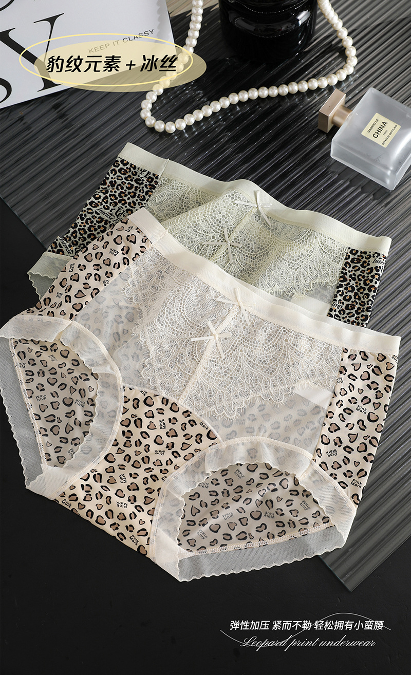 冰丝无痕内裤女火辣豹纹冰丝蚕丝蛋白裆女士内裤小碎花女内裤
