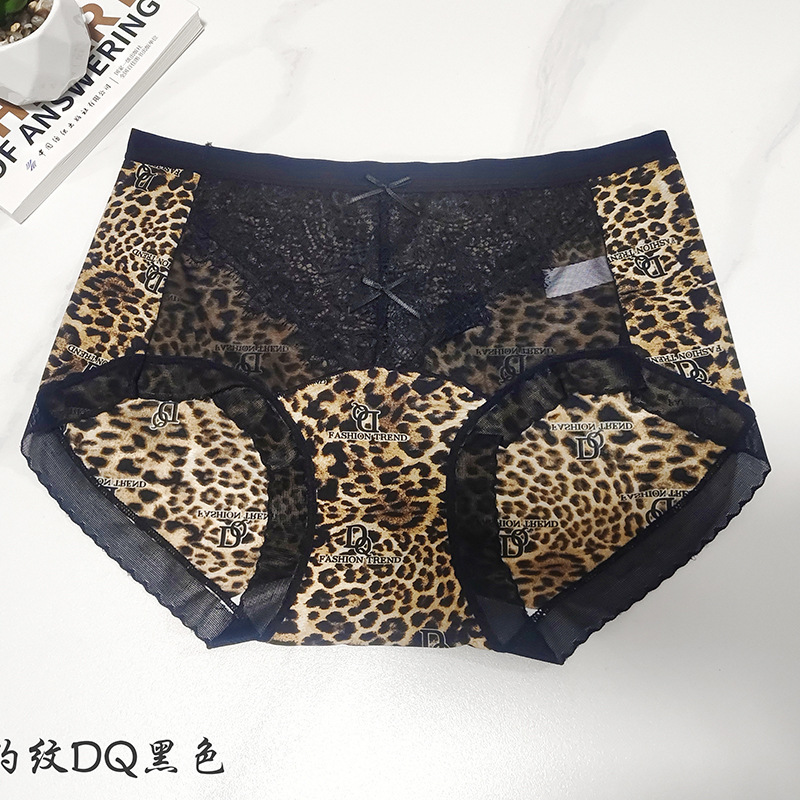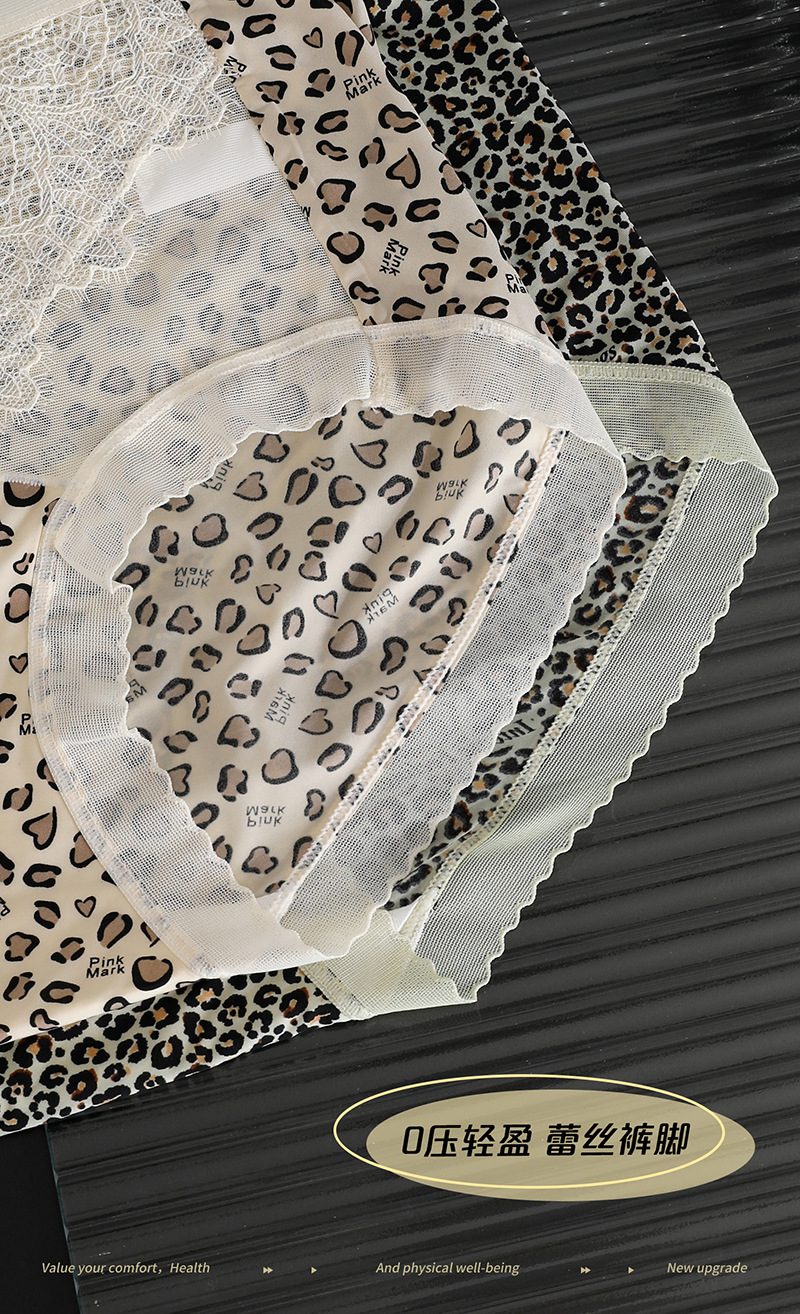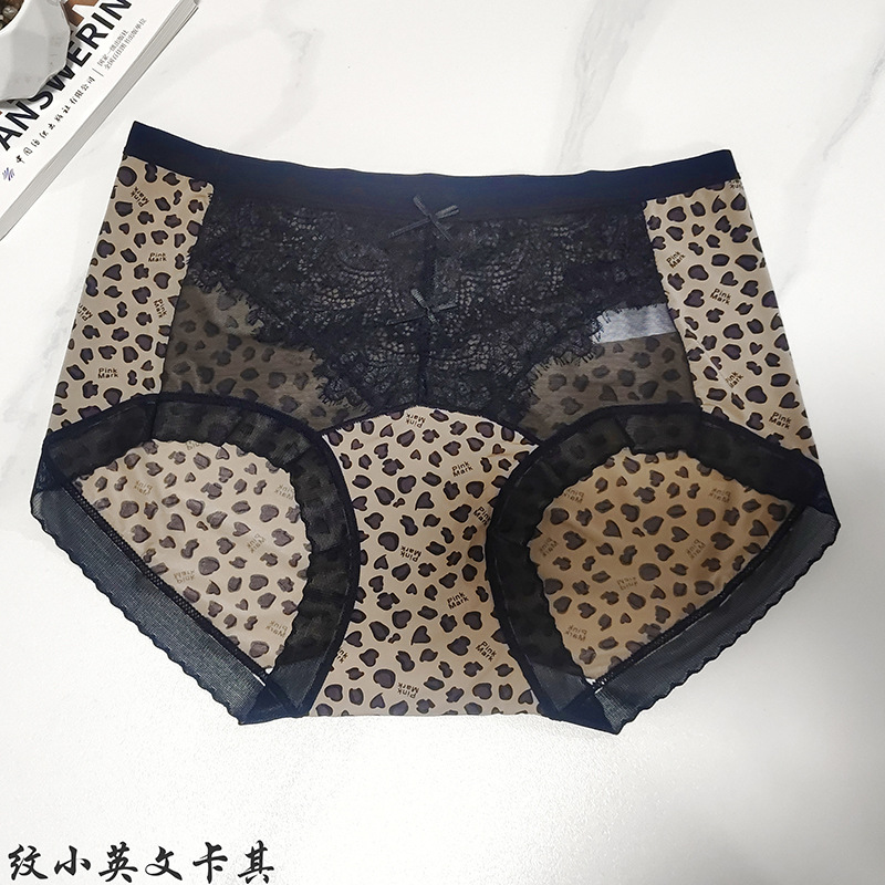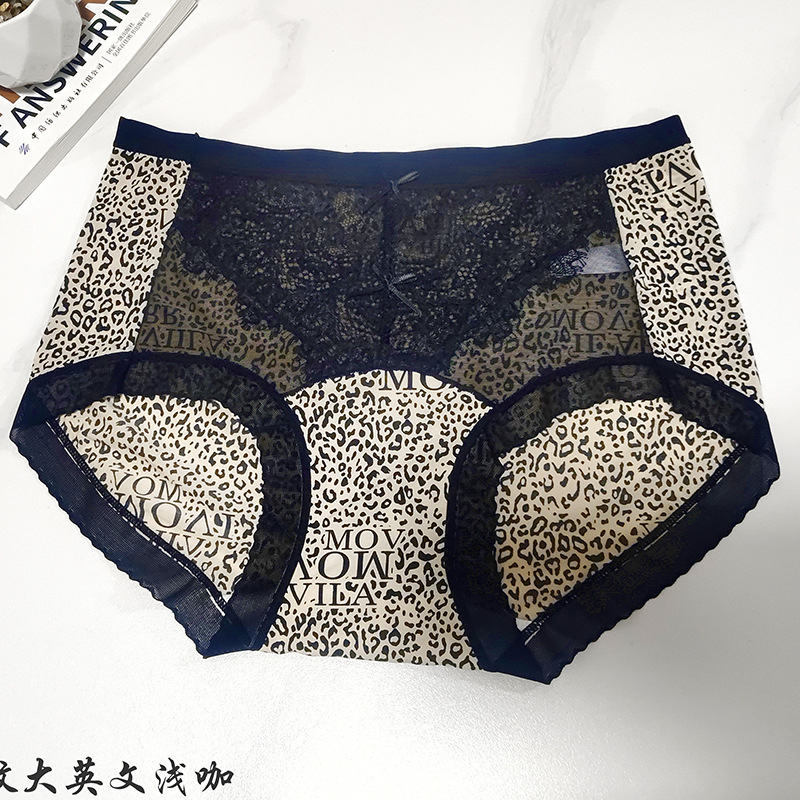 冰丝无痕内裤女火辣豹纹冰丝蚕丝蛋白裆女士内裤小碎花女内裤