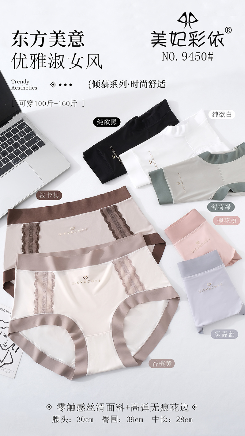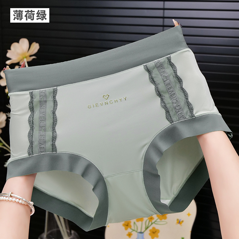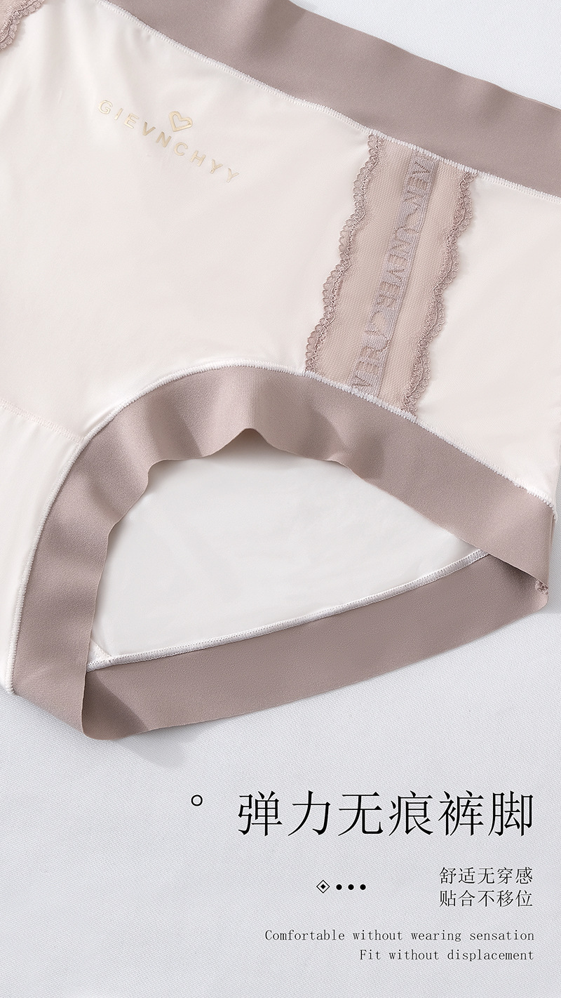 冰丝性感大码飘飞面料蕾丝款女士内裤裆高弹包臀无痕内裤女
