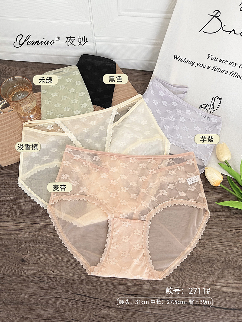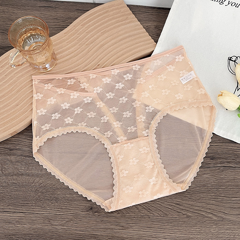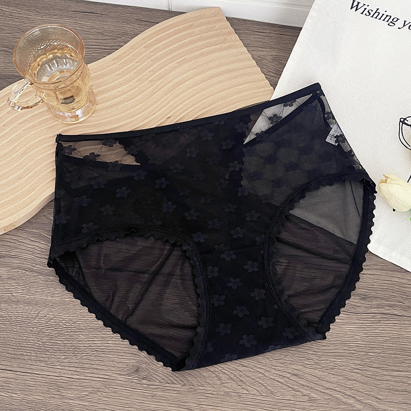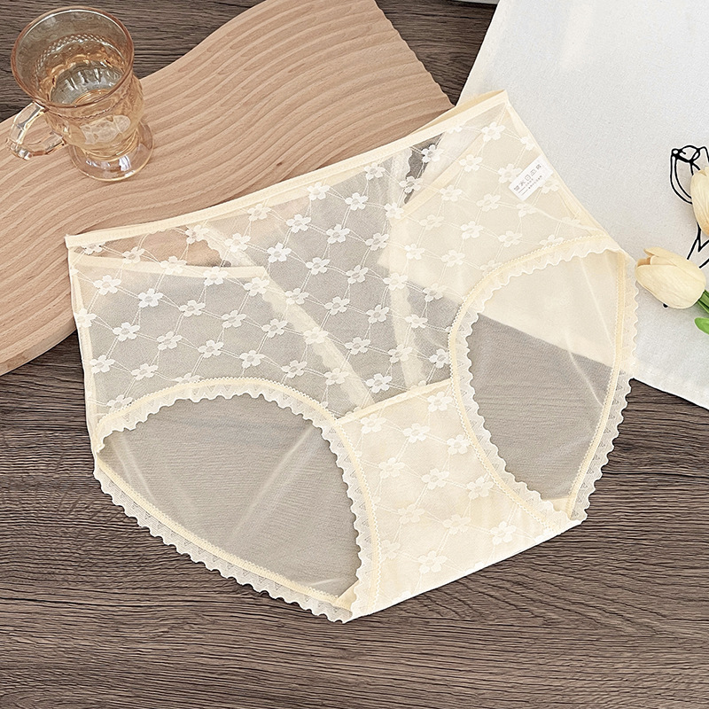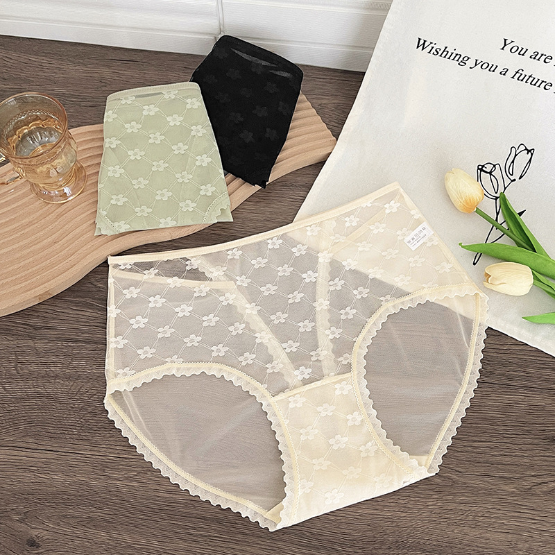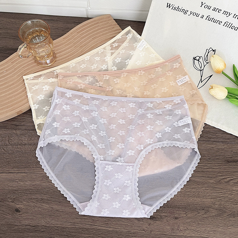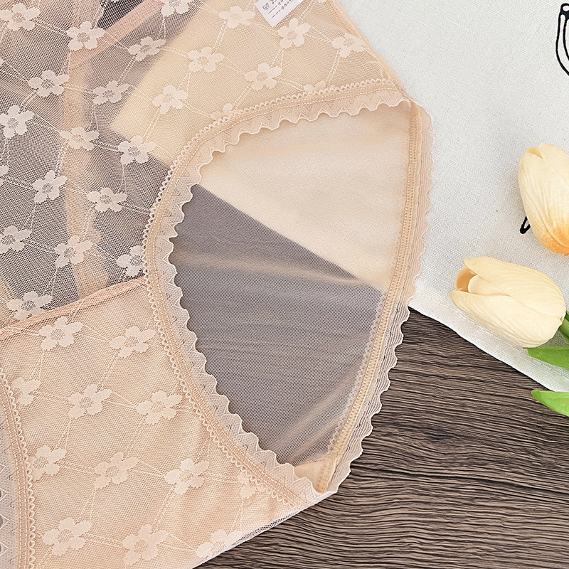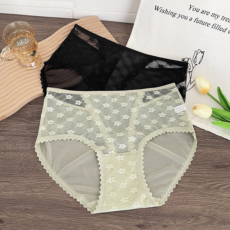 新品蕾丝内裤女中腰性感女士内裤桑蚕丝纯棉裆蕾丝镂空女内裤大码