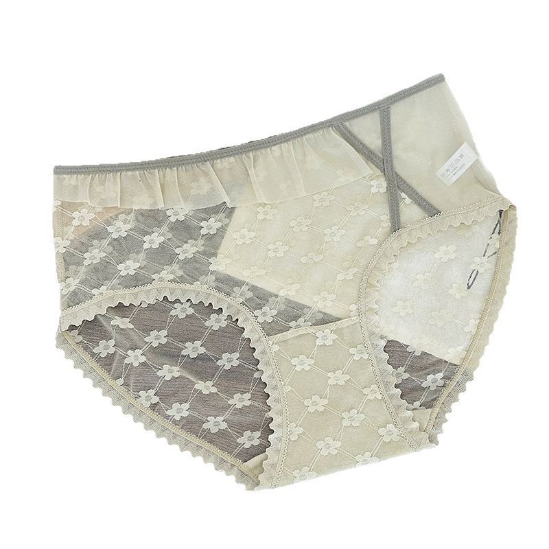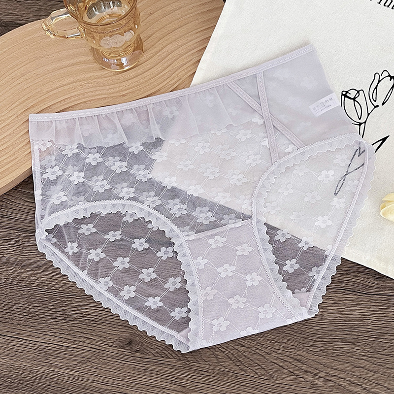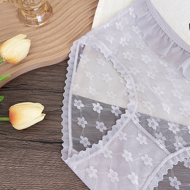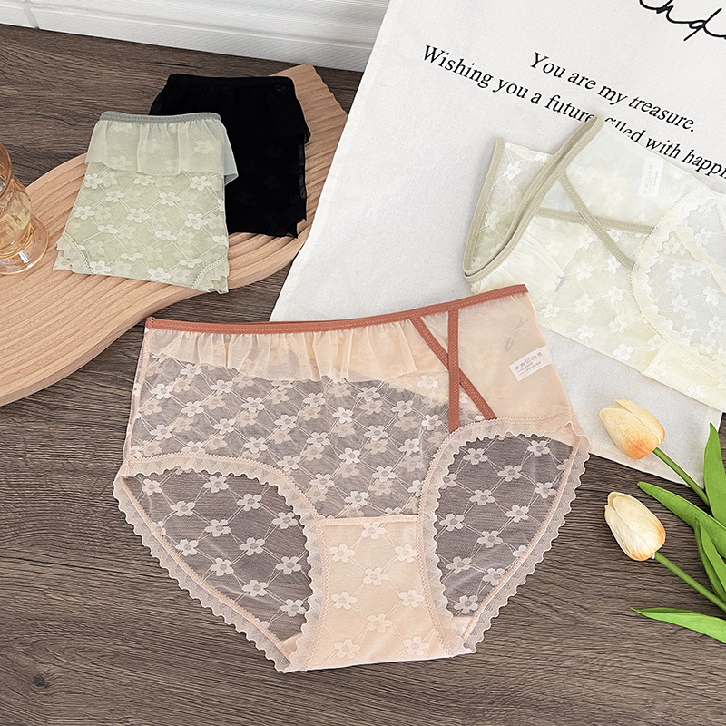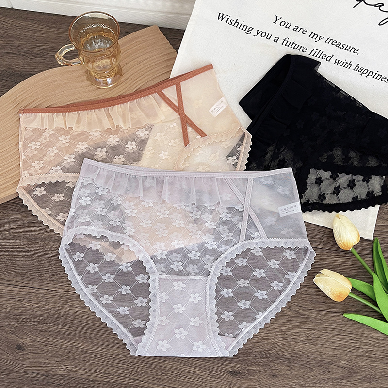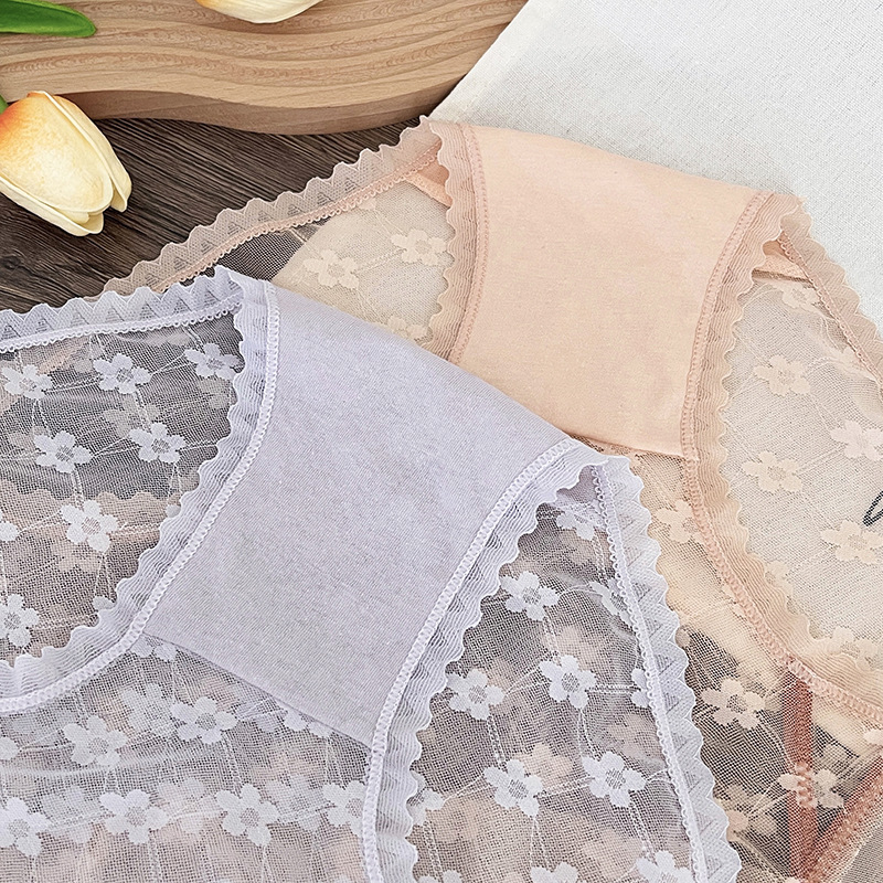 新品蕾丝内裤女中腰性感女士内裤桑蚕丝纯棉裆蕾丝镂空女内裤大码