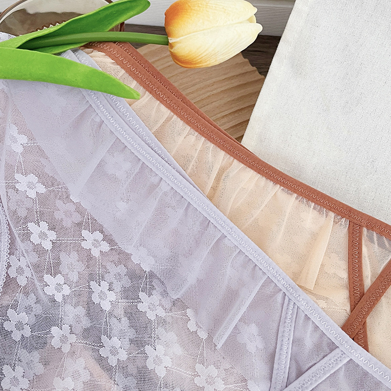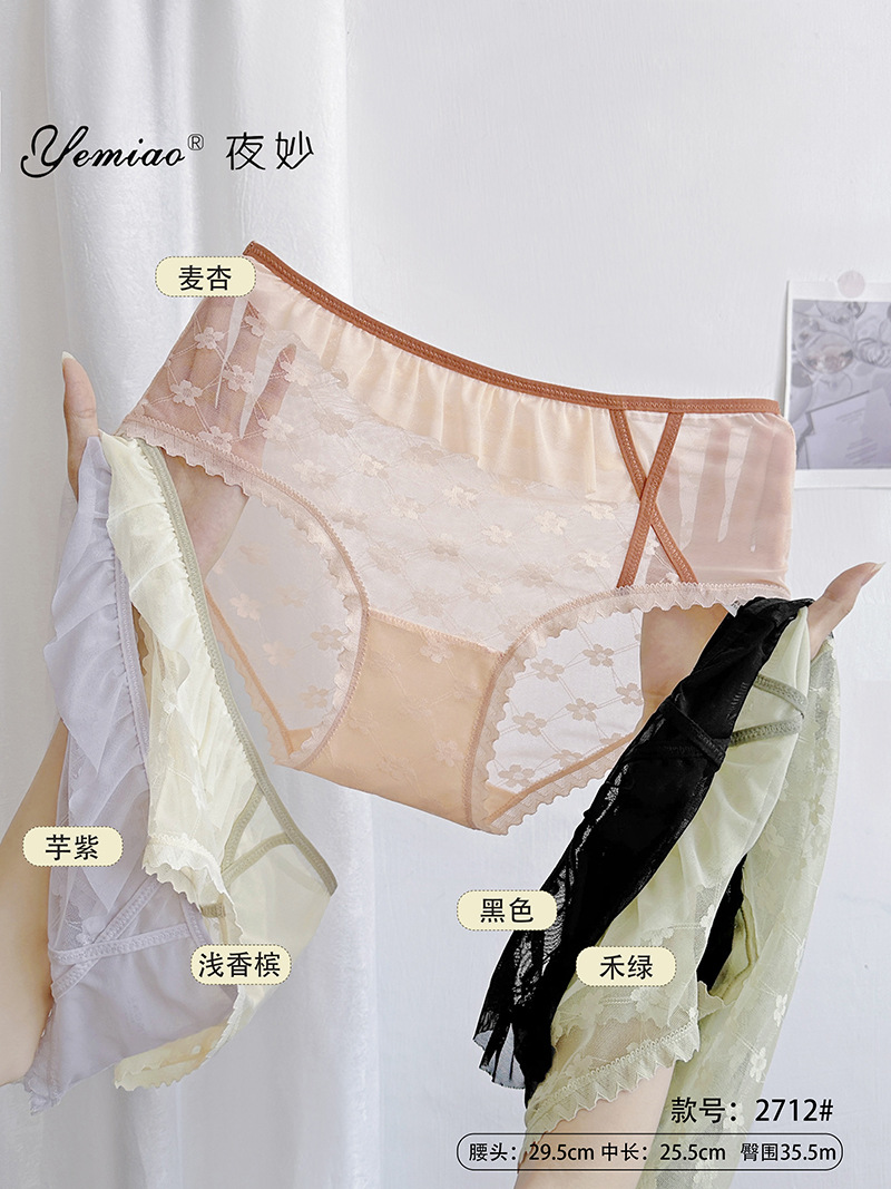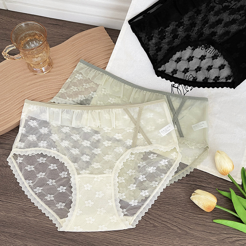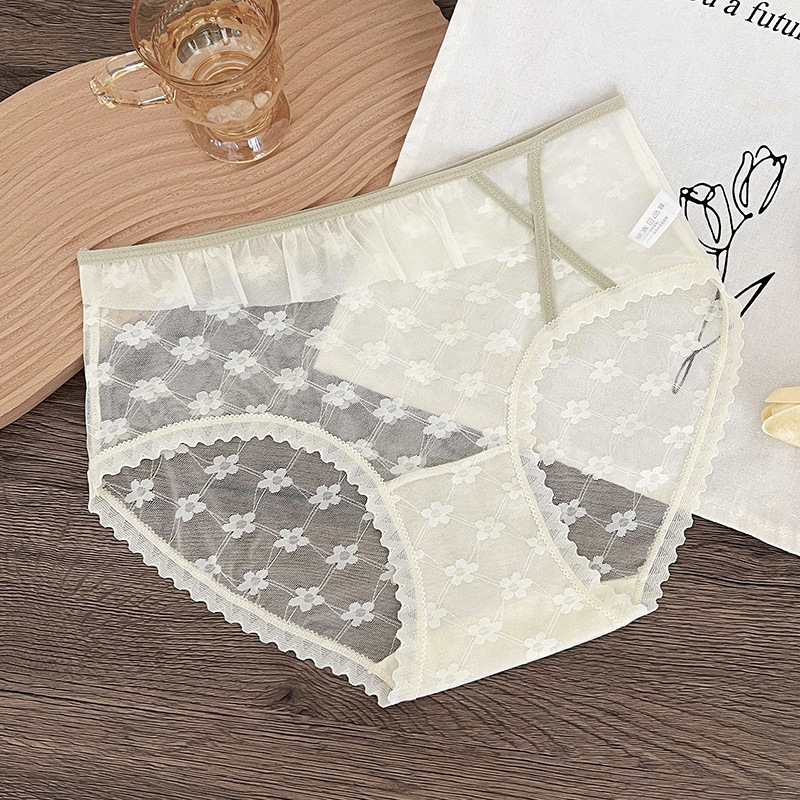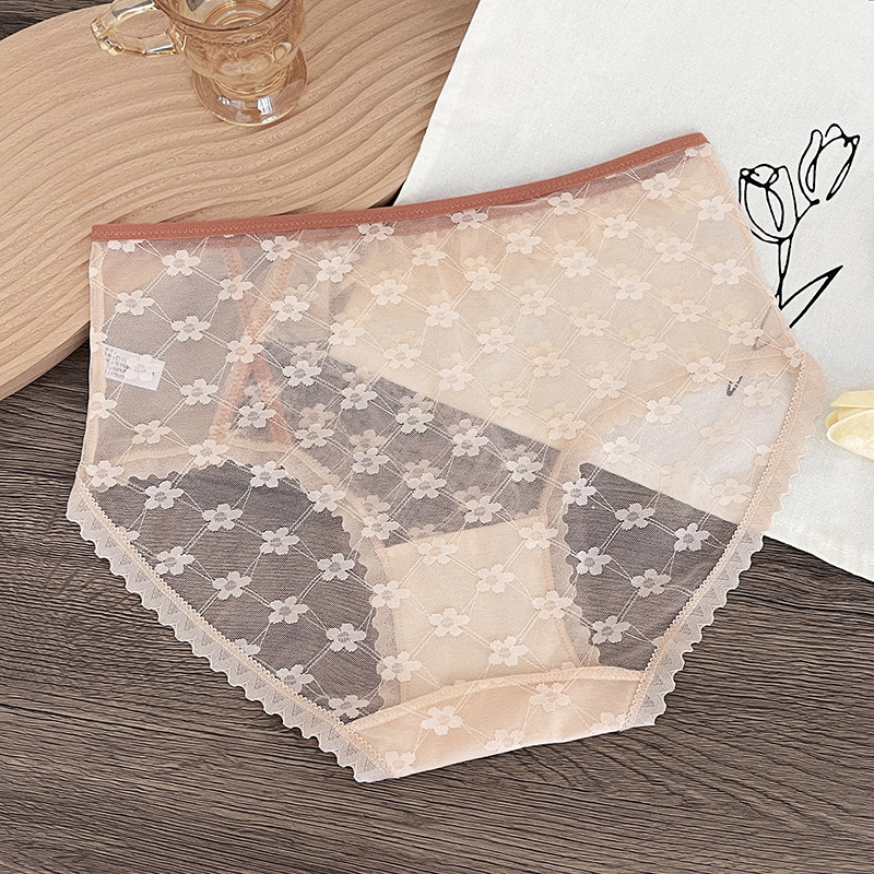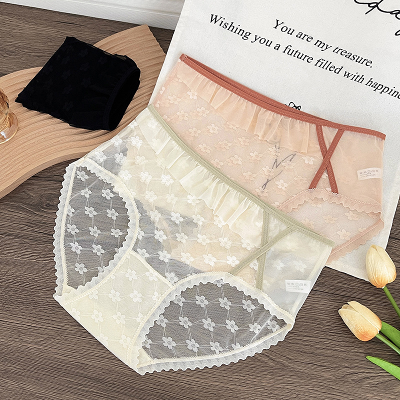 新品蕾丝内裤女中腰性感女士内裤桑蚕丝纯棉裆蕾丝镂空女内裤大码