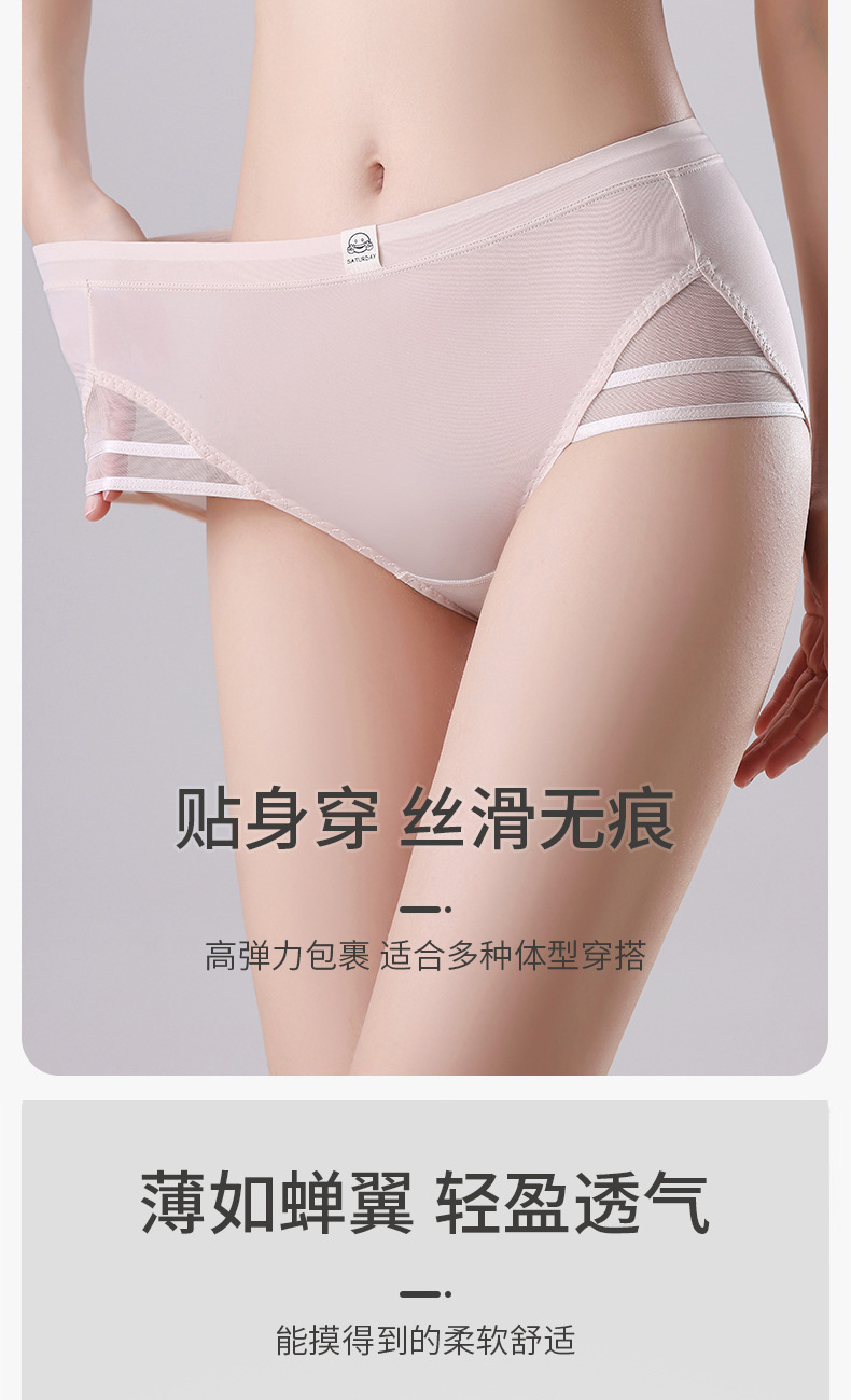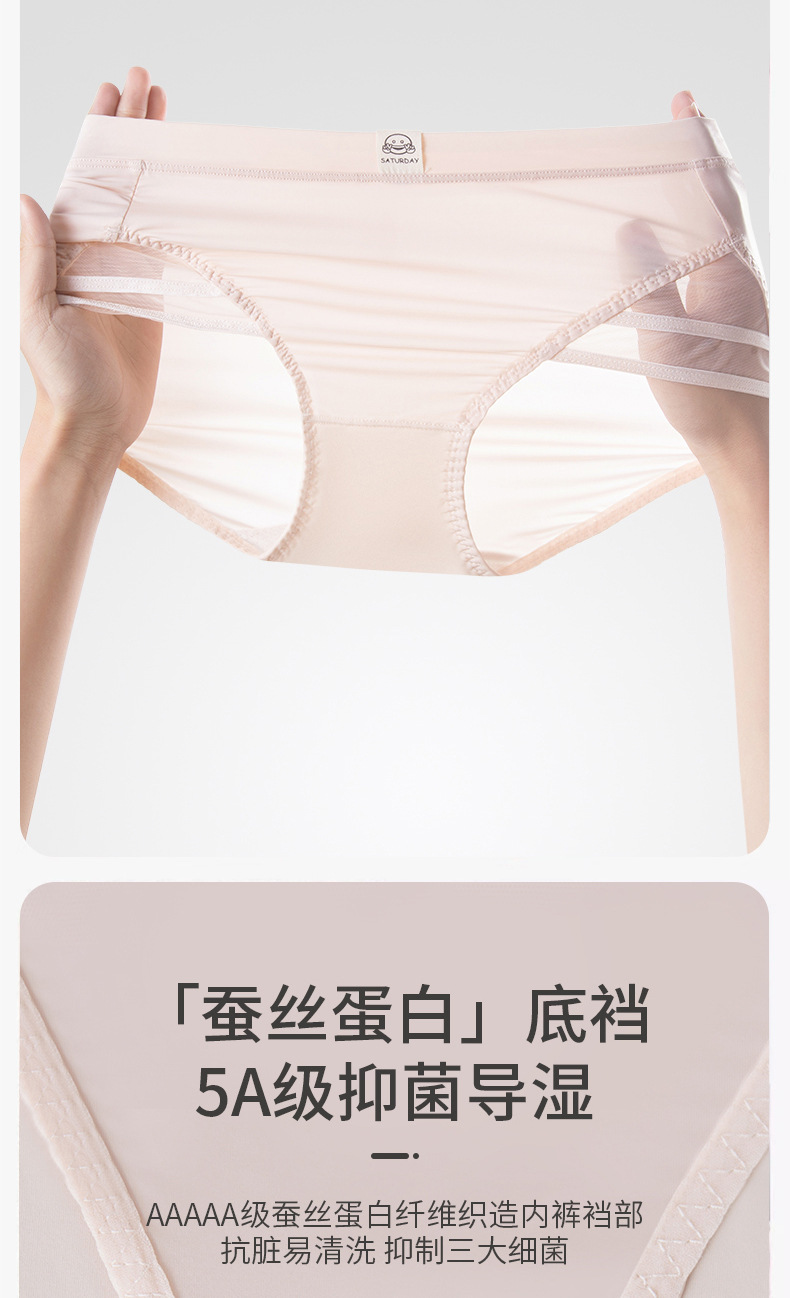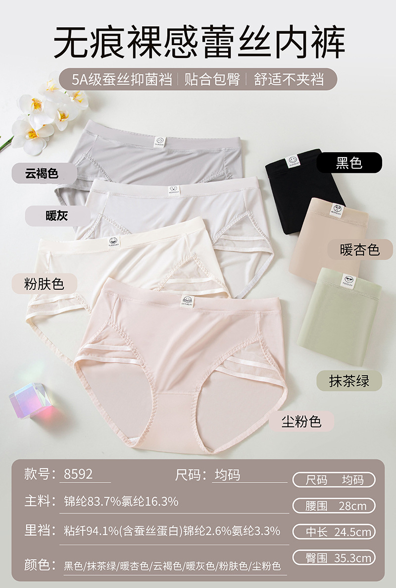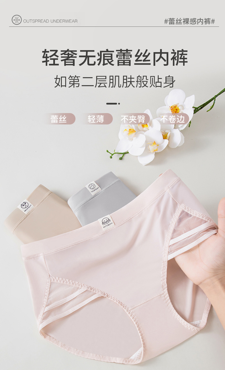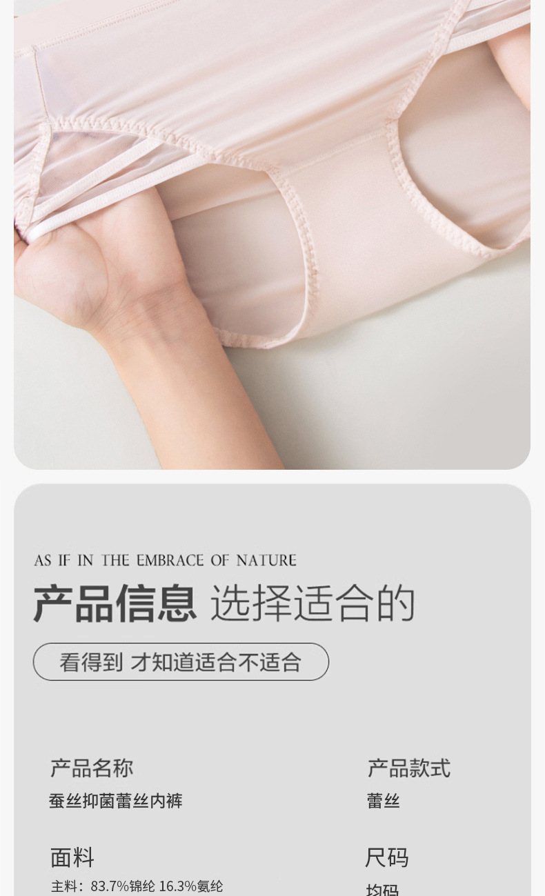 蕾丝内裤女无痕中低腰性感女士内裤蚕丝蛋白内档透气三角裤女
