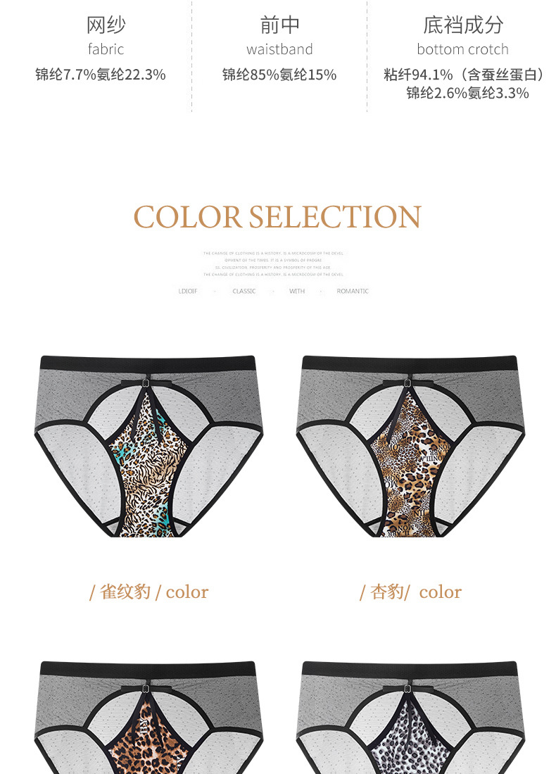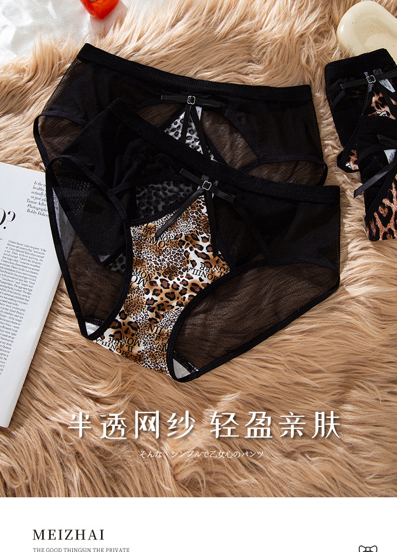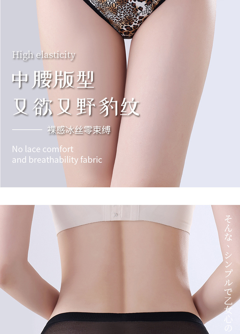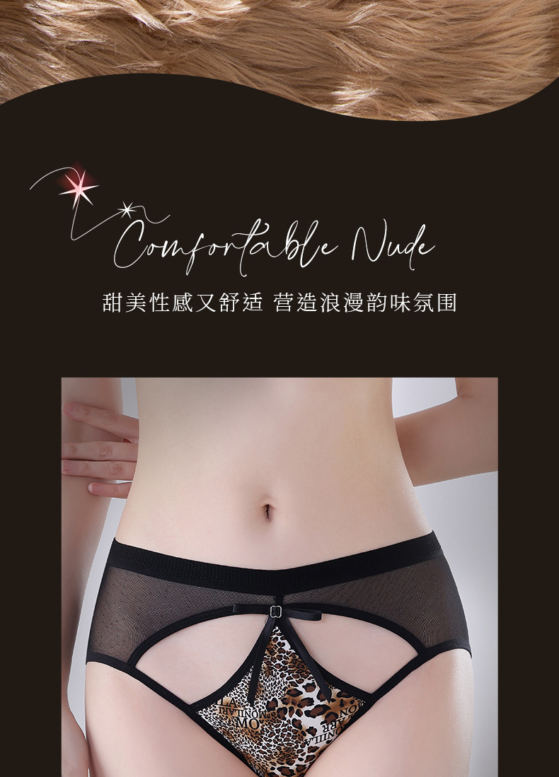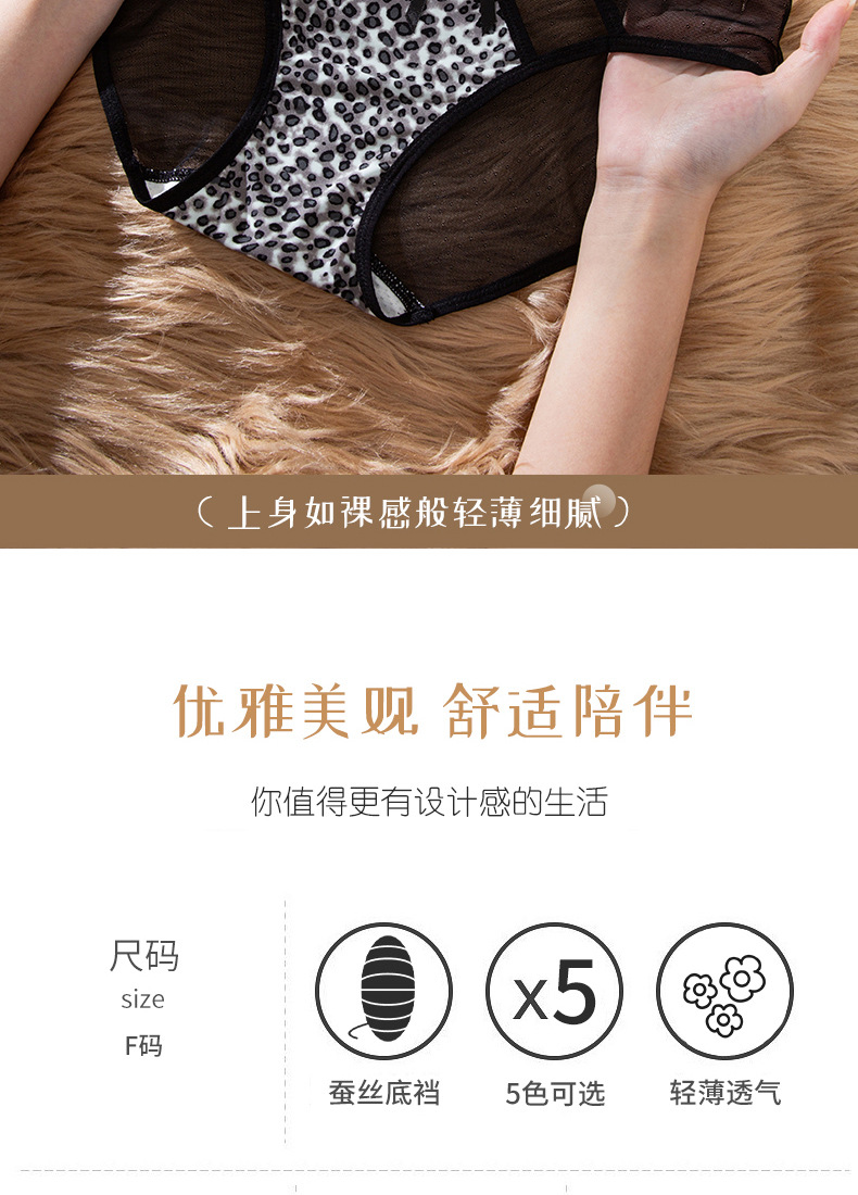 豹纹内裤女轻薄透气蚕丝蛋白裆舒适性感女士内裤火辣豹纹镂空内裤