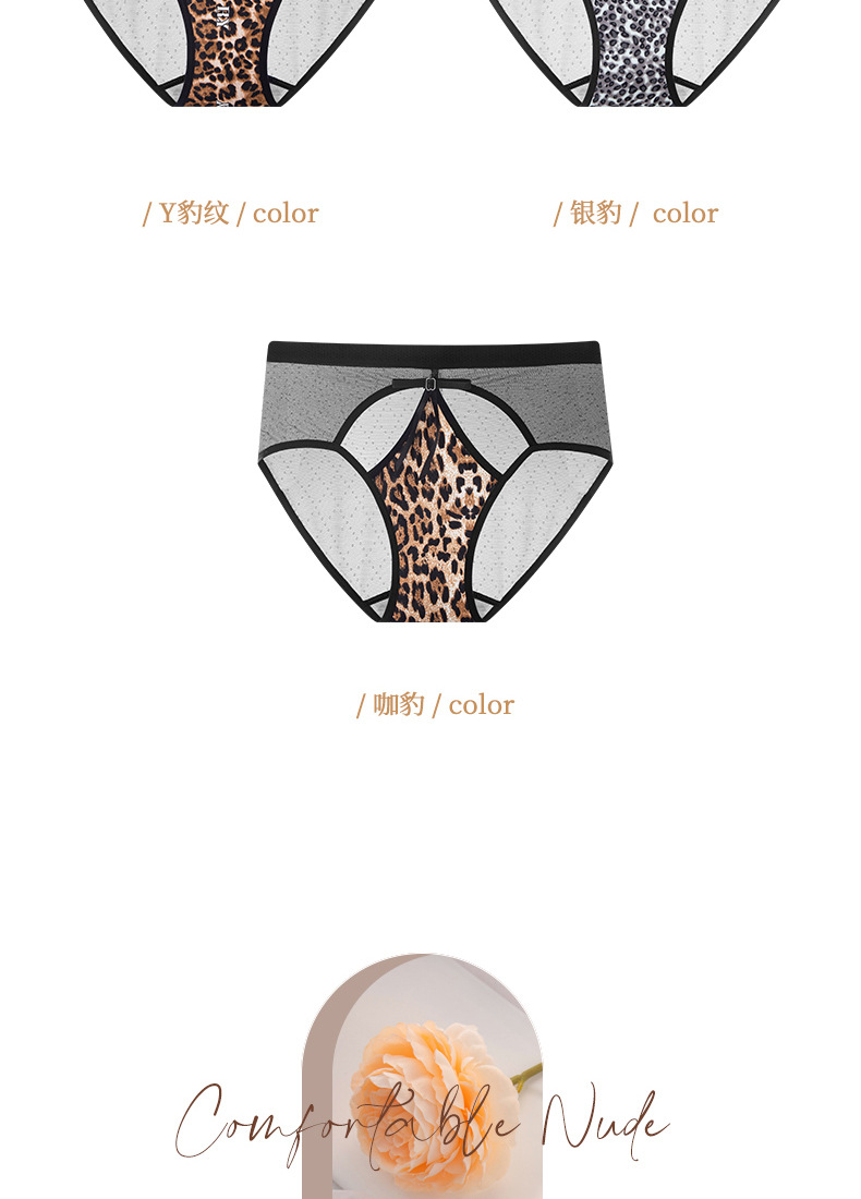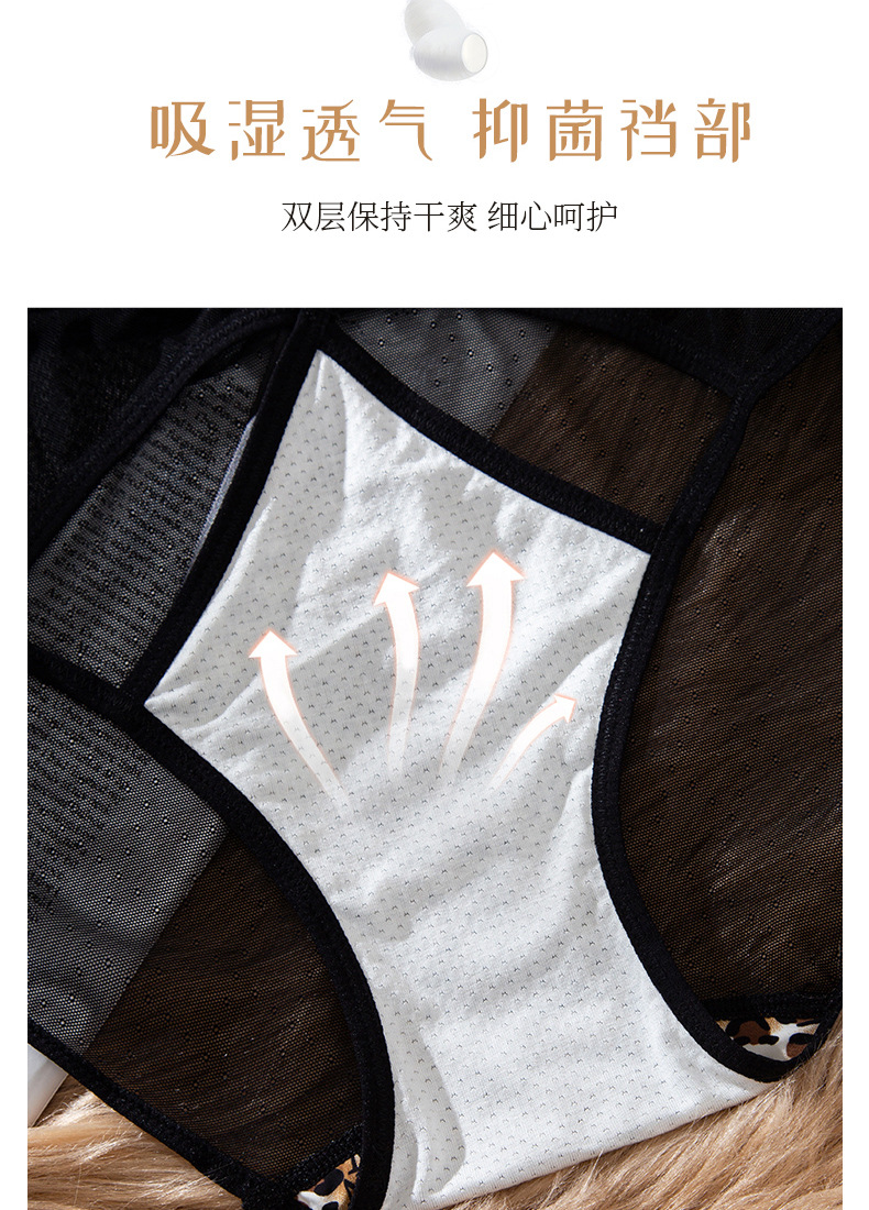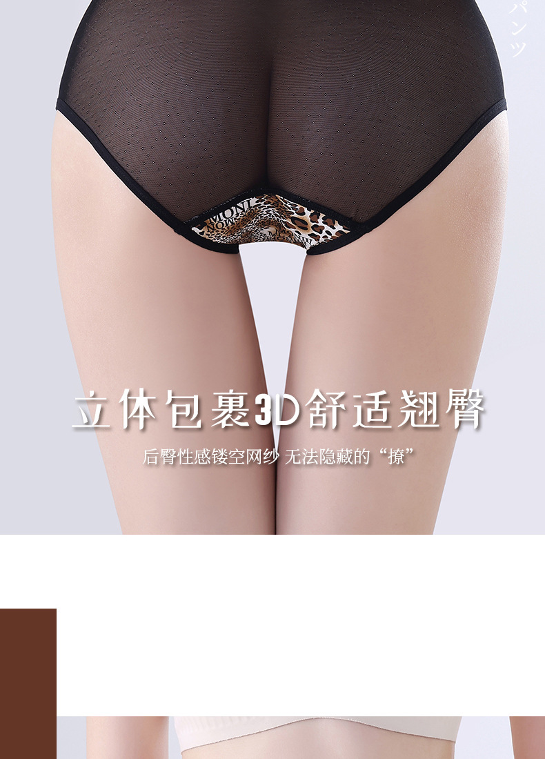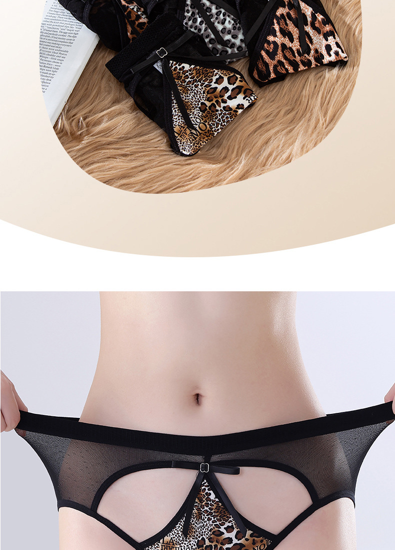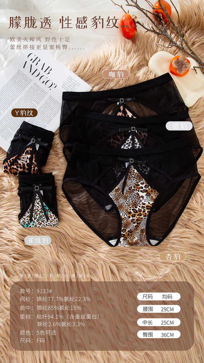 豹纹内裤女轻薄透气蚕丝蛋白裆舒适性感女士内裤火辣豹纹镂空内裤