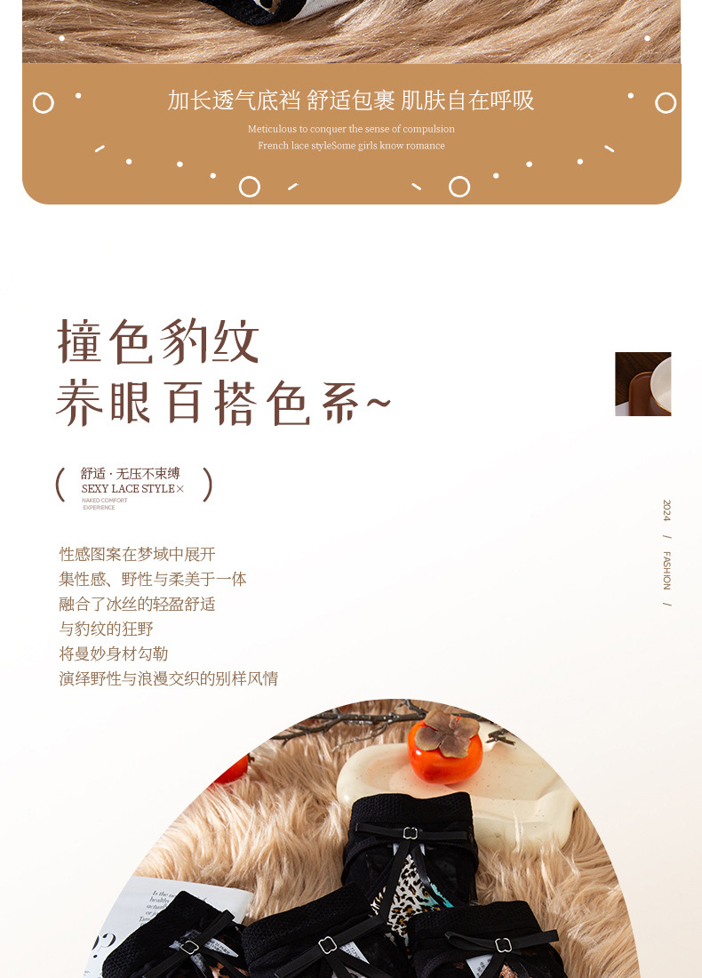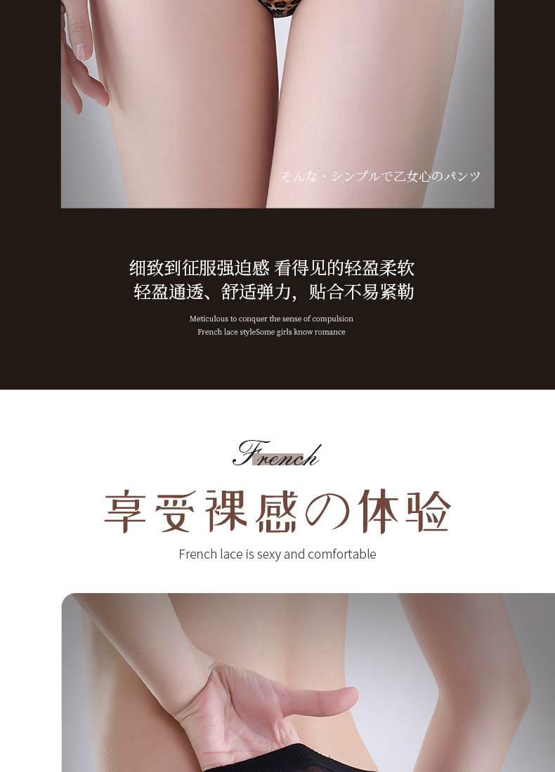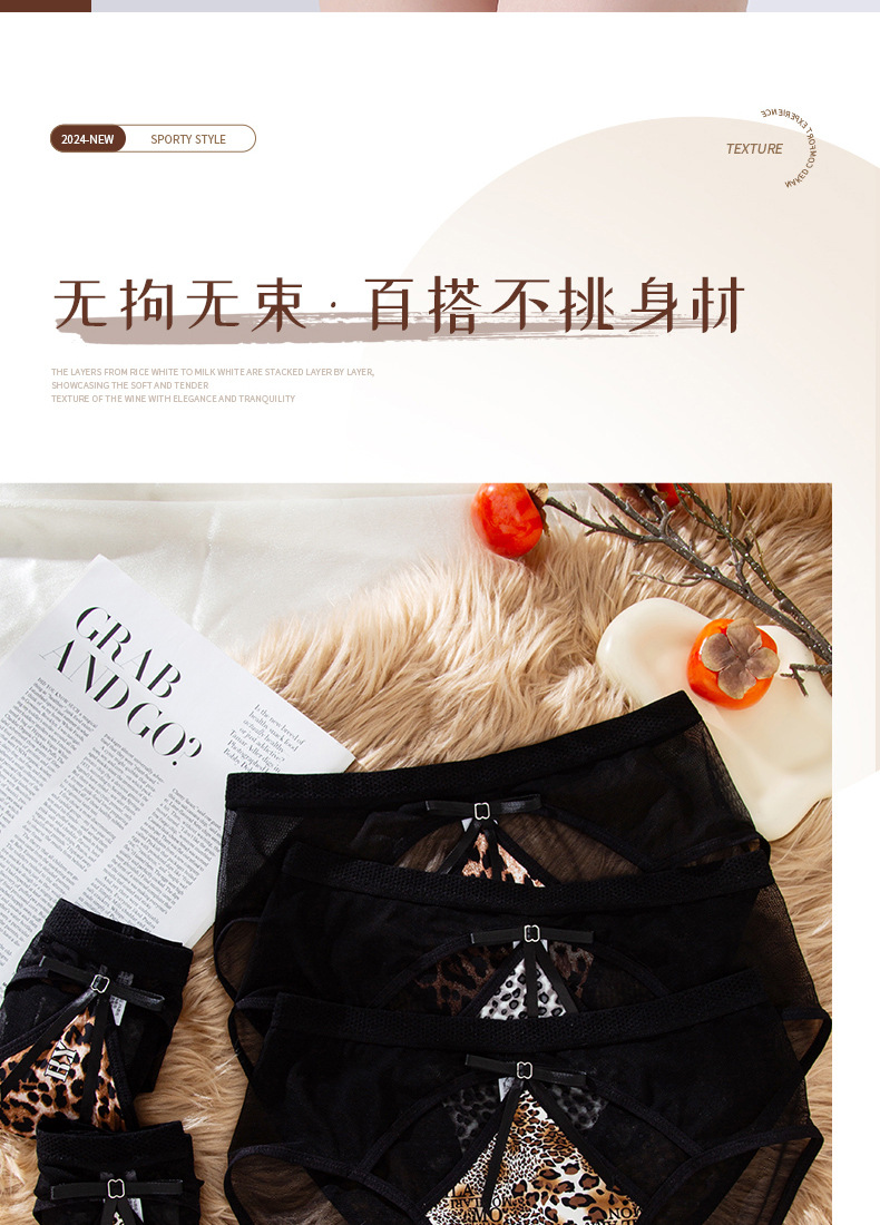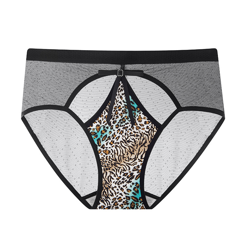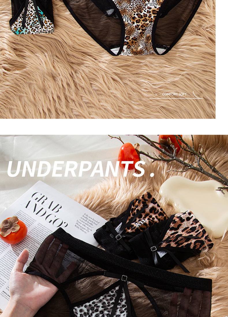 豹纹内裤女轻薄透气蚕丝蛋白裆舒适性感女士内裤火辣豹纹镂空内裤
