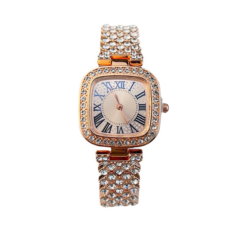 跨境抖音爆款满天星镶钻女士小方表气质时尚满钻方形手链石英女表