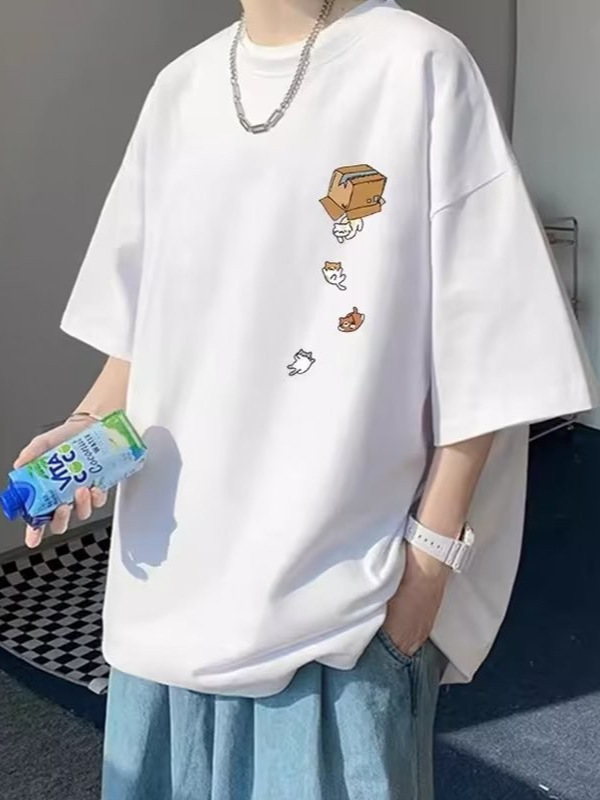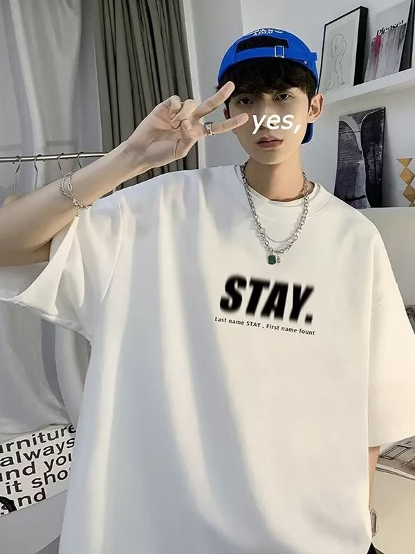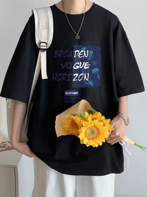 夏季新款短袖宽松t恤男士潮牌休闲半袖潮流体恤打底衫五分袖上衣