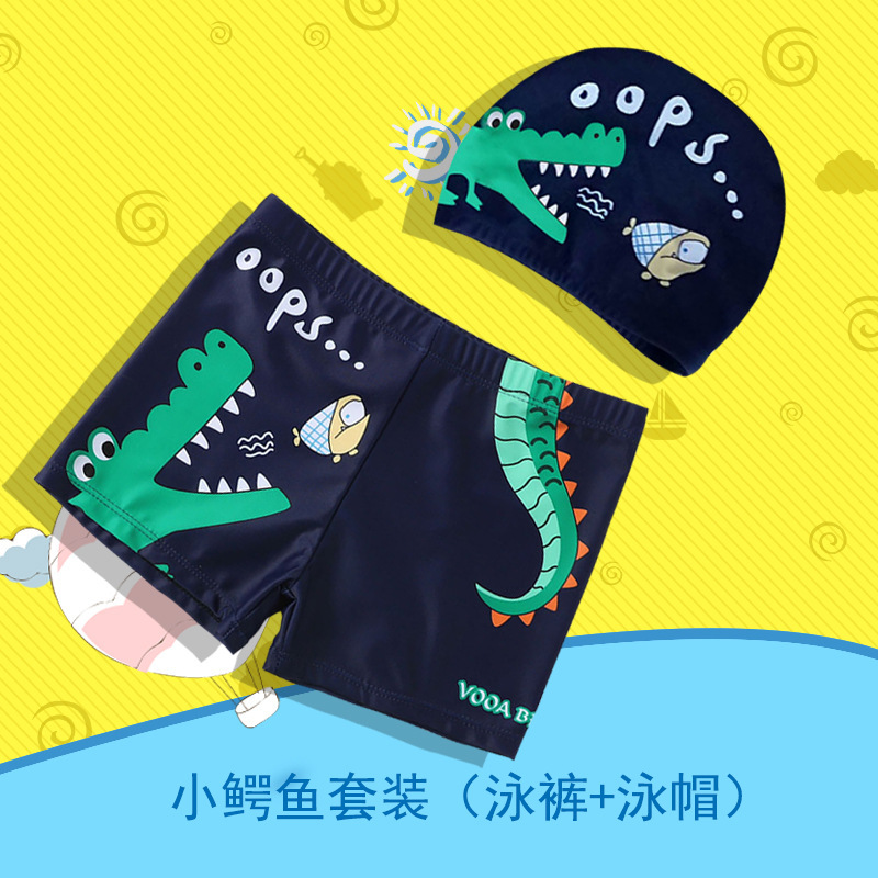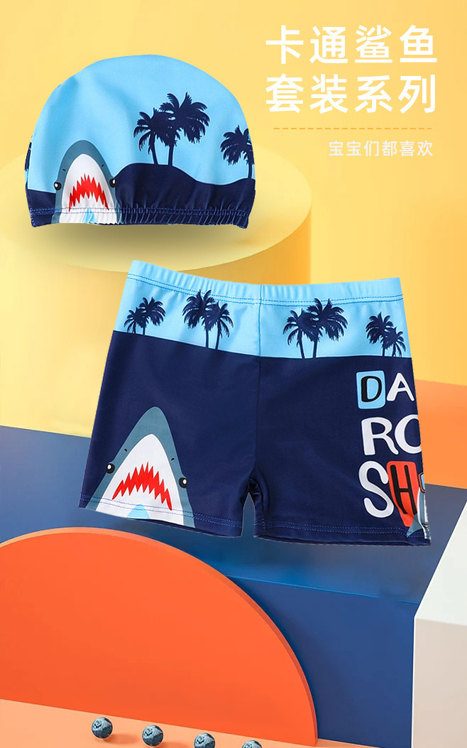 儿童泳衣男童中大童分体透气卡通男童泳衣短袖夏海边沙滩防晒套装