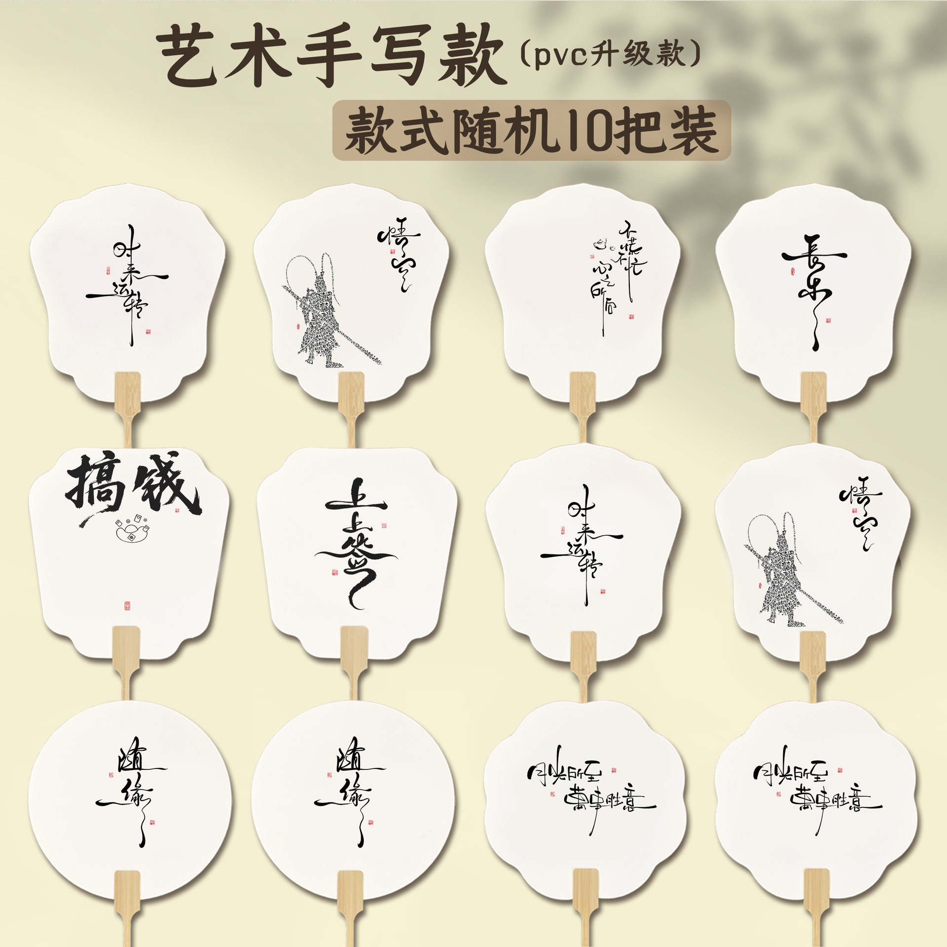 漆扇带字款团扇书法文字毛笔字景区大漆水拓白色漂漆专用扇子pvc