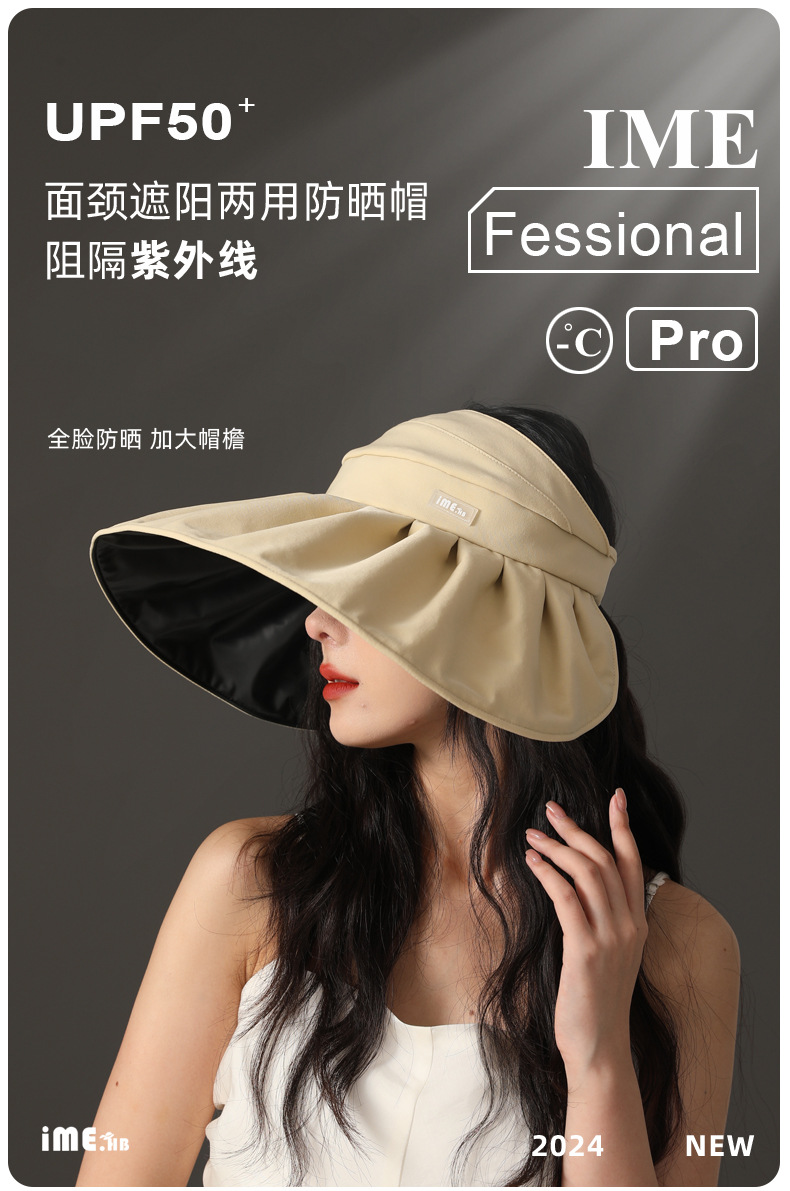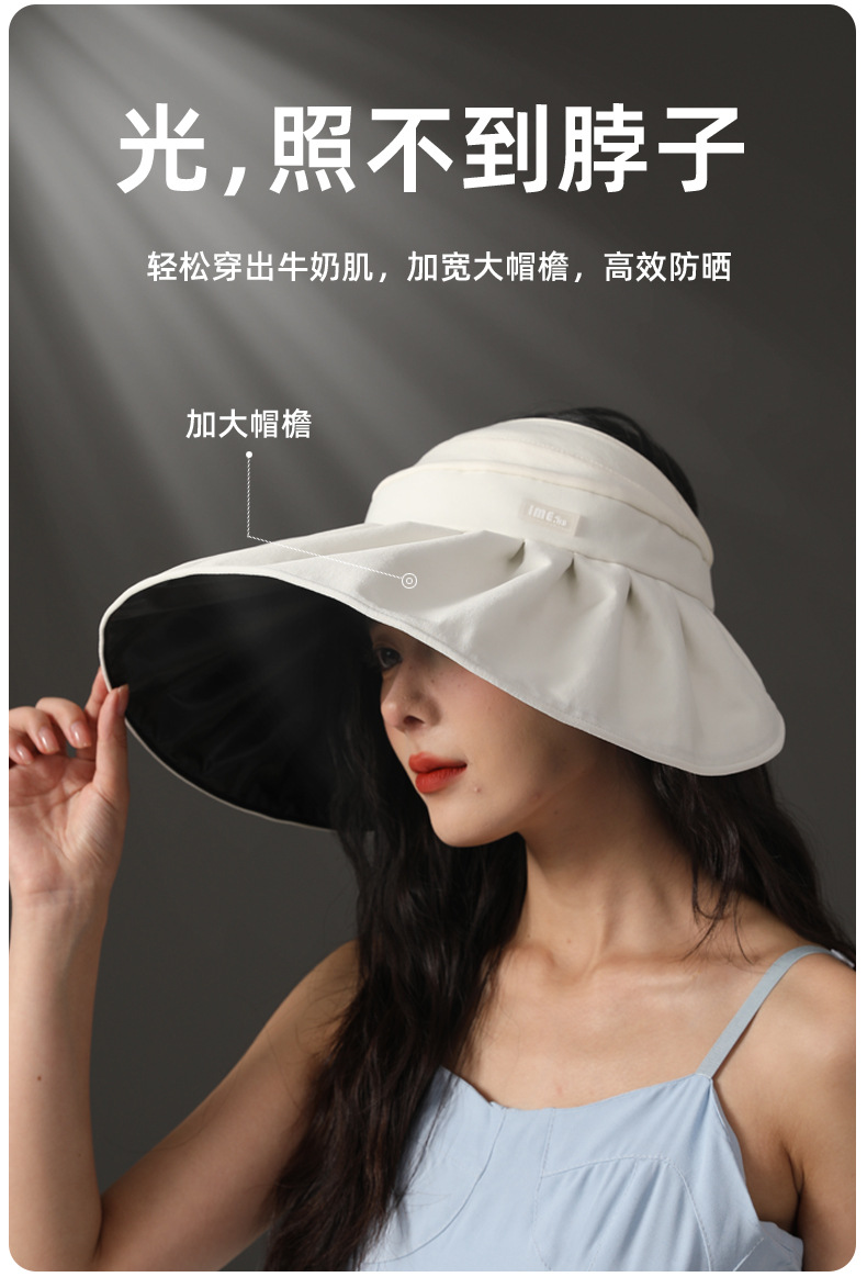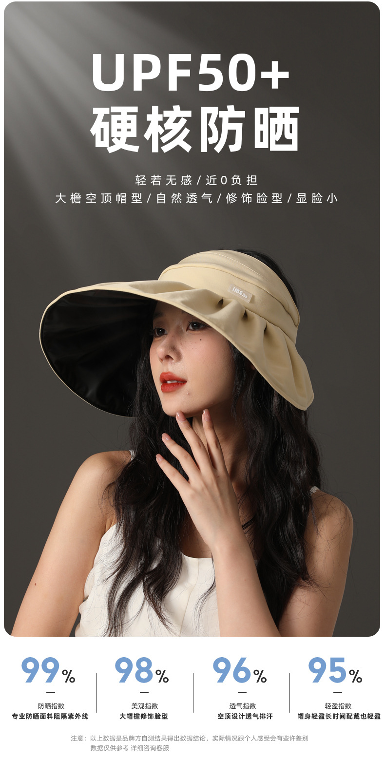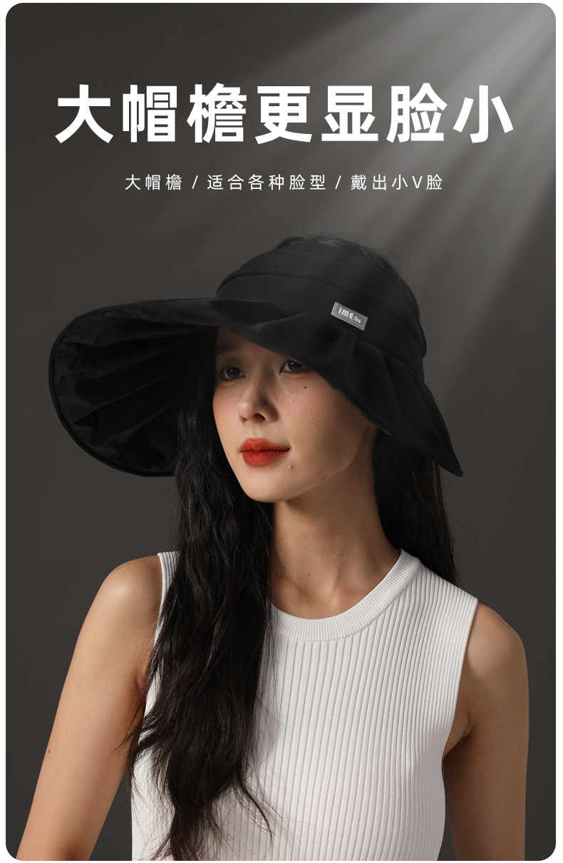 ime黑胶空顶帽防紫外线高级感大帽檐防晒帽子夏季遮阳女遮阳帽