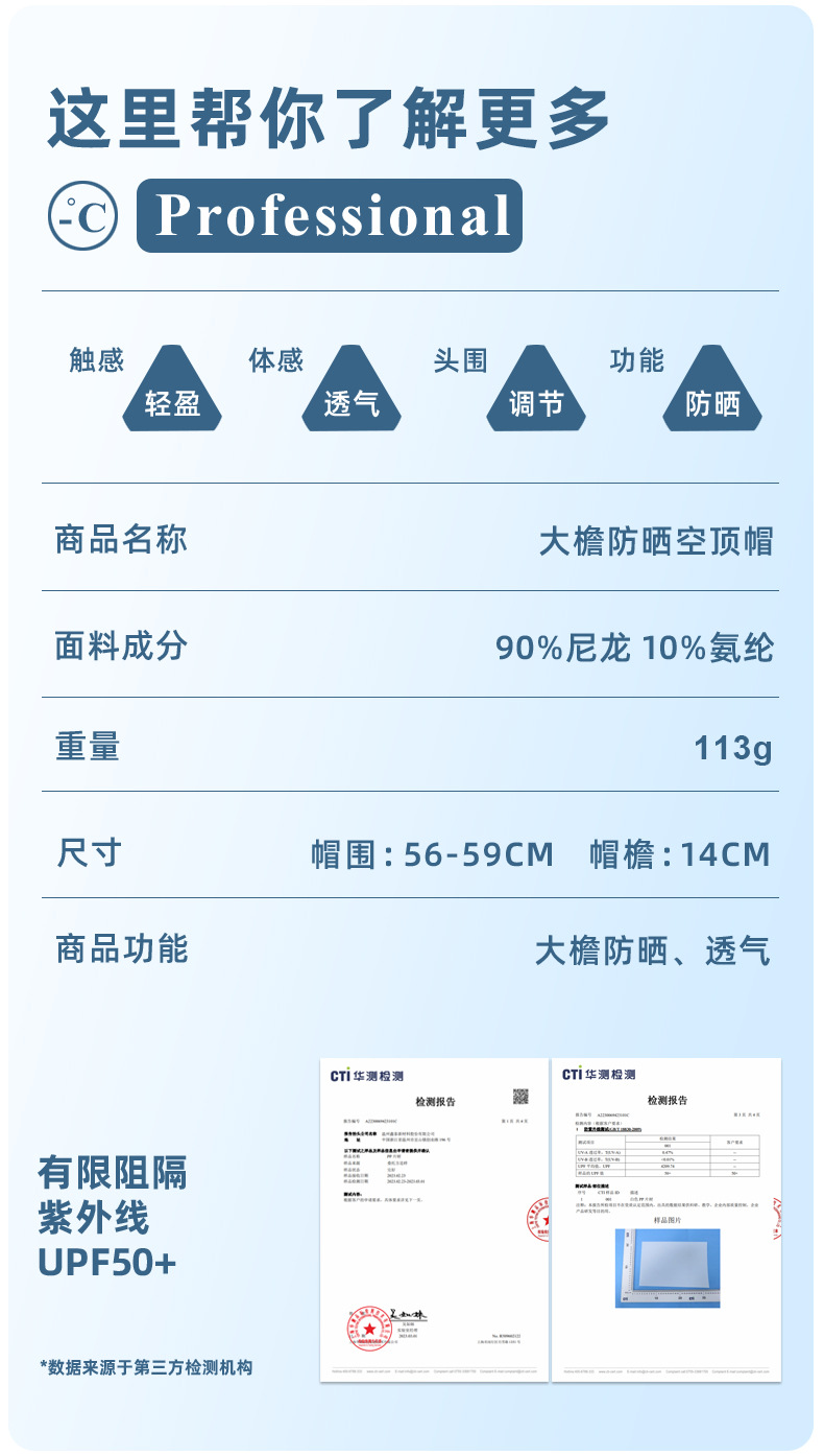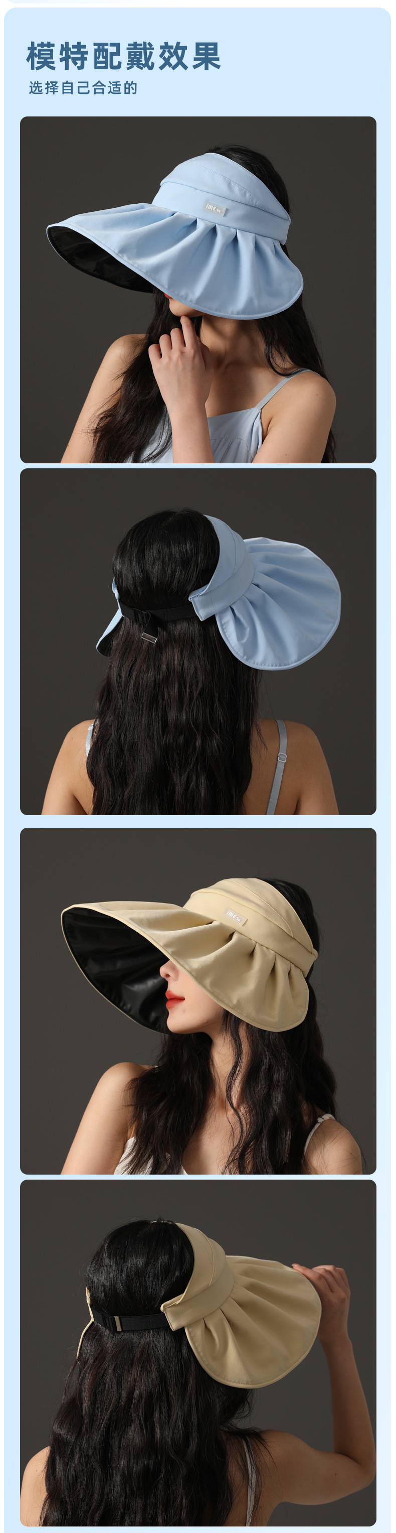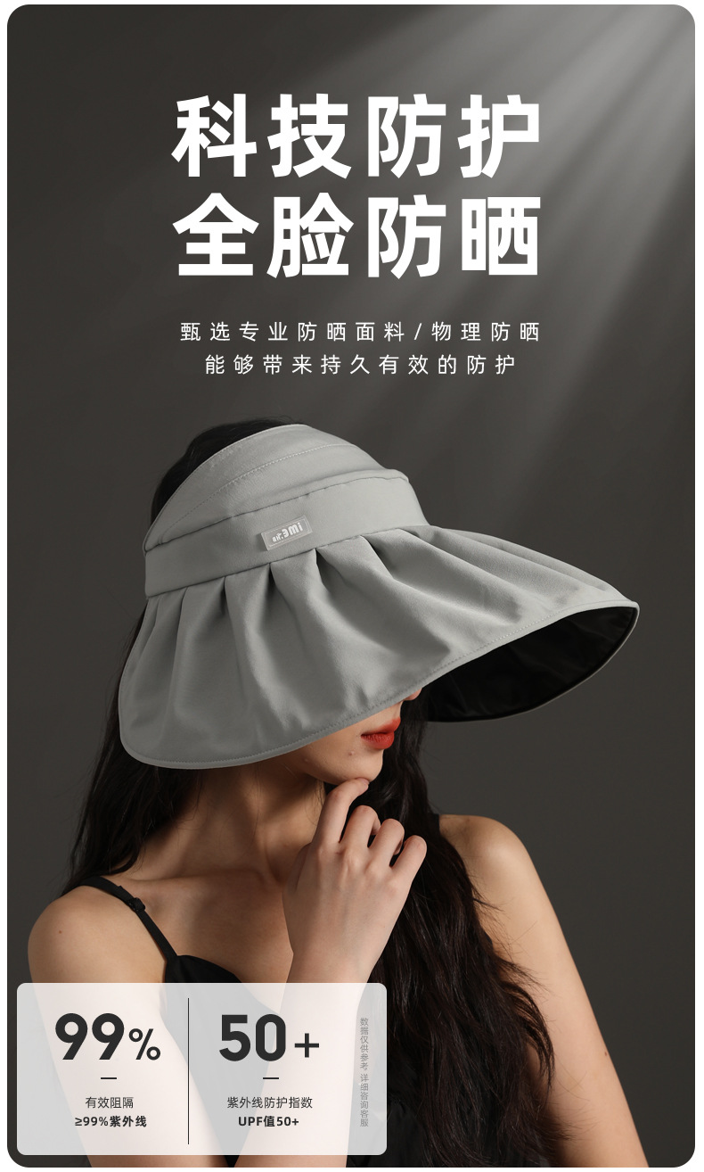 ime黑胶空顶帽防紫外线高级感大帽檐防晒帽子夏季遮阳女遮阳帽