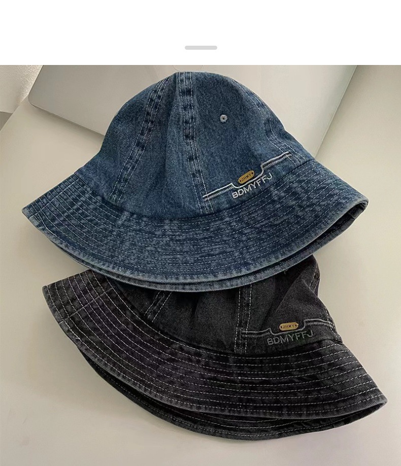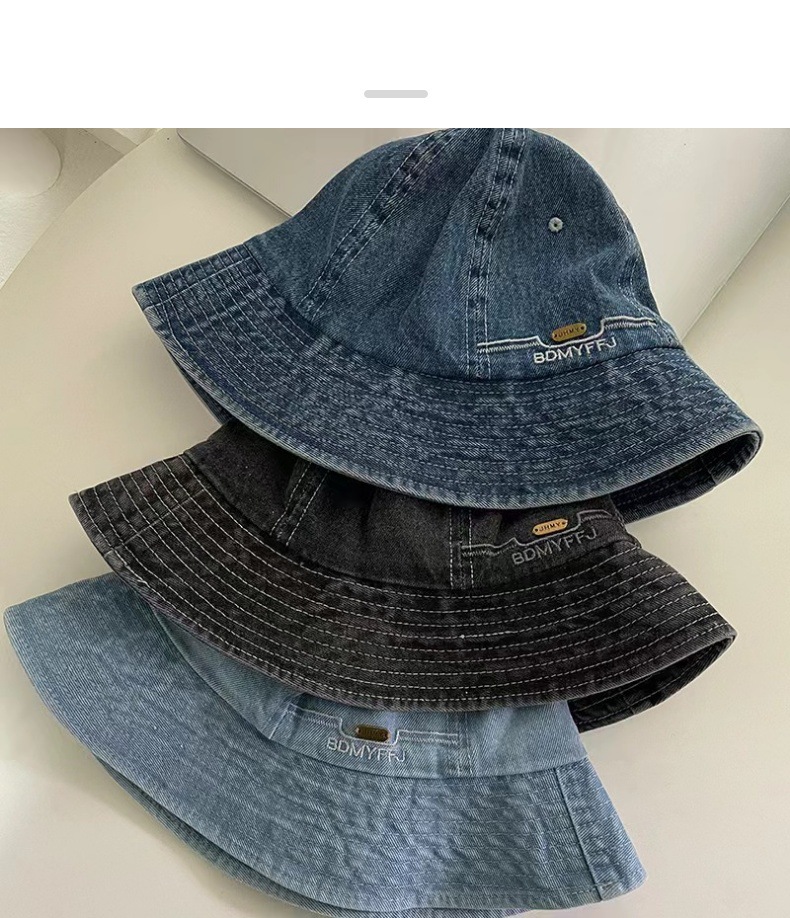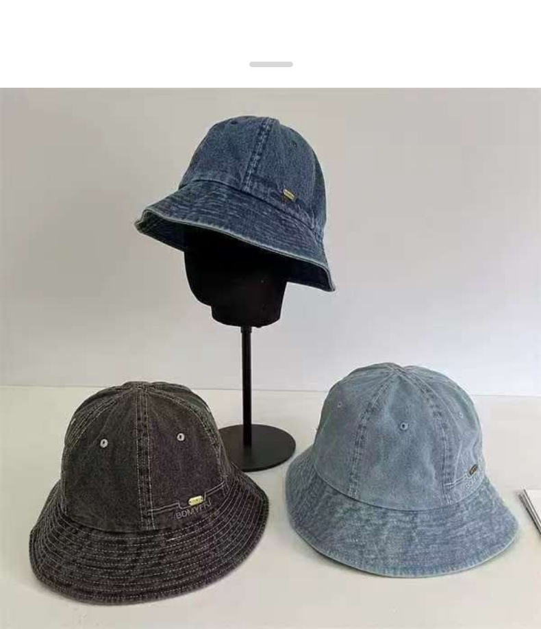 水洗牛仔渔夫帽女小标时尚百搭可折叠盆帽户外春秋季显脸小遮阳帽