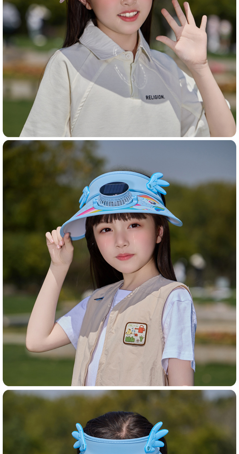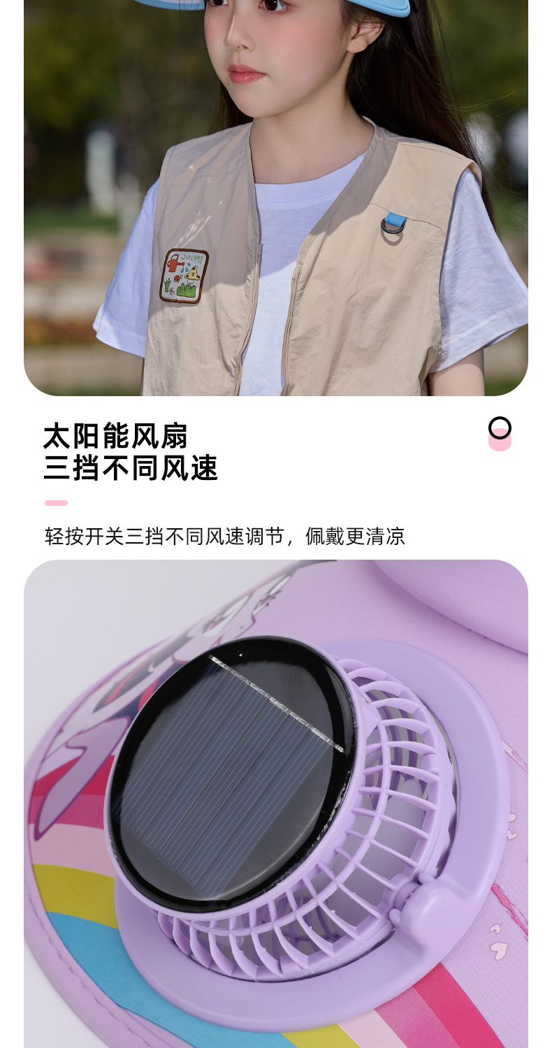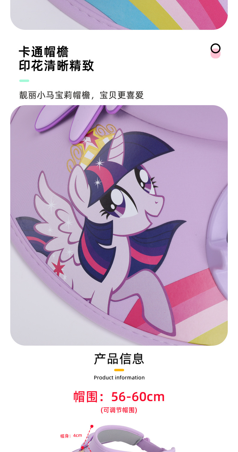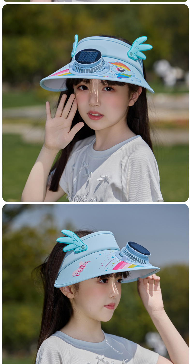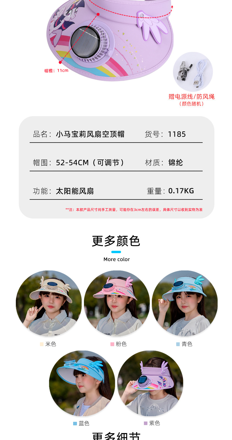 小马宝莉儿童卡通防晒空顶帽带风扇夏季男女童防紫外线遮阳帽