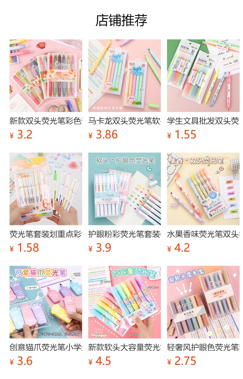 新款熊猫荧光笔自然色系划重点笔方杆可爱ins风高颜值斜头手账笔