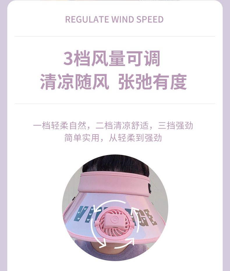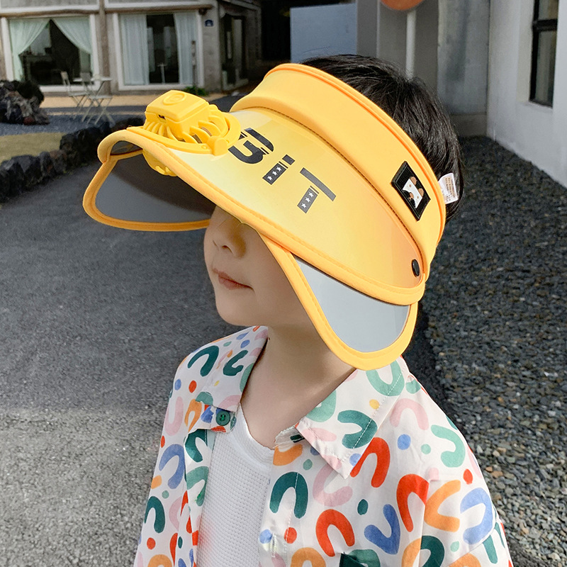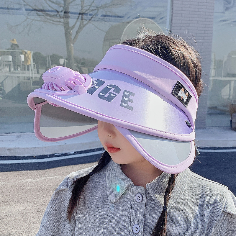 儿童空顶帽女夏季亲子风扇帽防紫外线防晒遮阳帽大檐宝宝太阳帽