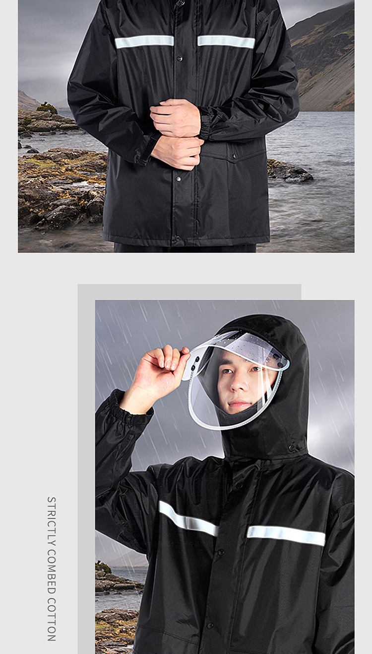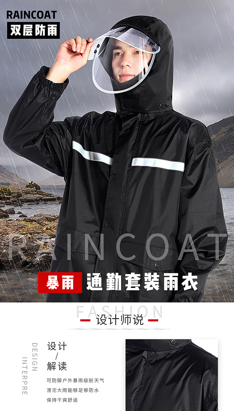 跨境PVC加厚双层劳保雨衣雨裤套装防暴雨双檐帽高反光雨衣批发
