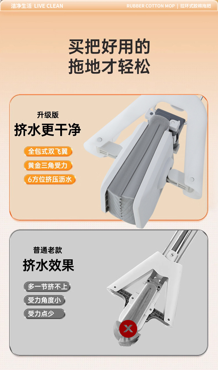 免手洗双滚轮吸水海绵拖把家用地板地拖
