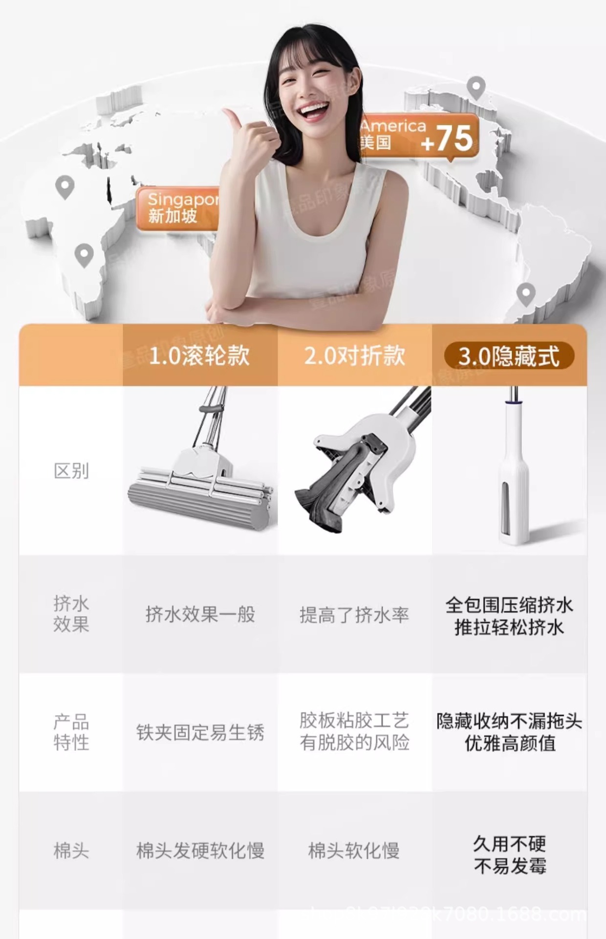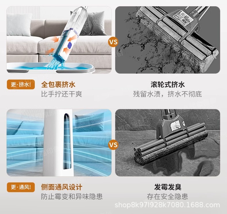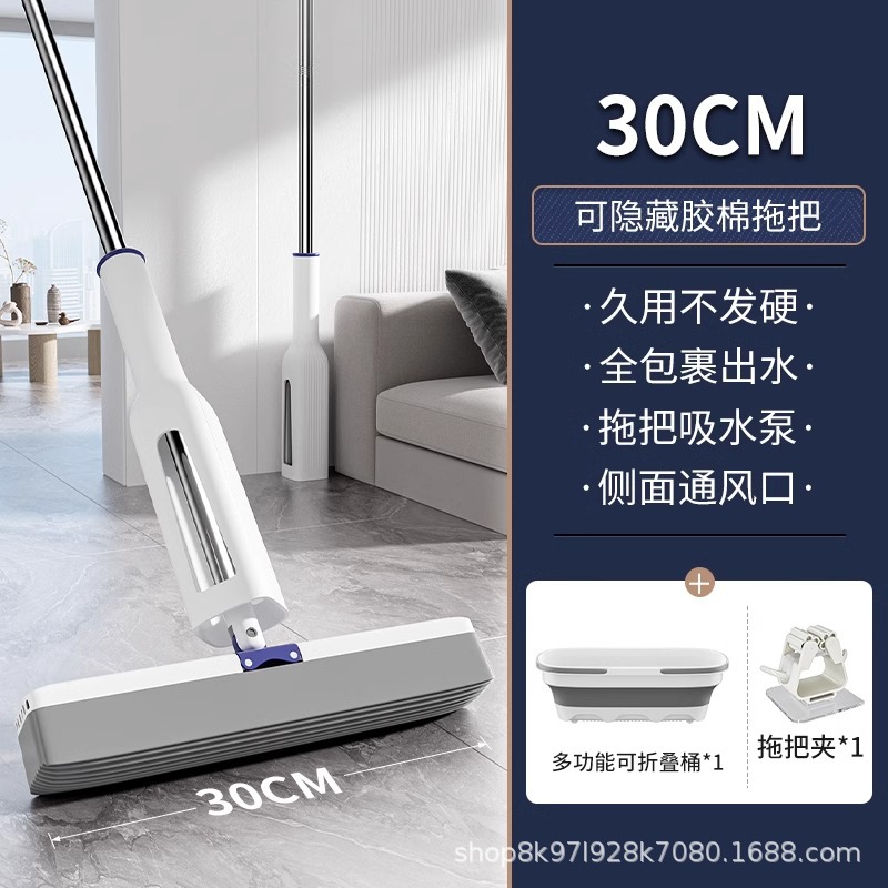 胶棉海绵拖把头2025新款家用卫生间吸水拖把免手洗神器一拖净拖布