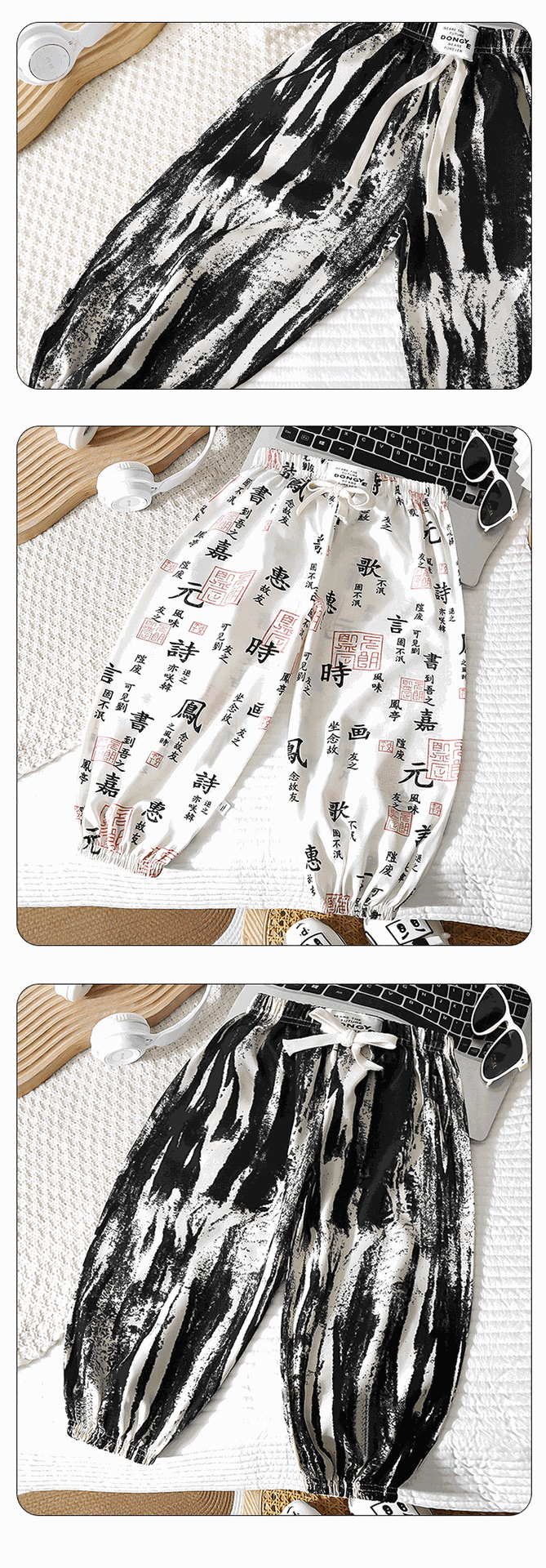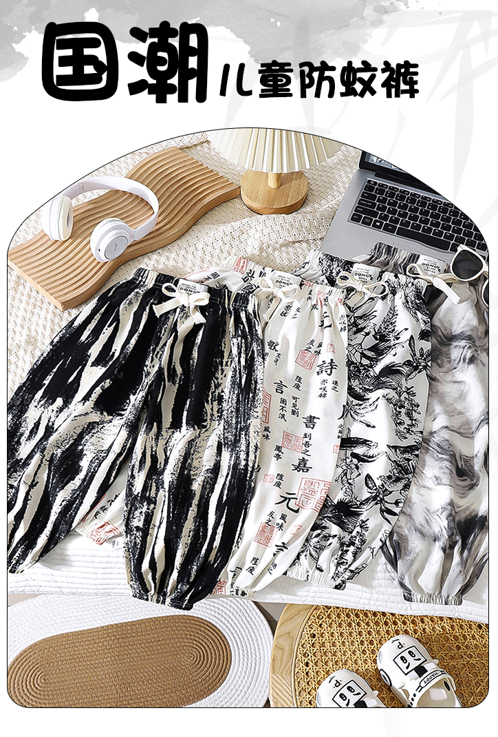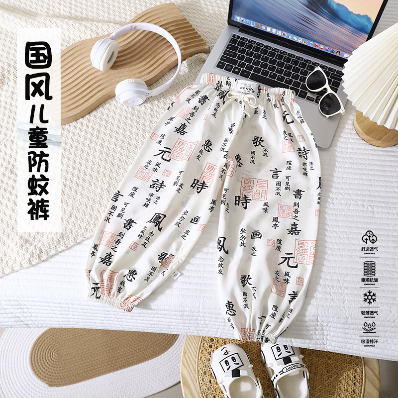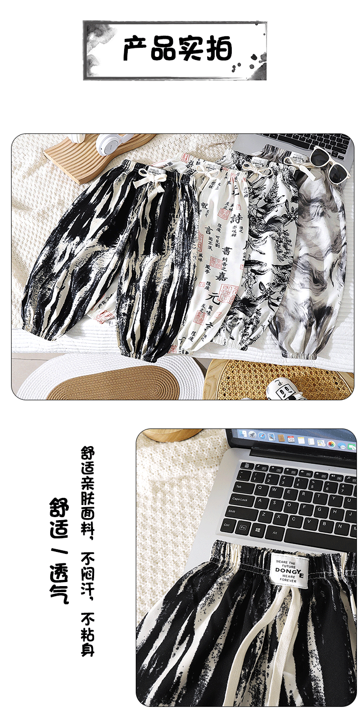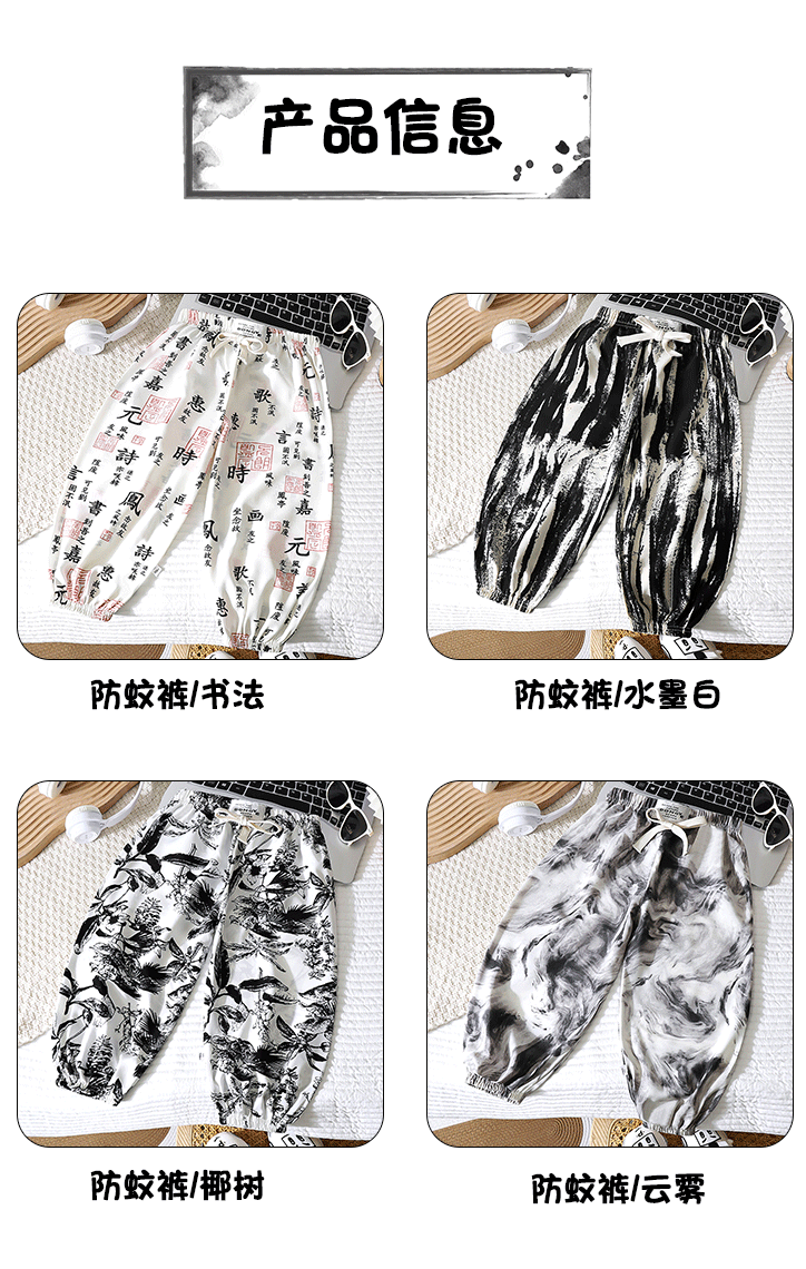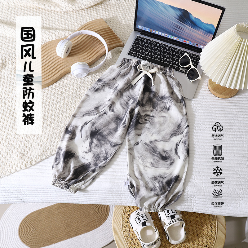 新款儿童防蚊裤男童国风 水墨画女童夏季裤子童装哈伦裤子批发