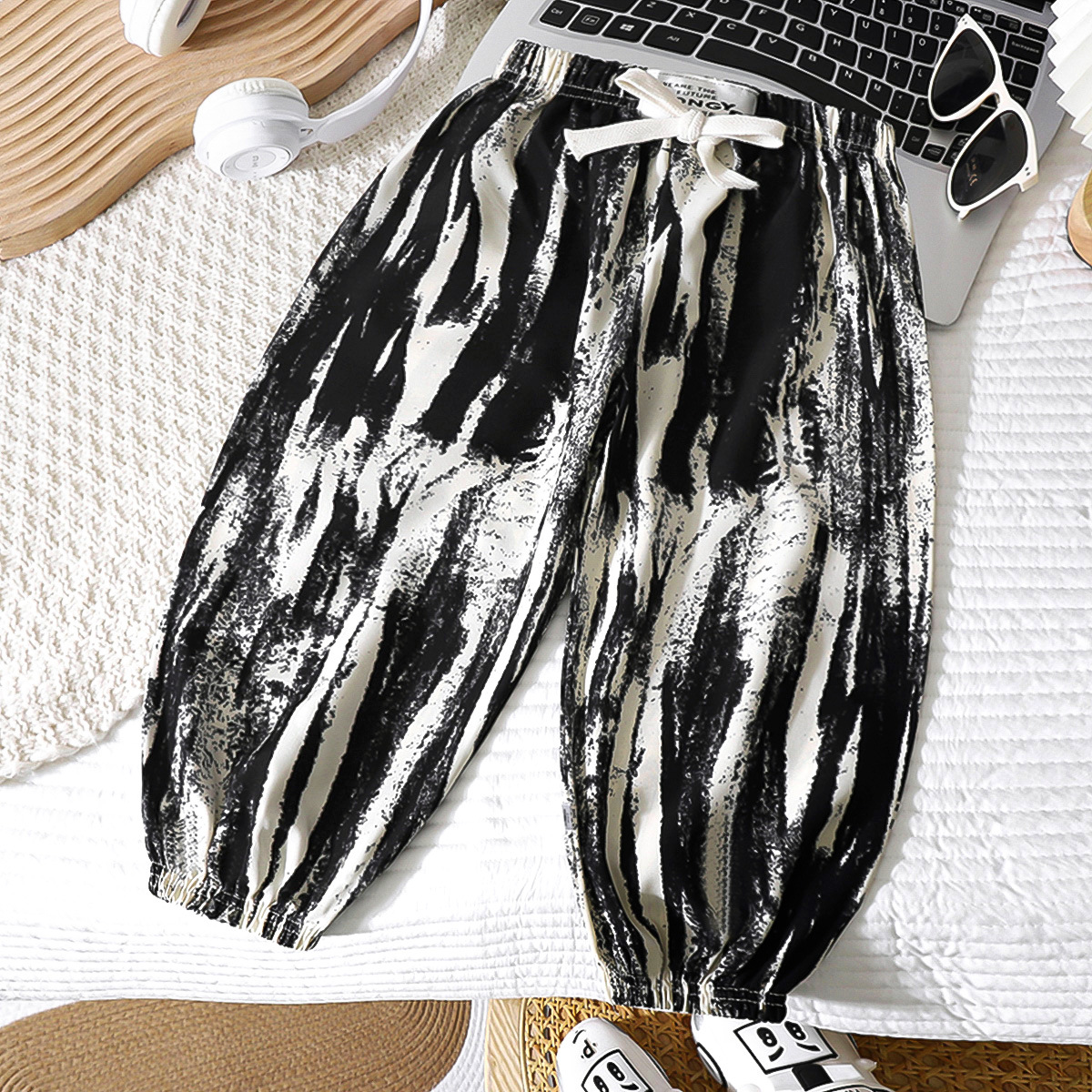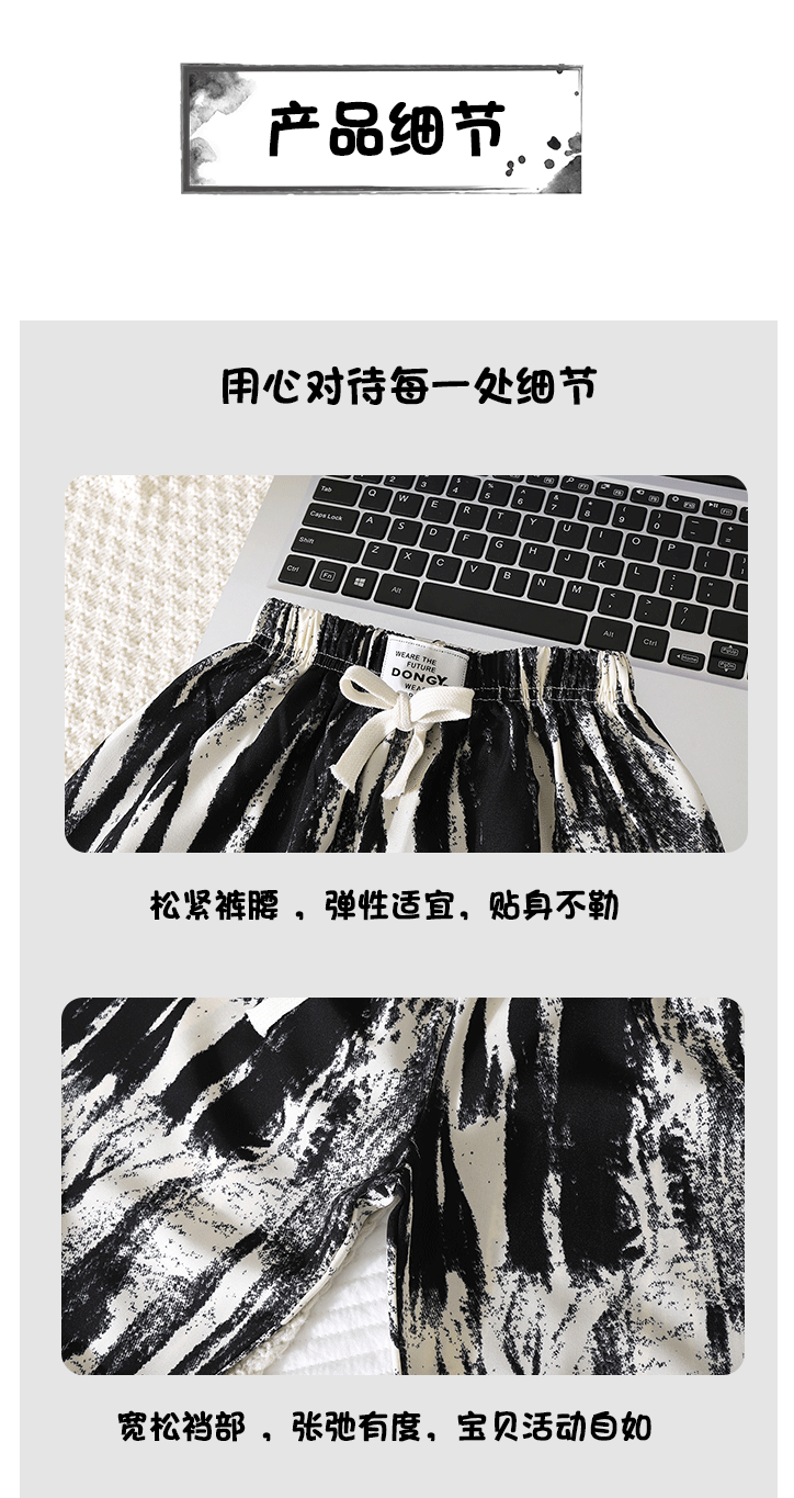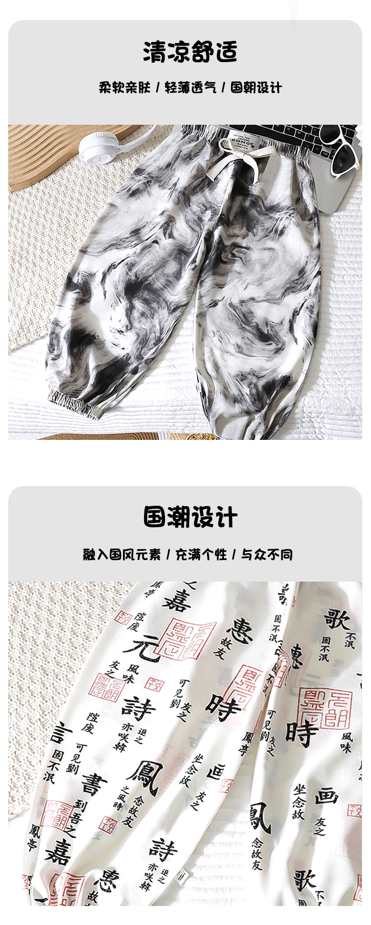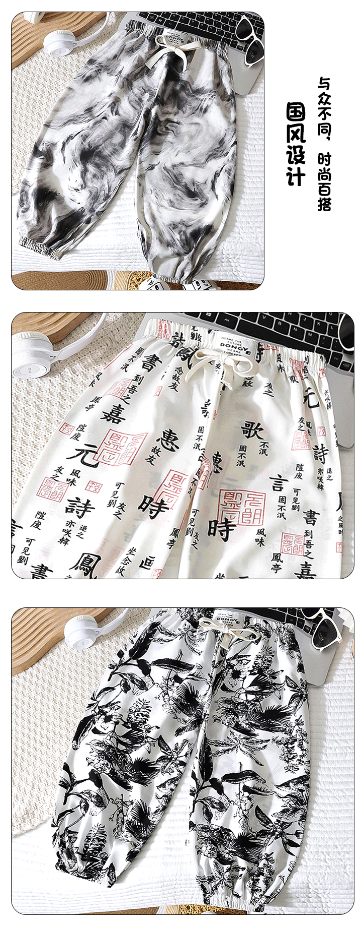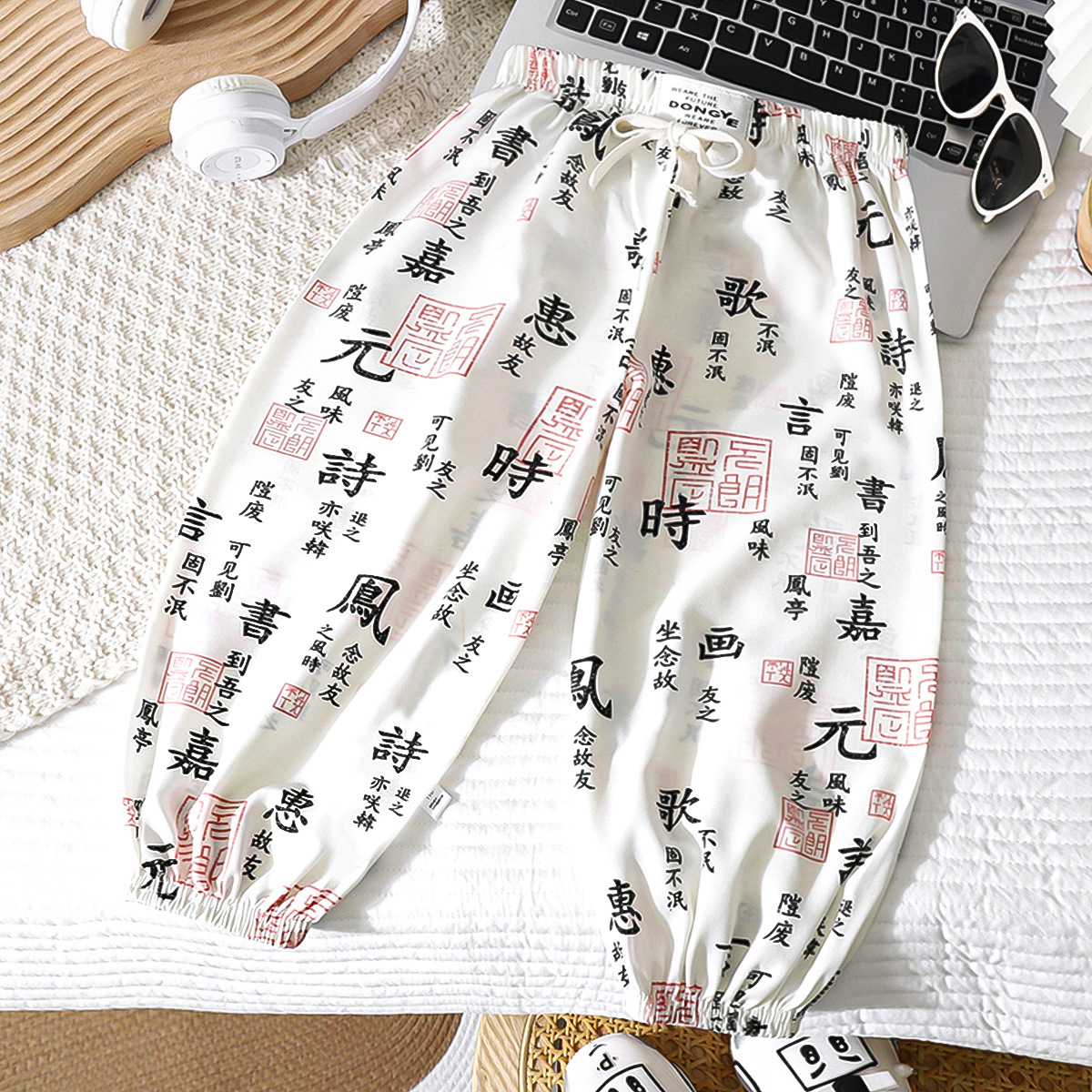 新款儿童防蚊裤男童国风 水墨画女童夏季裤子童装哈伦裤子批发