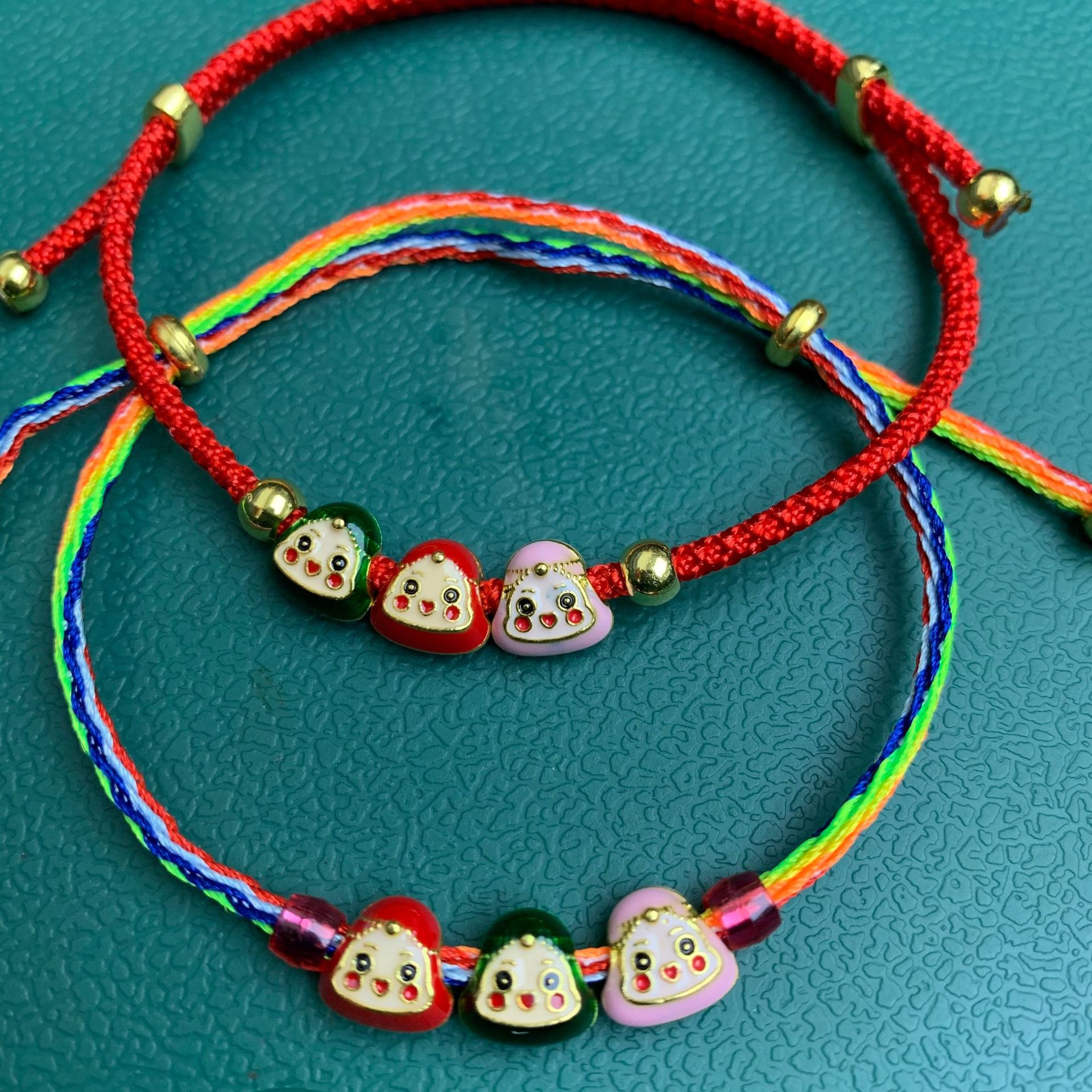 出炉小号三色三棕宝手链合金吊坠五彩绳红绳手工编织红绳手绳