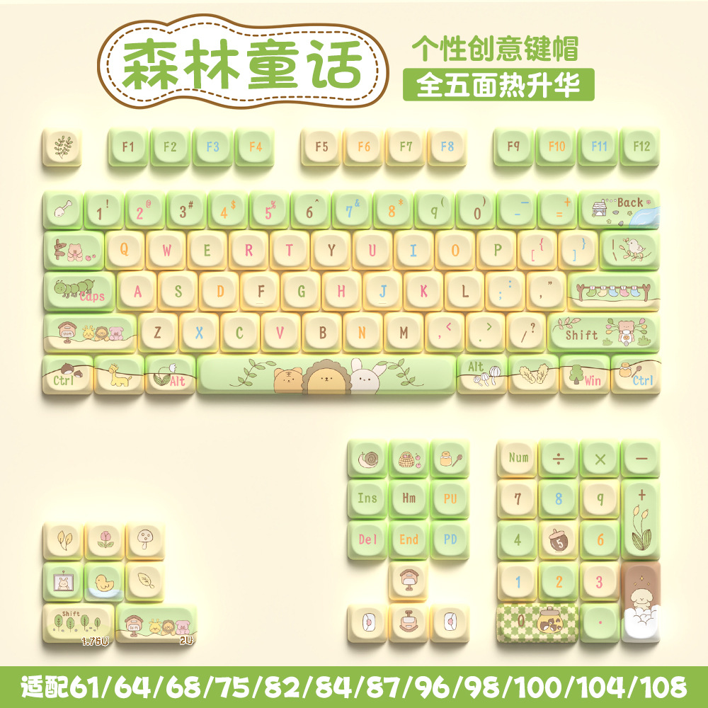 112键可爱个性键帽 全五面PBT热升华客制化机械键盘帽68/75/84/98