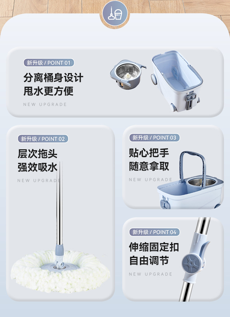 旋转拖把免手洗2024新款家用一拖净水桶一体墩布桶甩干拖地桶拖布