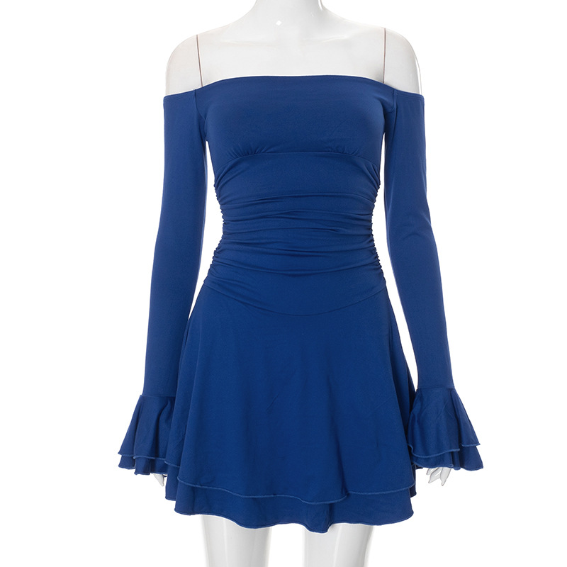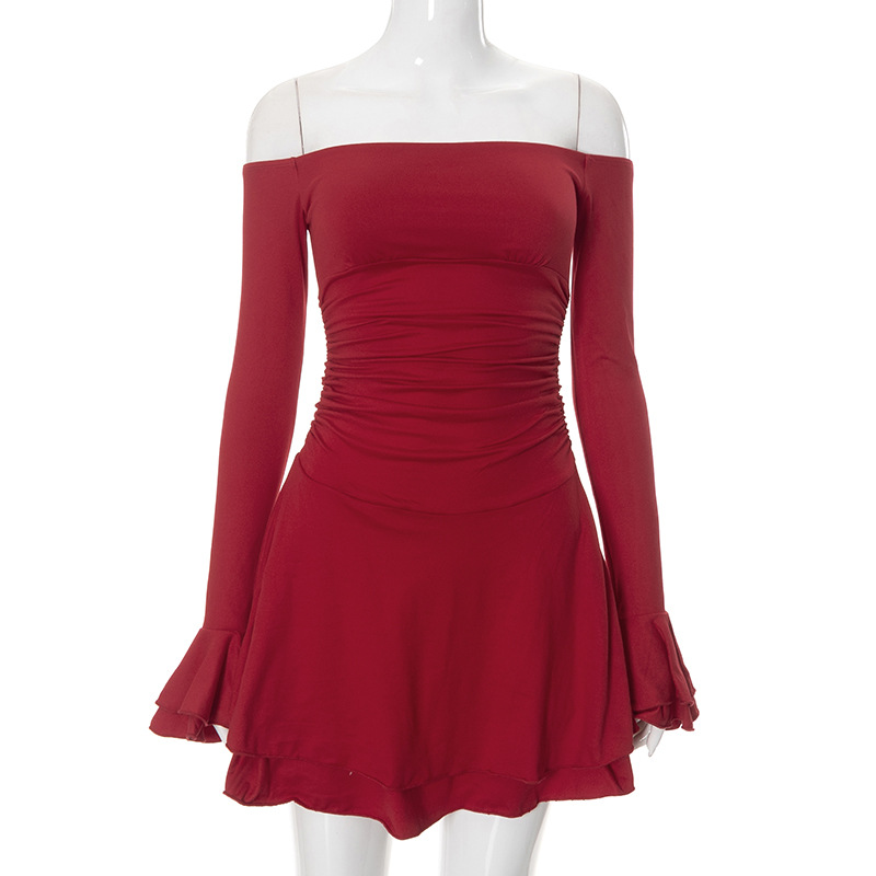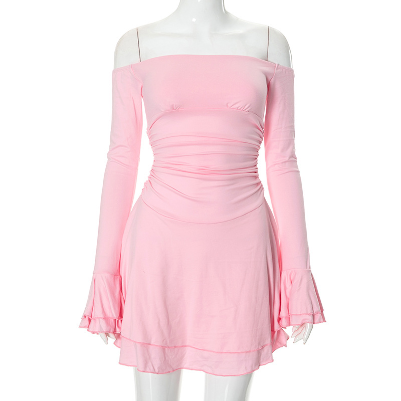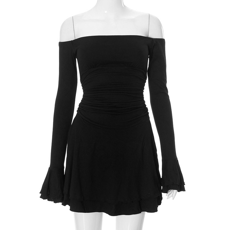 M23DS735欧美女装2024新款时尚修身高腰百褶裙纯色抹胸连衣裙批发