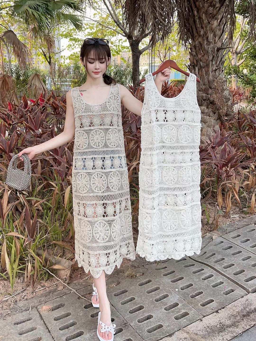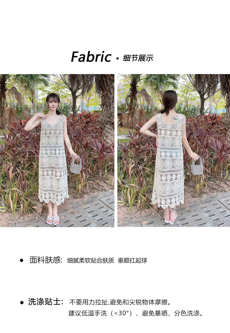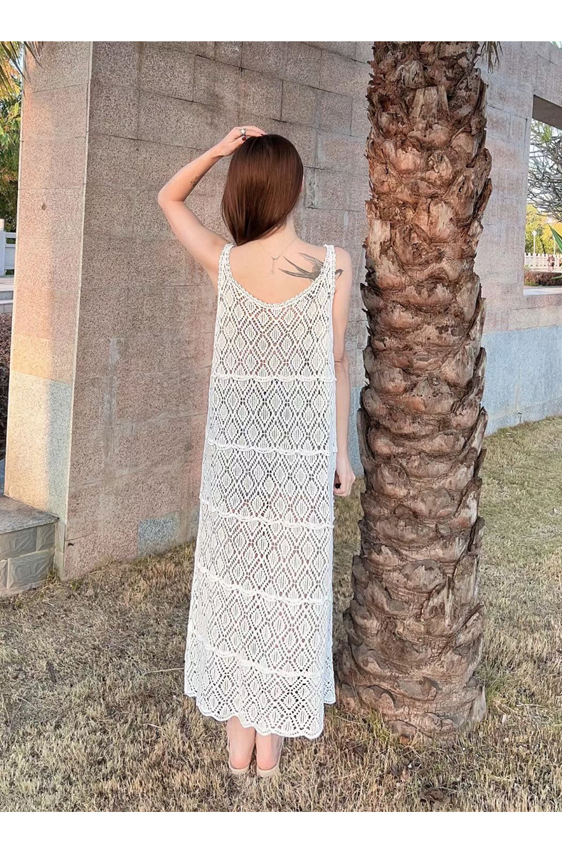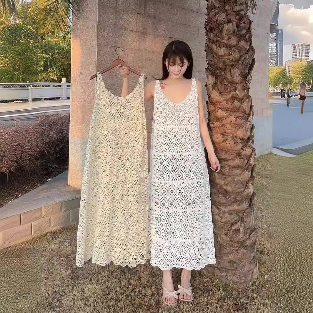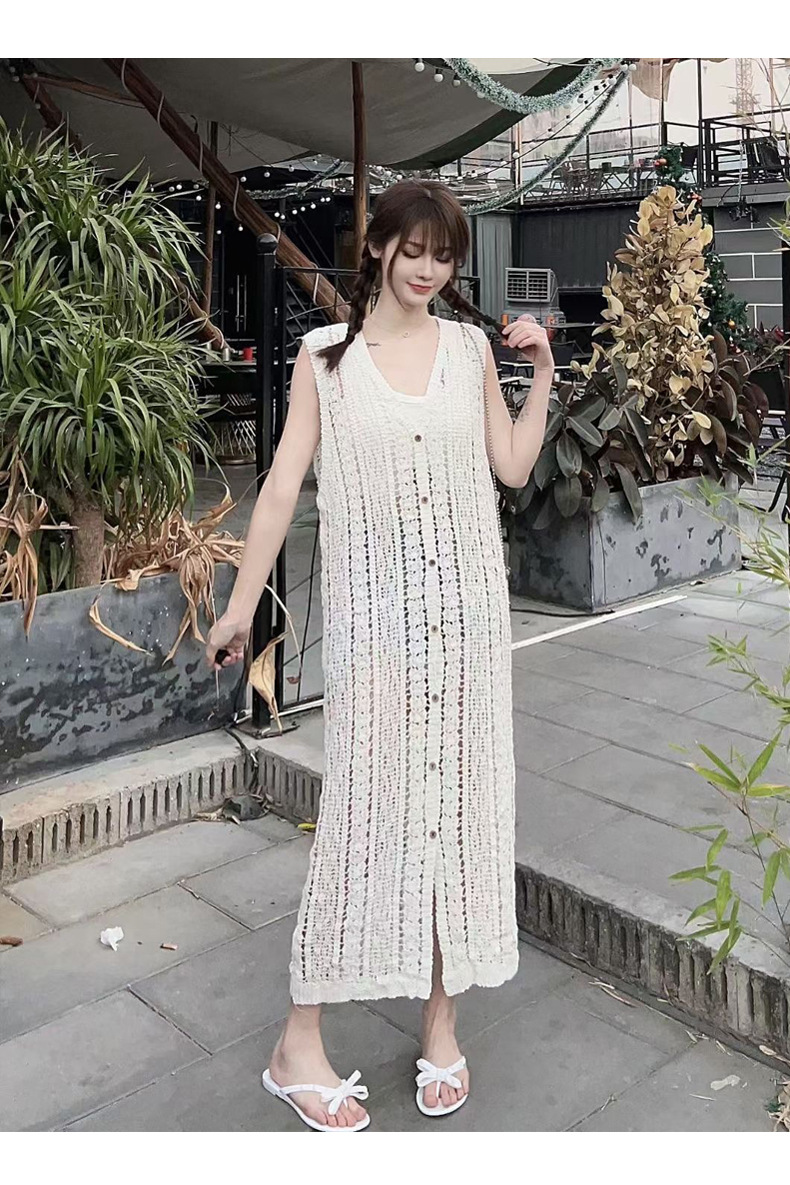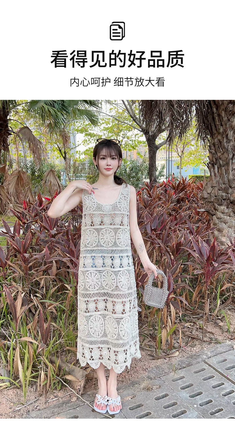 2025镂空罩衫针织吊带连衣裙女夏宽松叠穿罩衫海边度假无袖背心裙