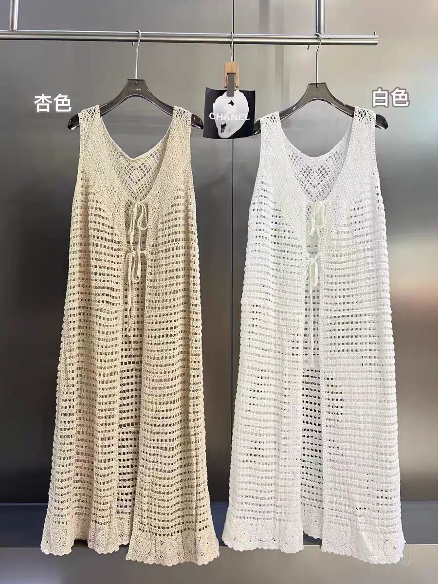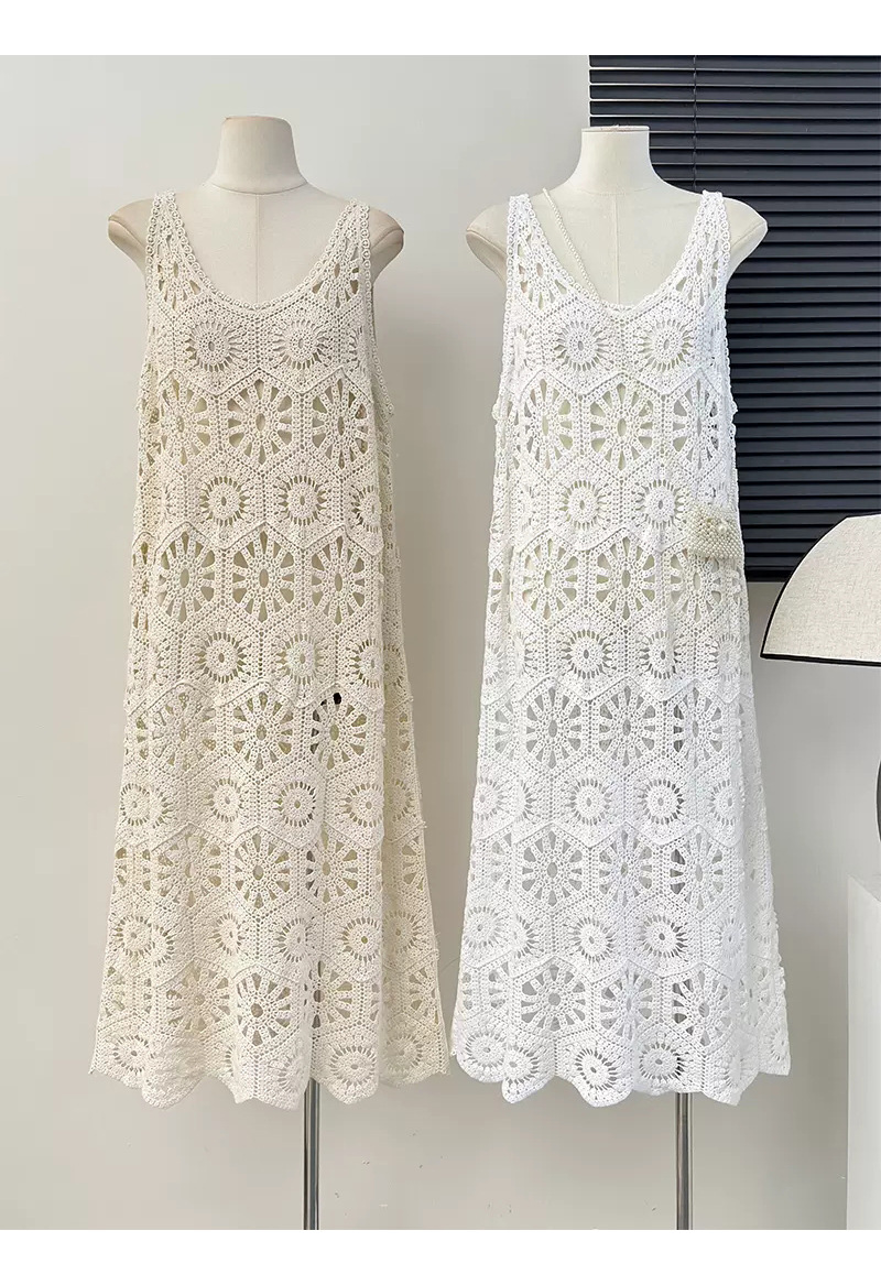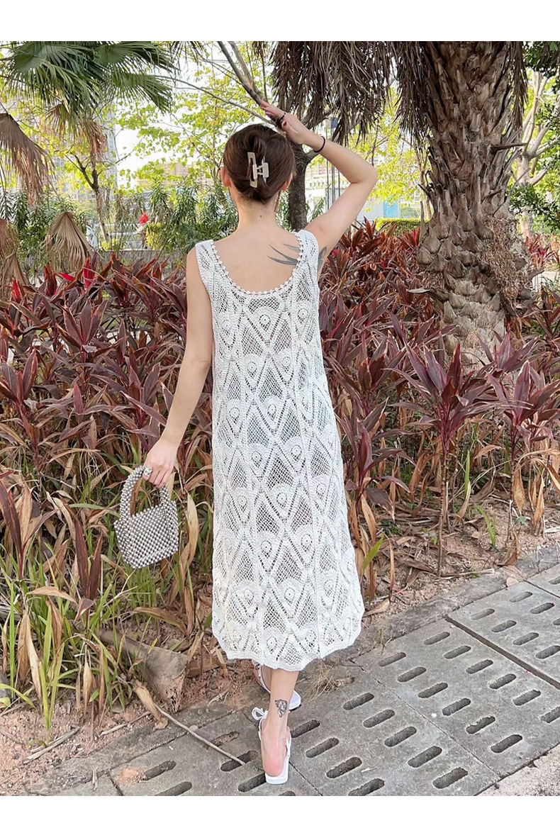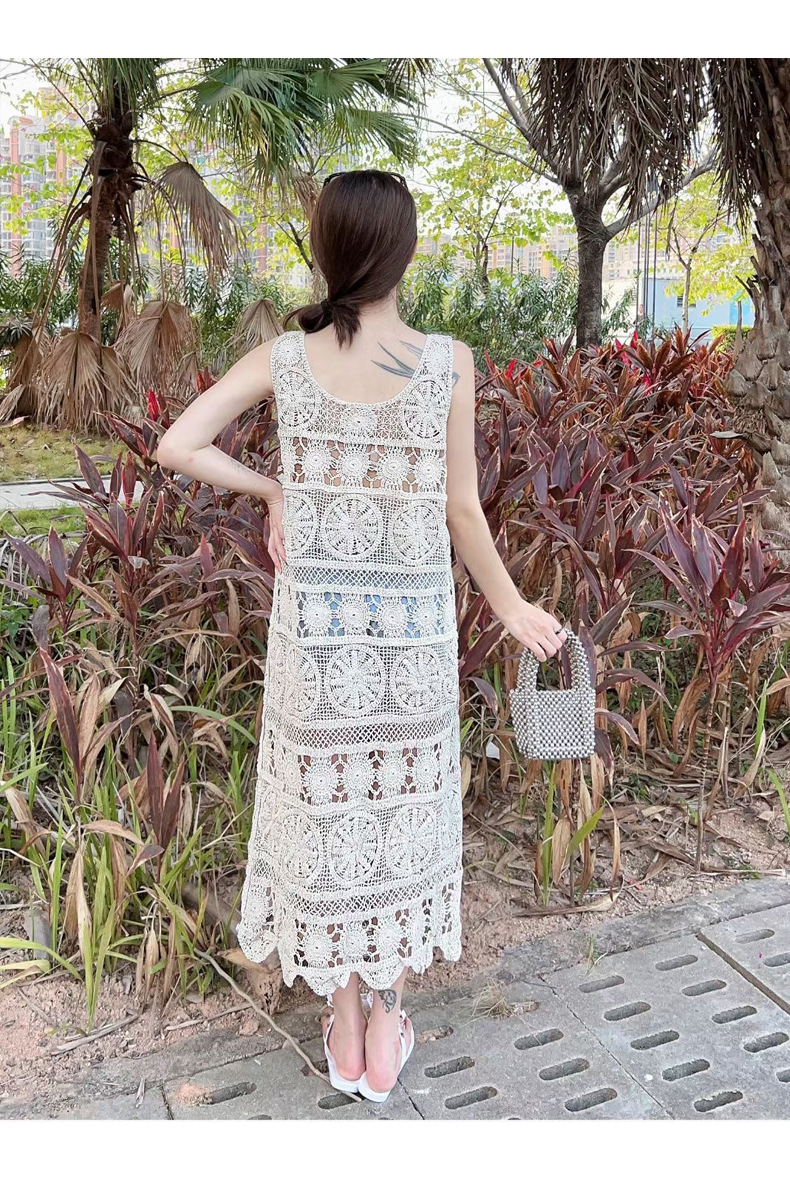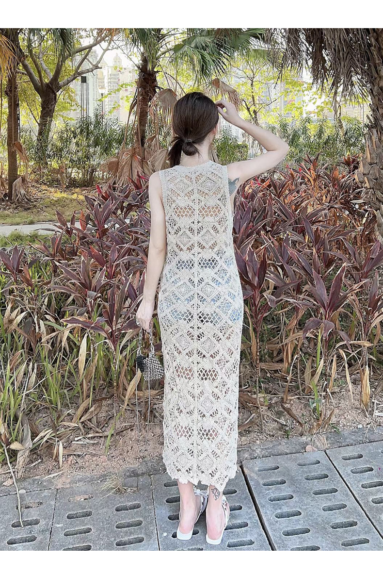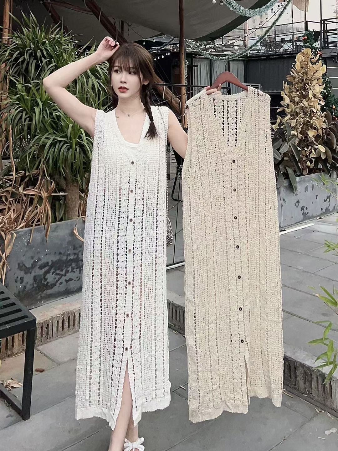 2025镂空罩衫针织吊带连衣裙女夏宽松叠穿罩衫海边度假无袖背心裙