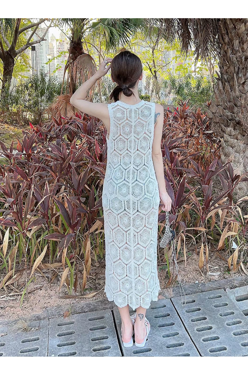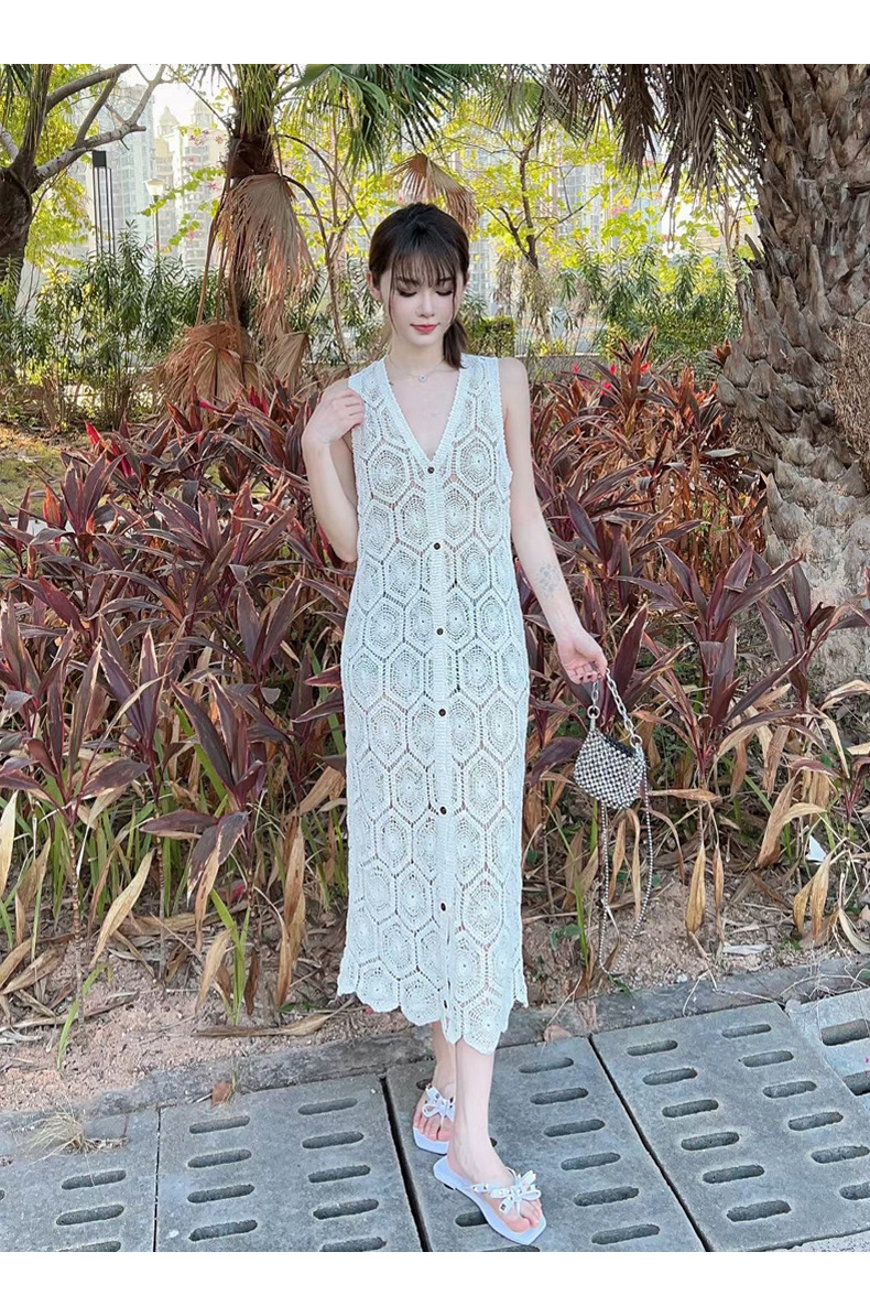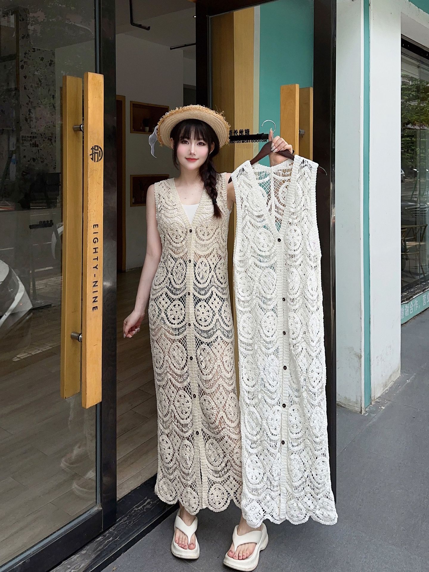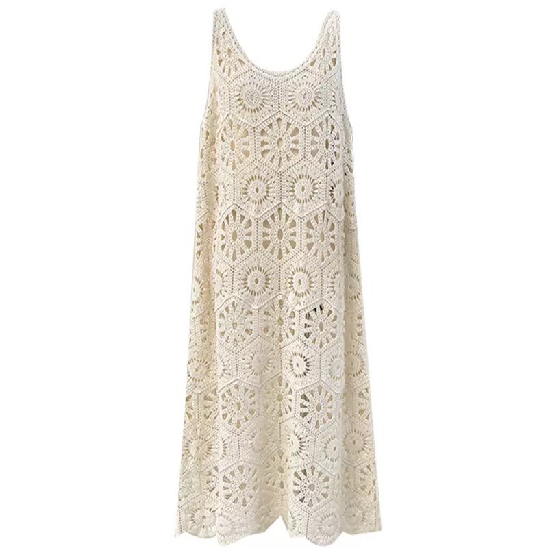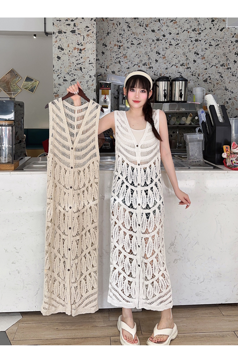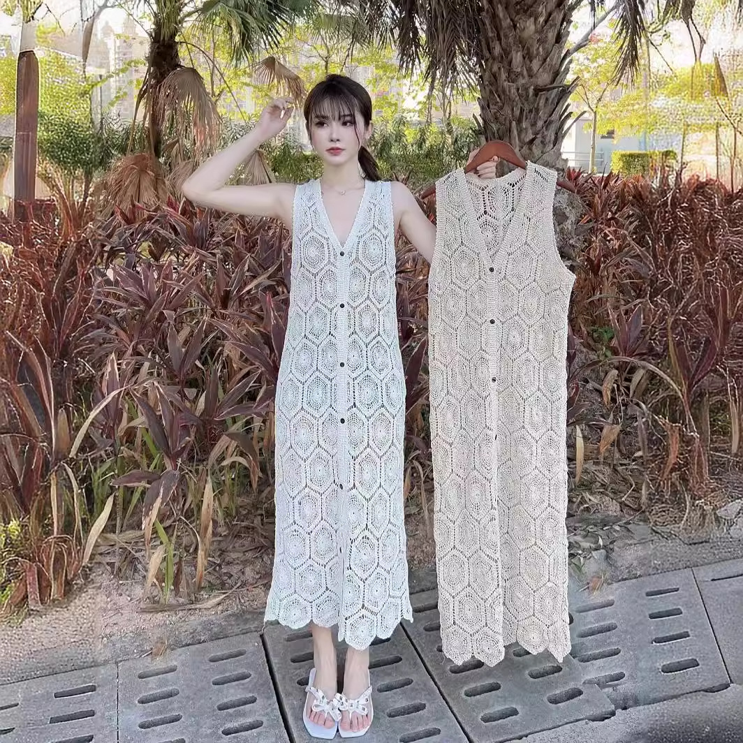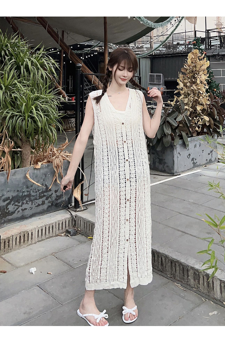 2025镂空罩衫针织吊带连衣裙女夏宽松叠穿罩衫海边度假无袖背心裙