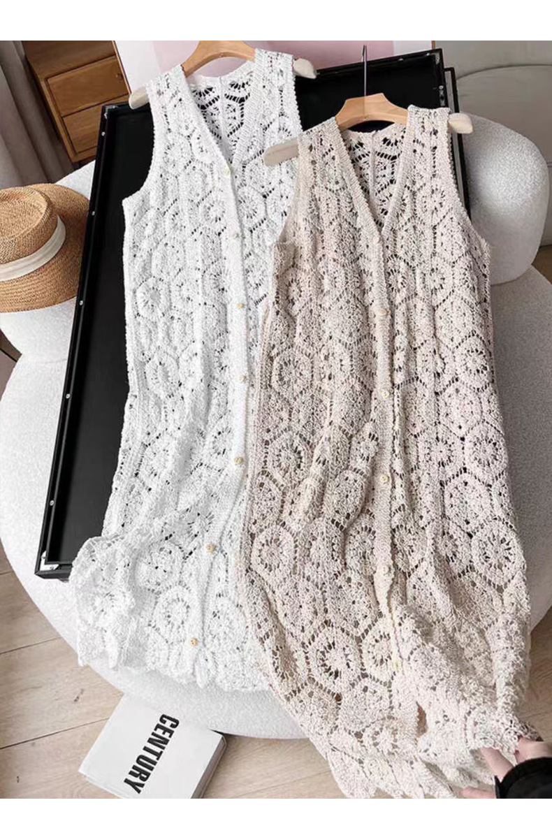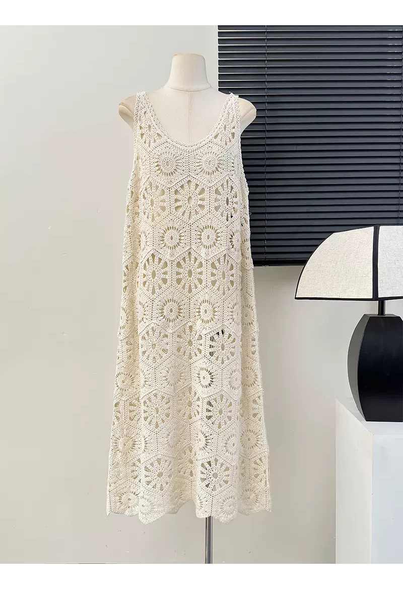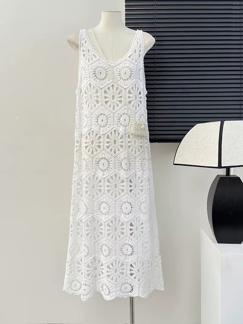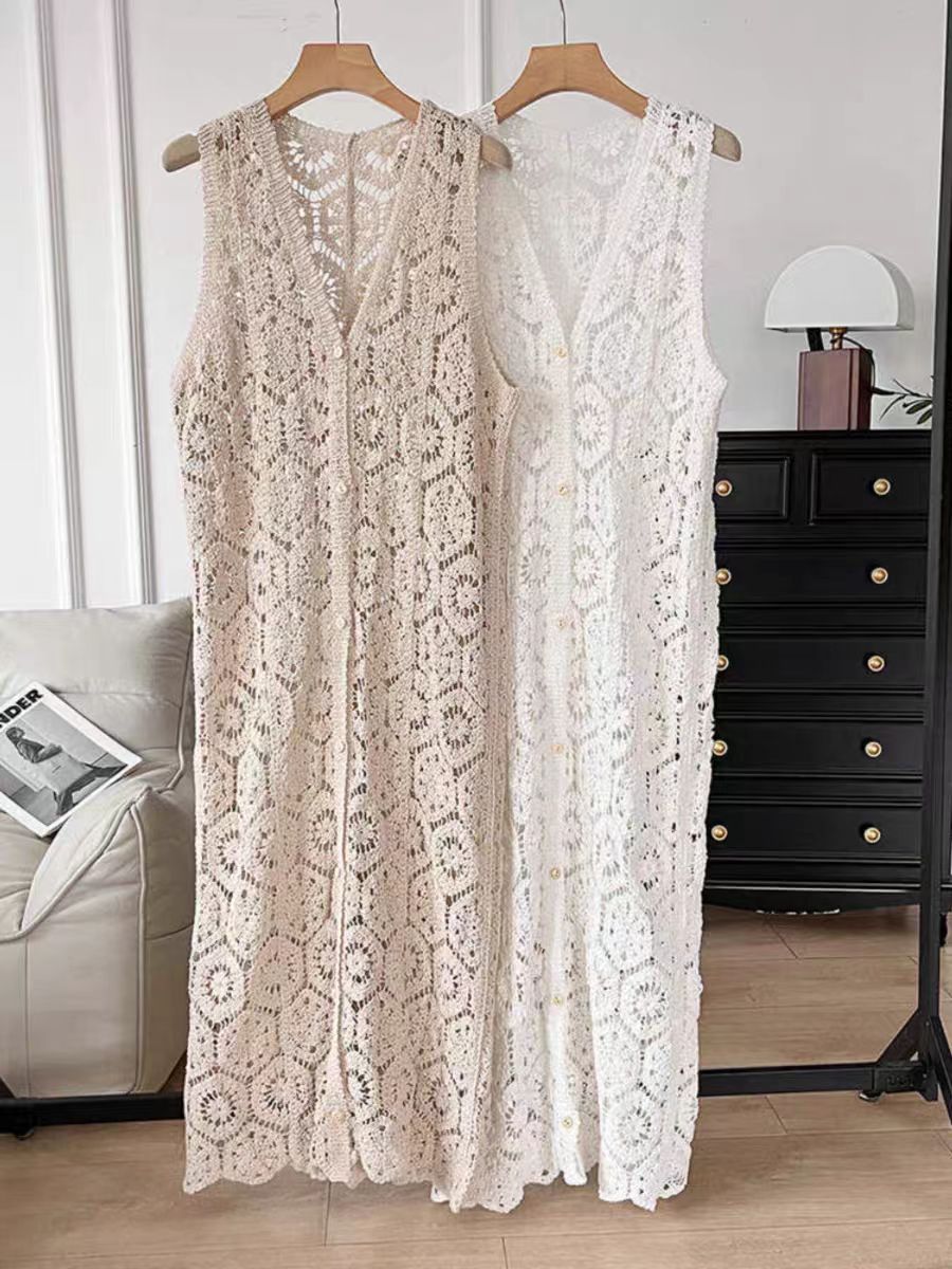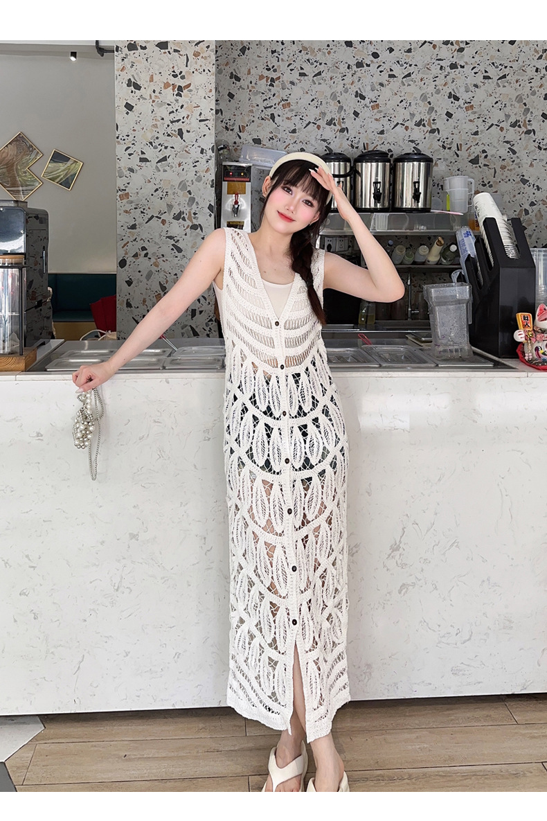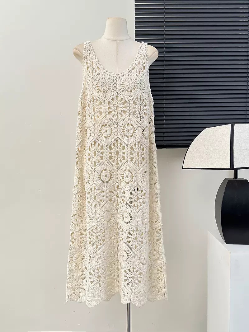 2025镂空罩衫针织吊带连衣裙女夏宽松叠穿罩衫海边度假无袖背心裙