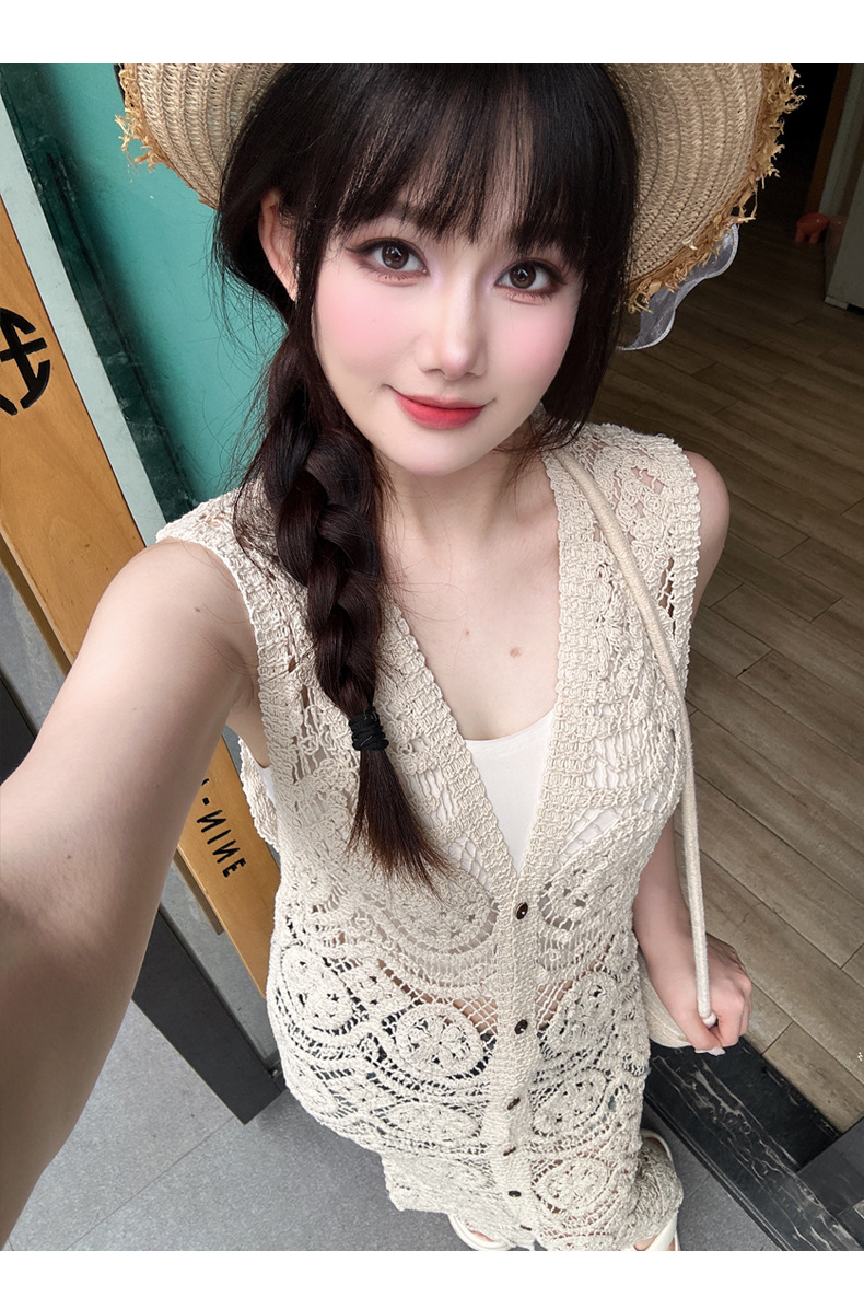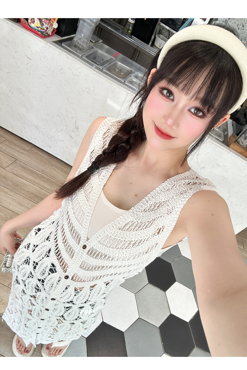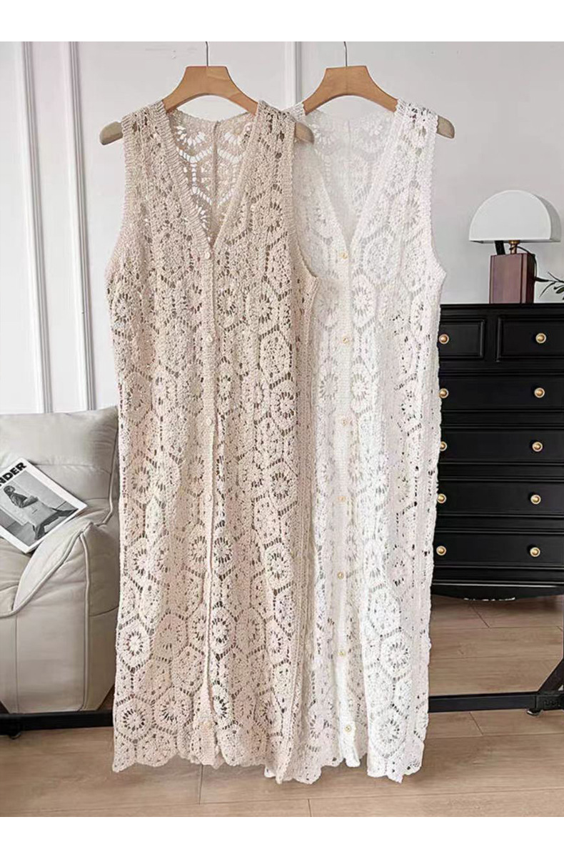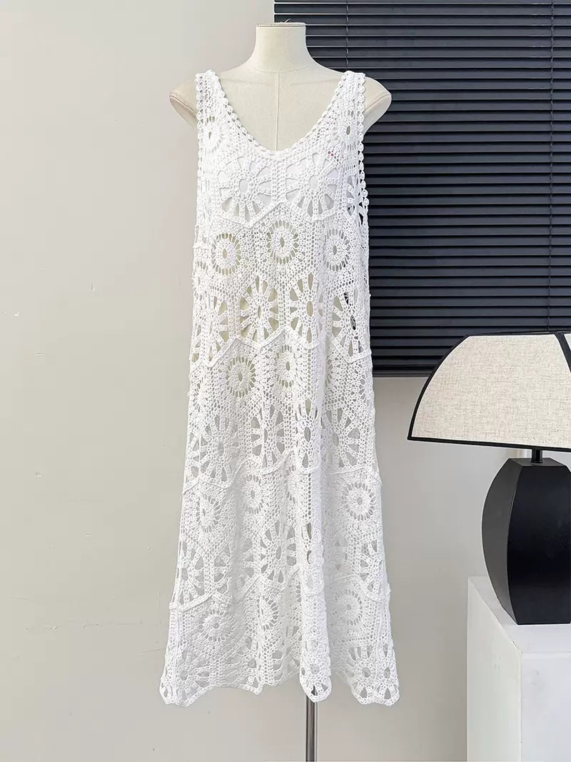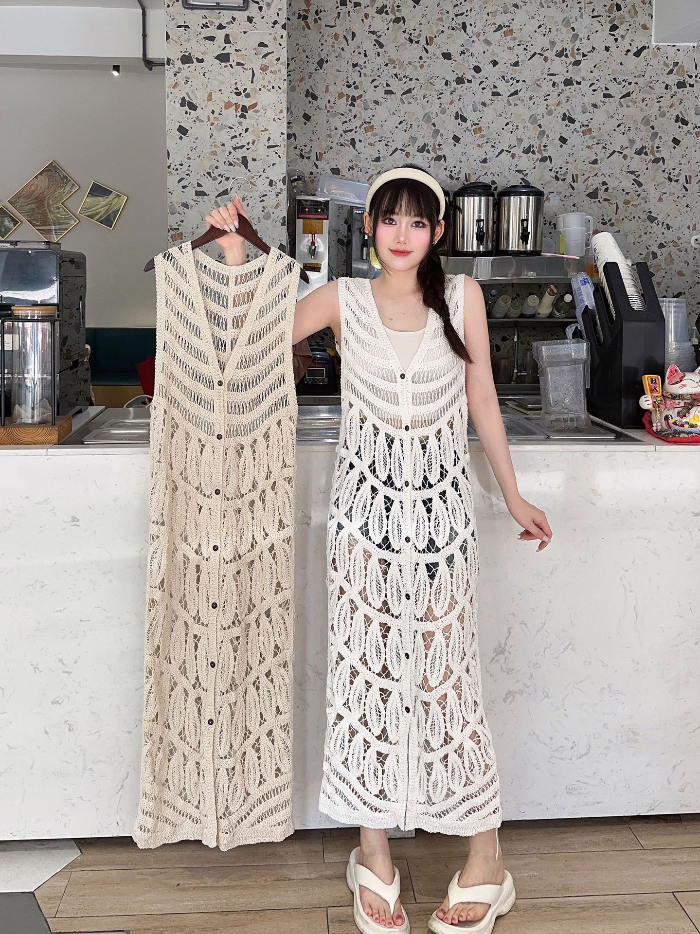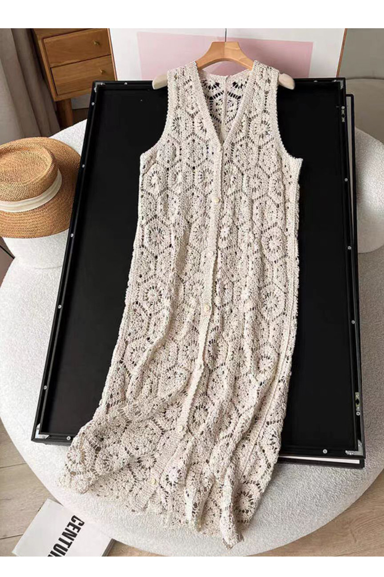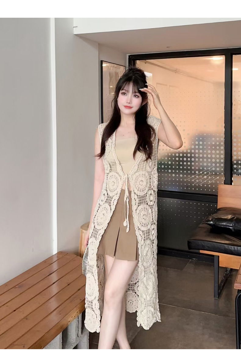 2025镂空罩衫针织吊带连衣裙女夏宽松叠穿罩衫海边度假无袖背心裙