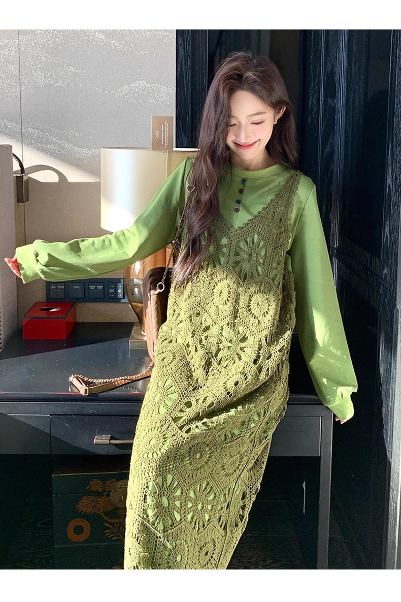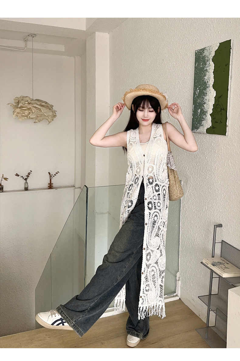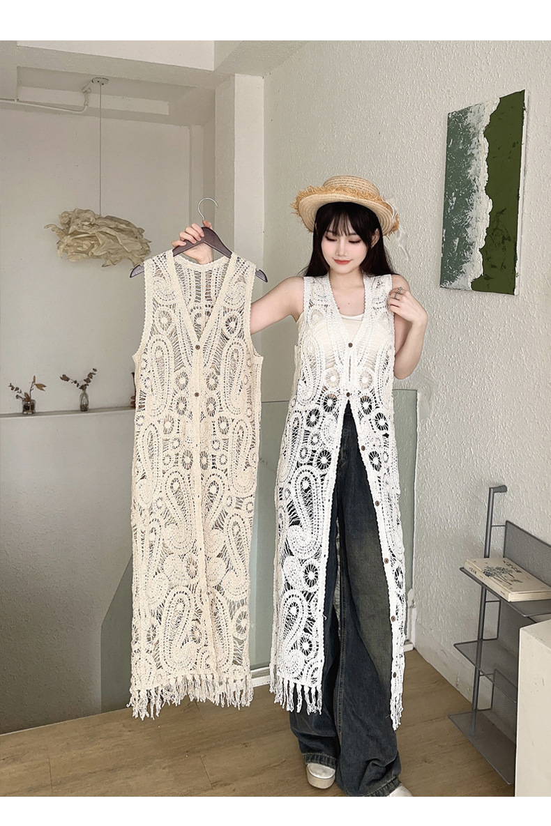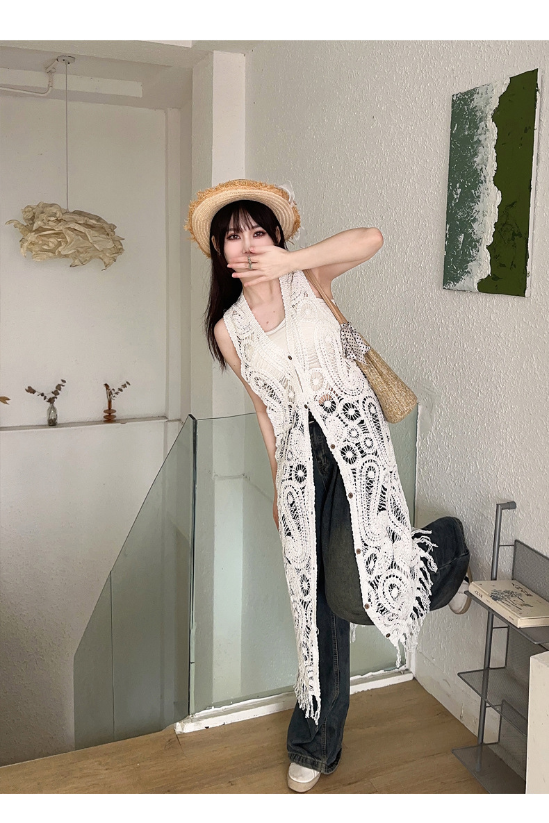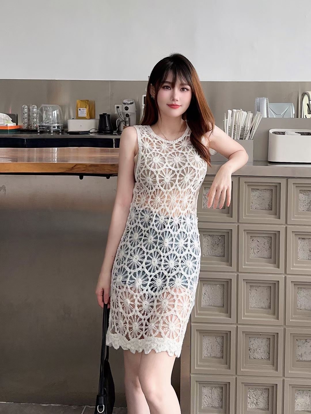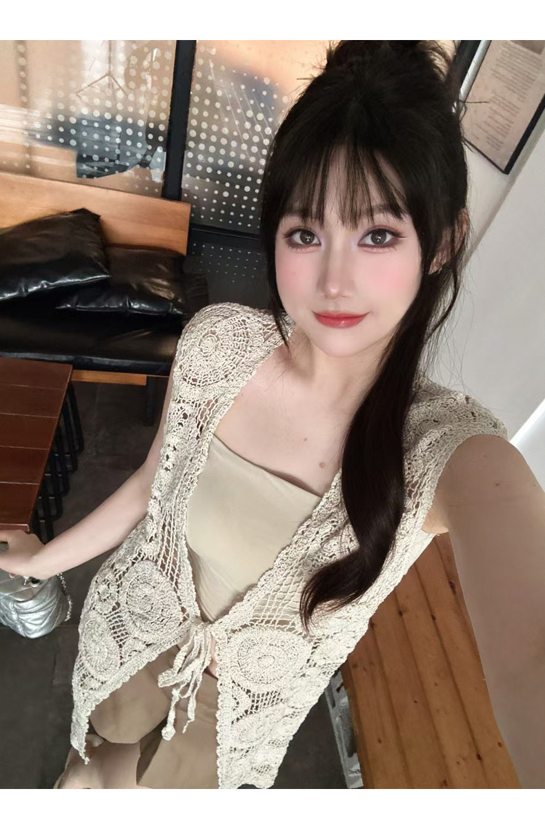 2025镂空罩衫针织吊带连衣裙女夏宽松叠穿罩衫海边度假无袖背心裙