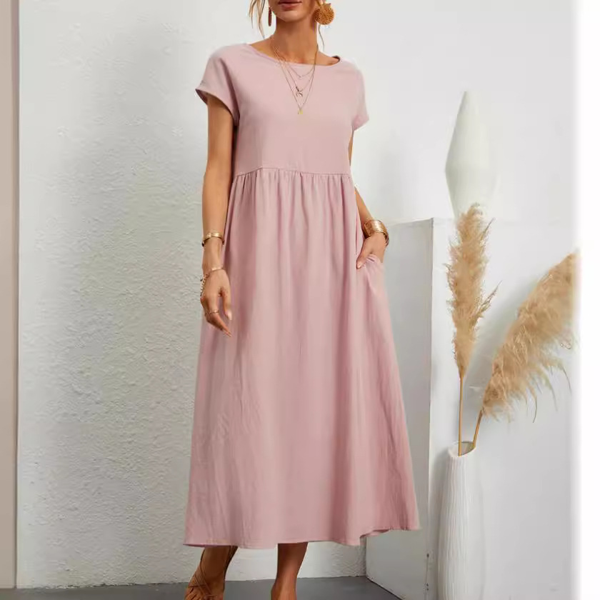 2025新款欧美亚马逊纯色无袖宽松棉麻插口袋女装连衣裙跨境现货