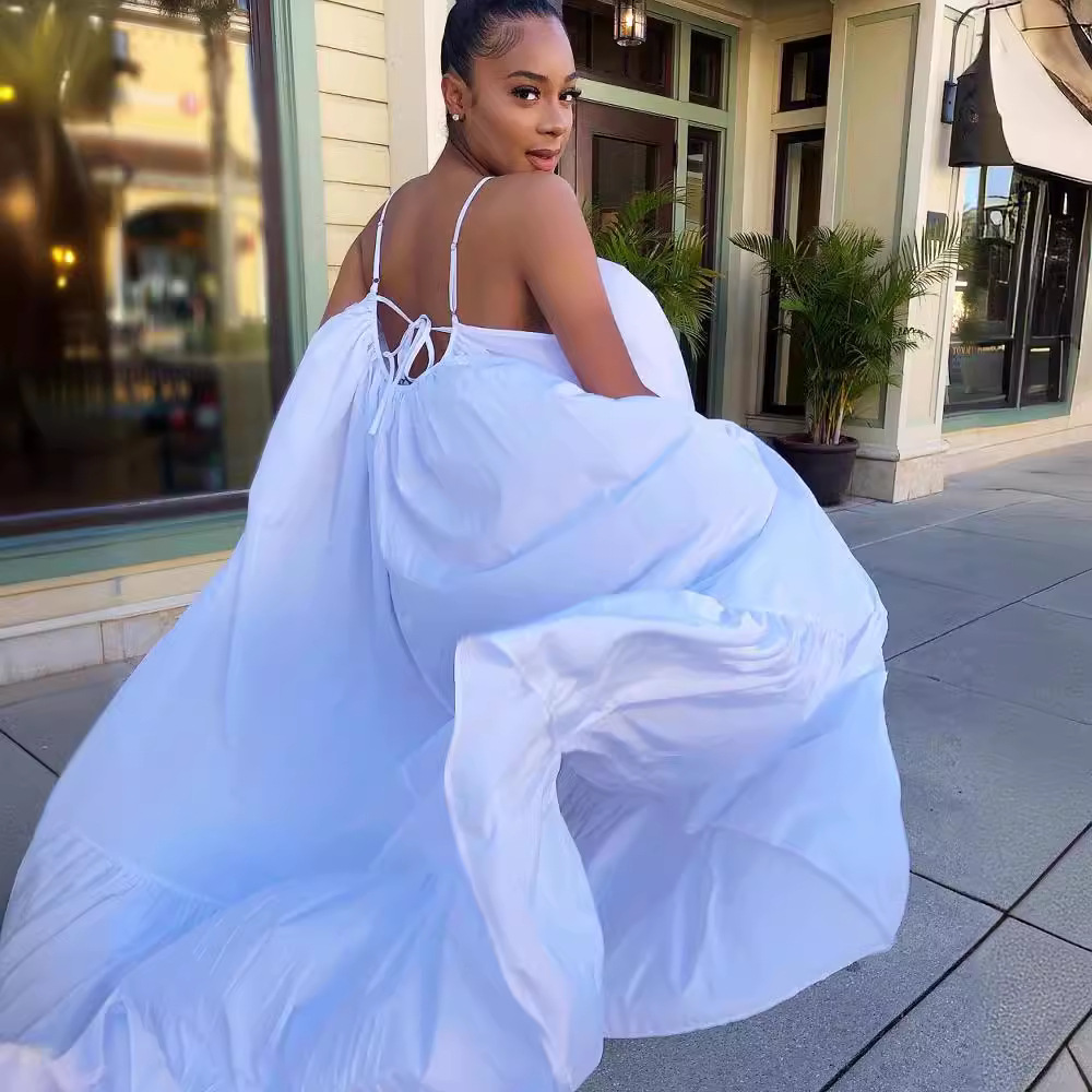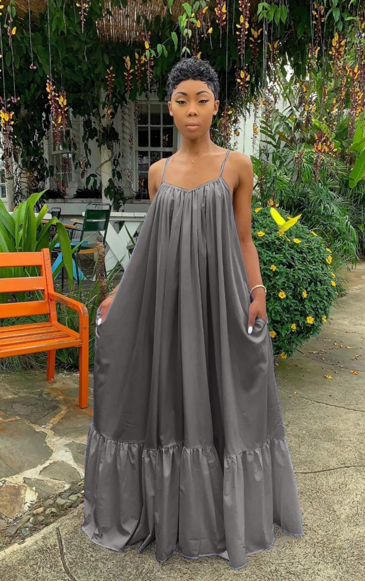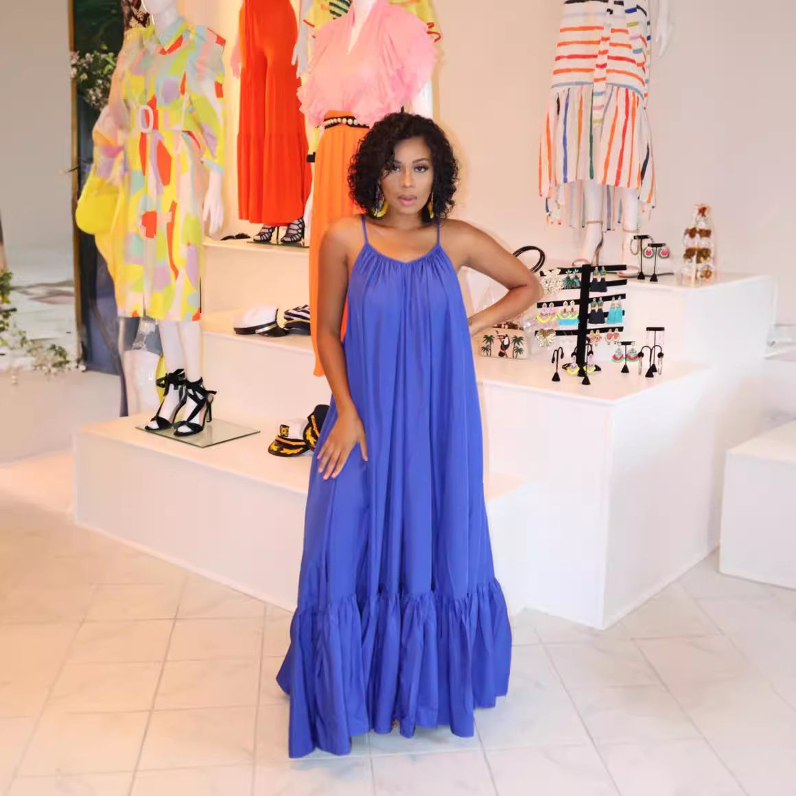 现货!ZL1955wish亚马逊热销欧美性感吊带无袖纯色长款大摆连衣裙