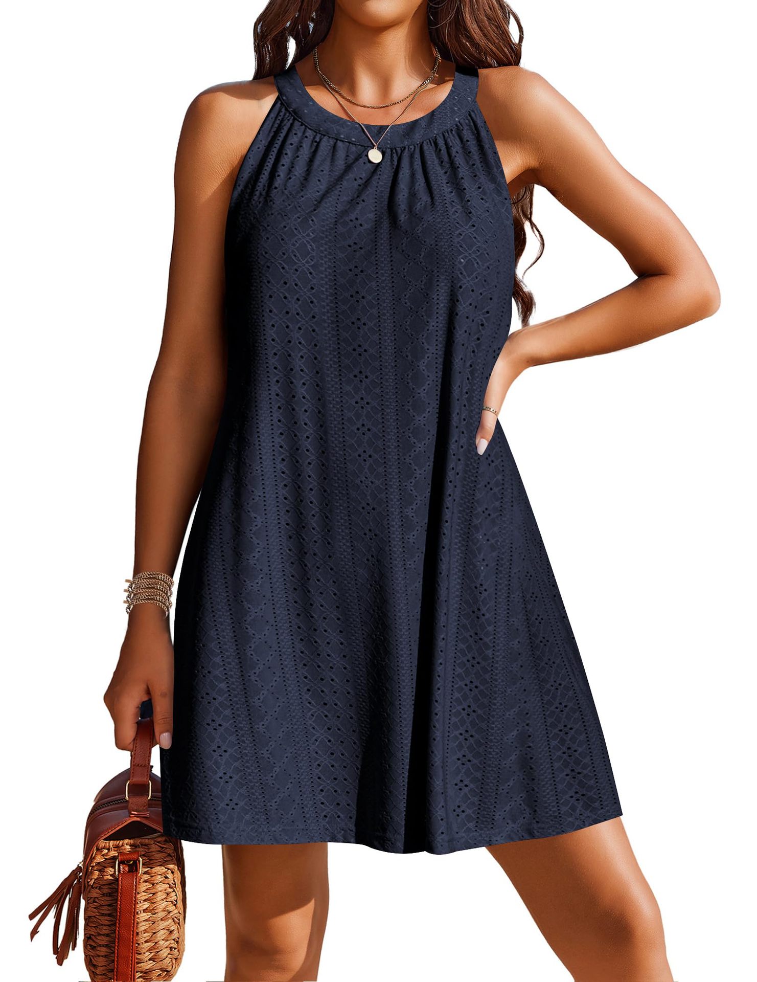 亚马逊欧美跨境外贸2024春夏新款女式罩衫镂空钩针无袖连衣裙背心