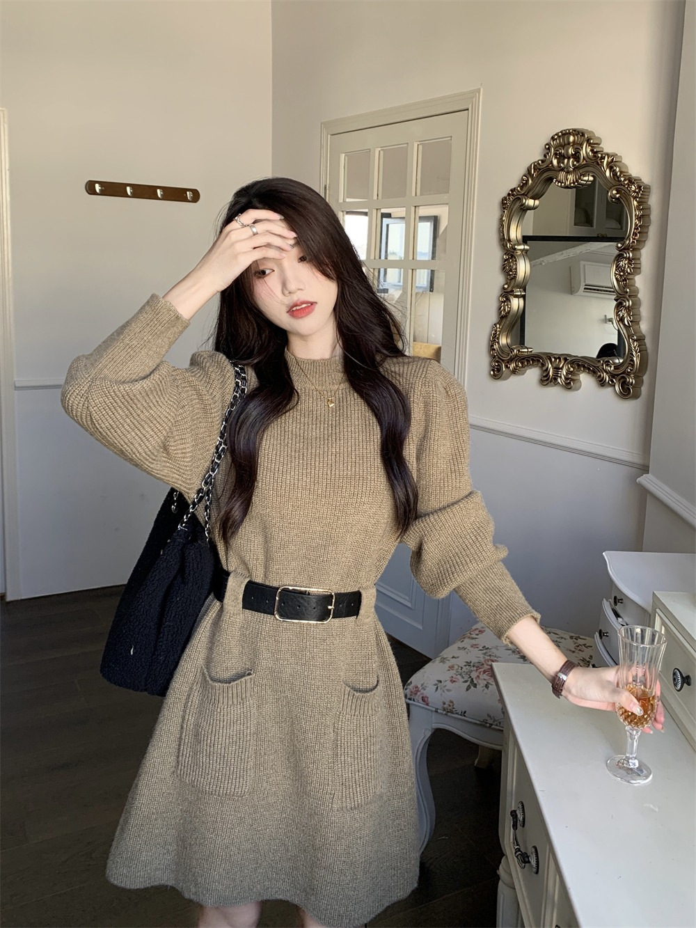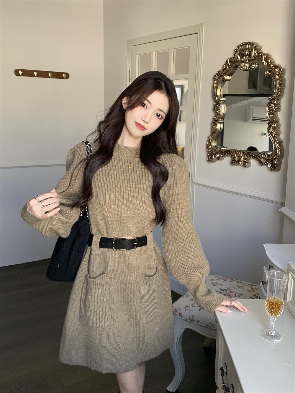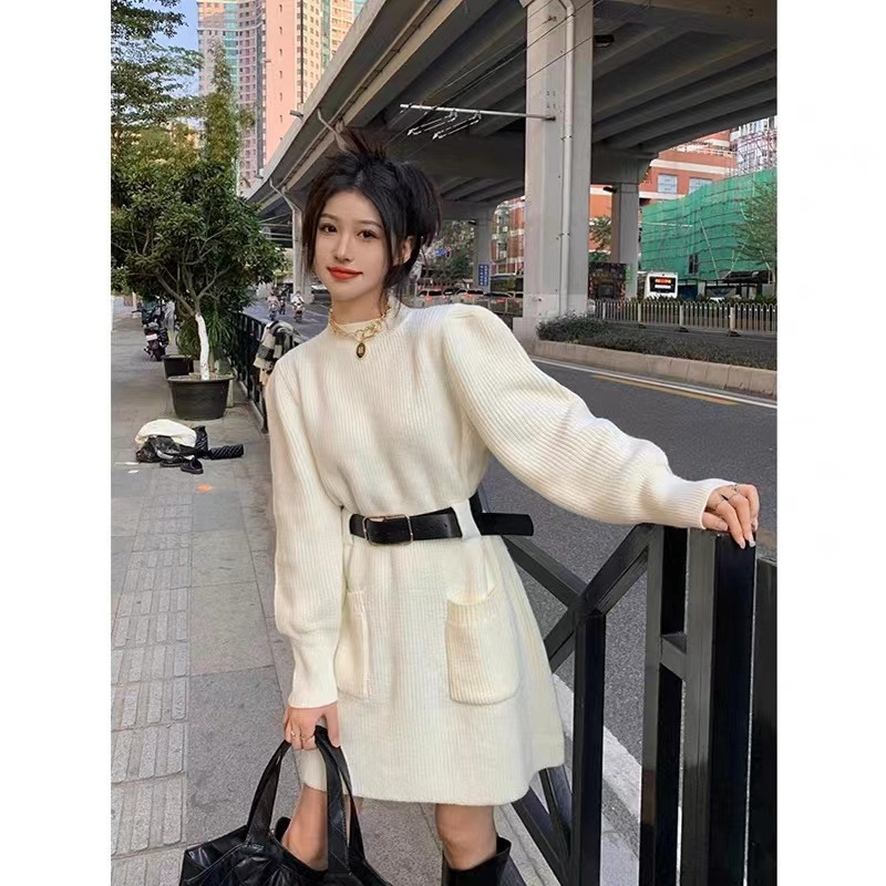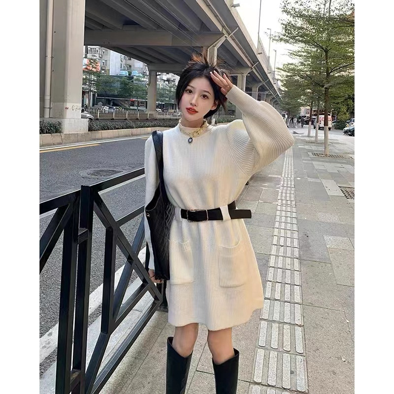 【送腰带】新款女装温柔奶系穿搭整套搭配感连衣裙子小香风连衣裙