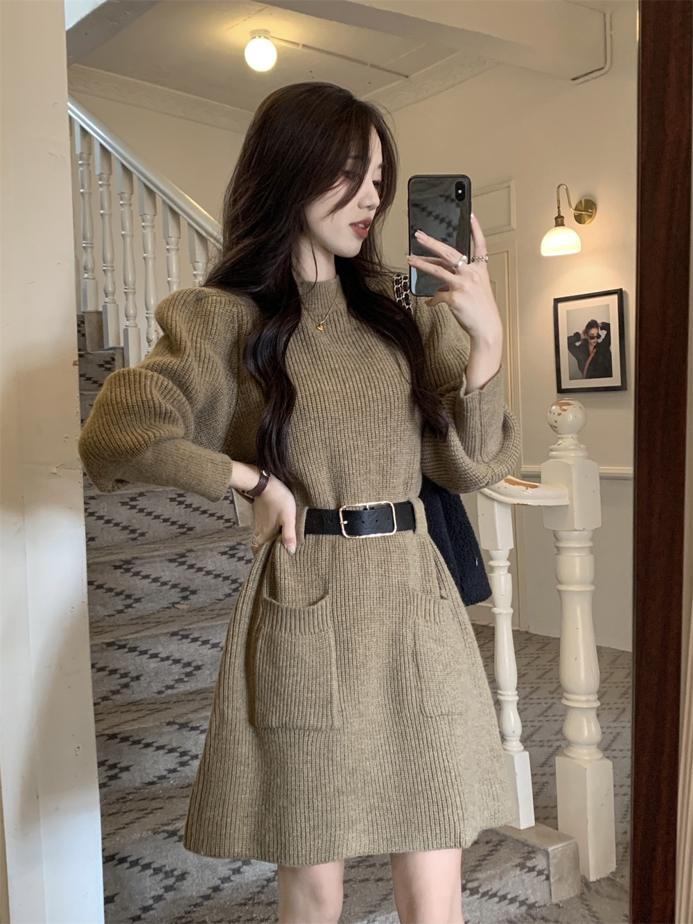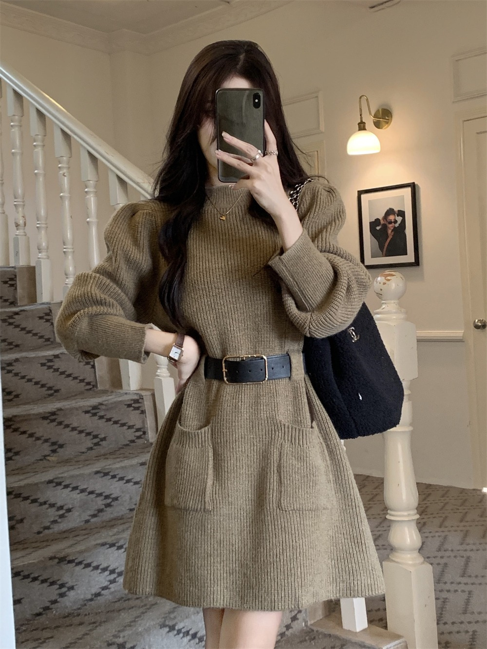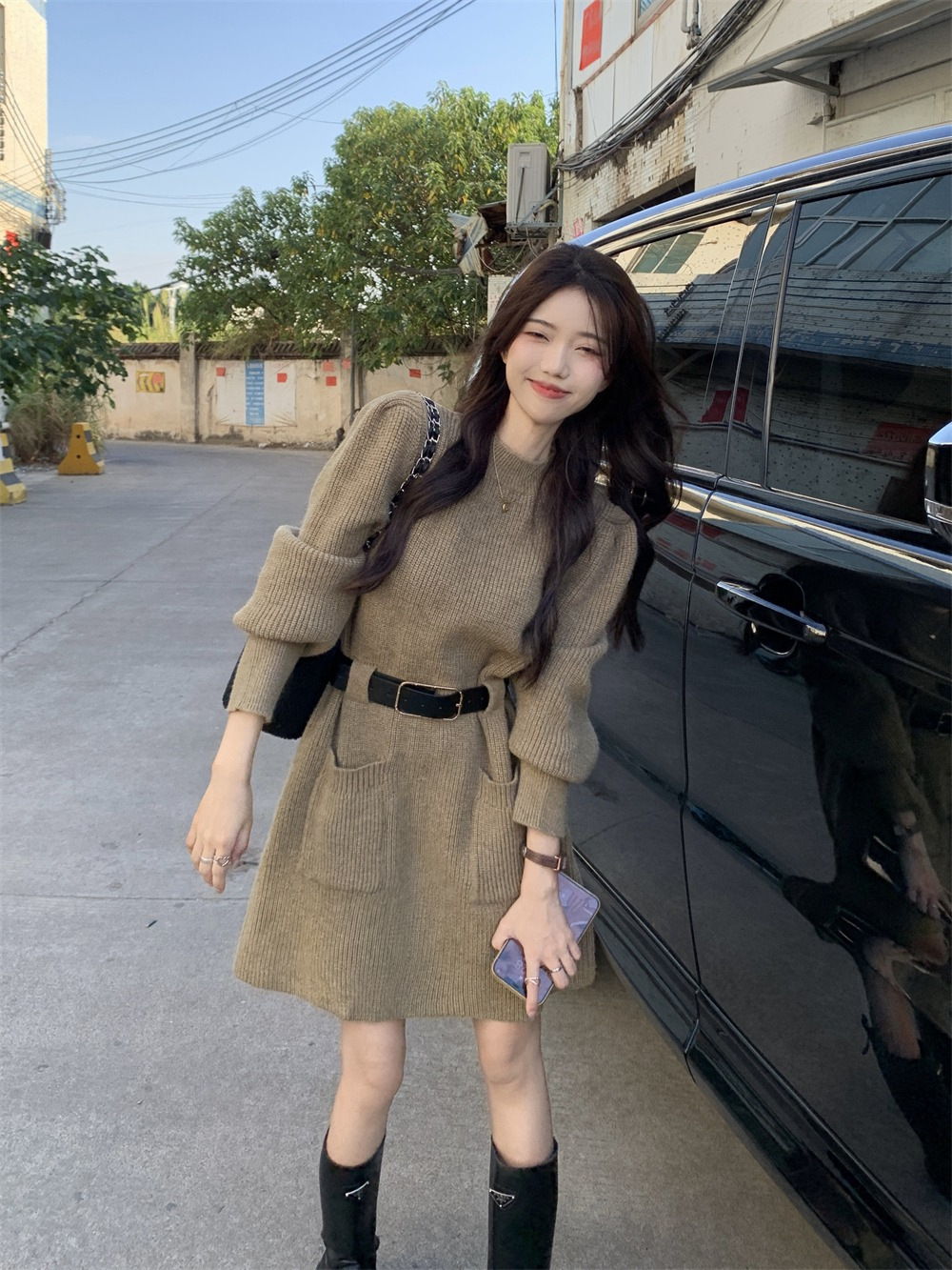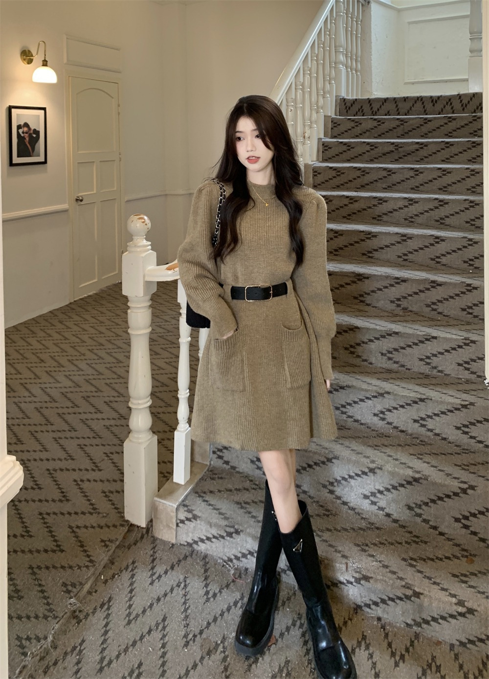 【送腰带】新款女装温柔奶系穿搭整套搭配感连衣裙子小香风连衣裙